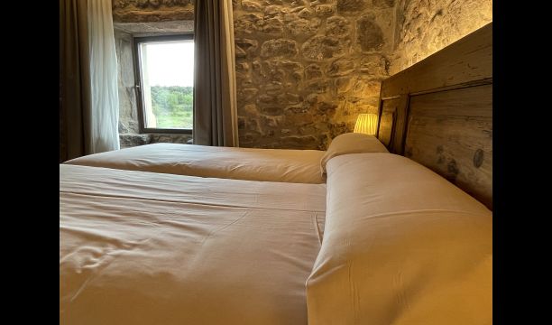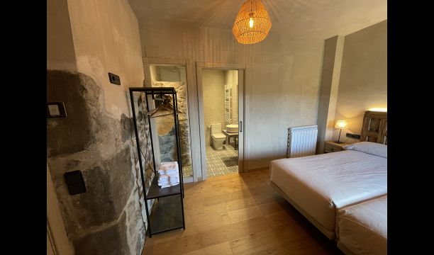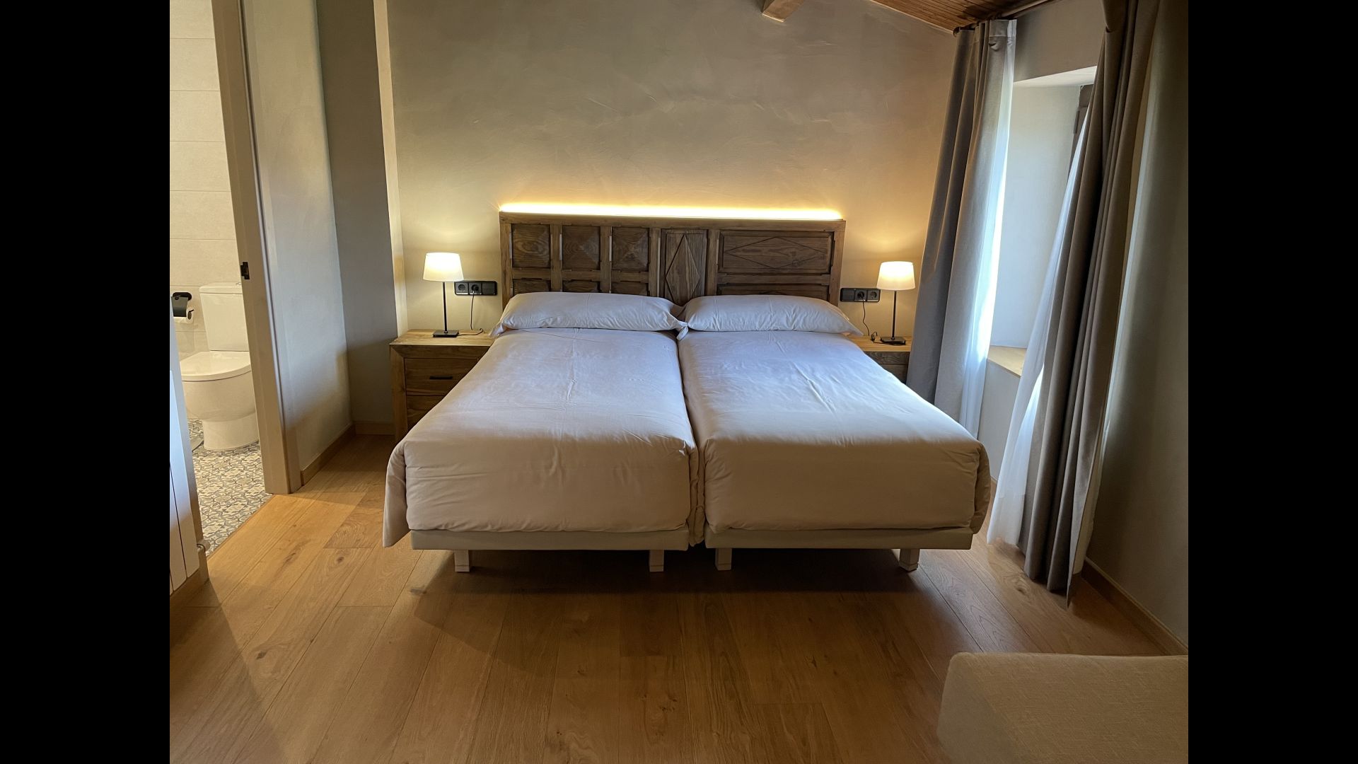 On the first floor you'll find 6 large double rooms with views of the nature, all with private bathrooms. On the second floor we find 2 more double rooms, and 2 quadruple rooms (with two single beds and a double bed, separated by a door). These also have all exterior windows and a private full bathroom.