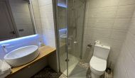I forbindelse med spisestuen er det åbne køkken med møbler af naturligt egetræ, fuldt udstyret med 2 køleskabe og 2 frysere, ovn, mikroovn, gaskomfur, opvaskemaskine, kaffemaskine og i samme rum er der et afslapningsområde med behagelig sofaer. På denne etage er der desuden et lille toilet med toilet og håndvask.