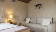 På øverste etage er der 6 store, moderne soveværelser, alle med eget badeværelse. Hvert værelse har en sovesofa, som giver dem mulighed for at blive tre- eller firedobbelte alt efter behov.