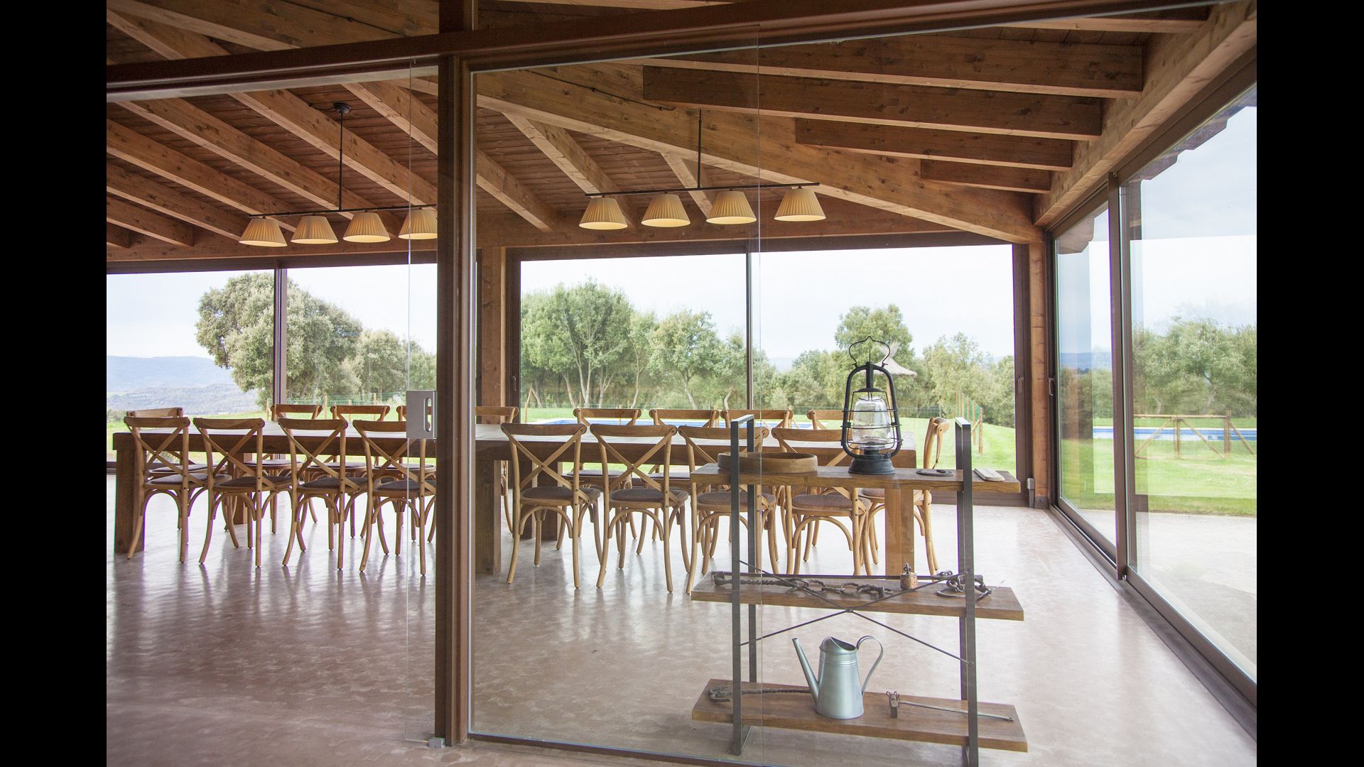 I stueetagen er der en veranda placeret foran poolen og med en spektakulær udsigt over bjergene. Herfra kan du gå ind i spisestuen, som har udsigt til haven gennem de store vinduespartier.