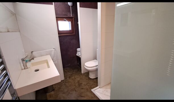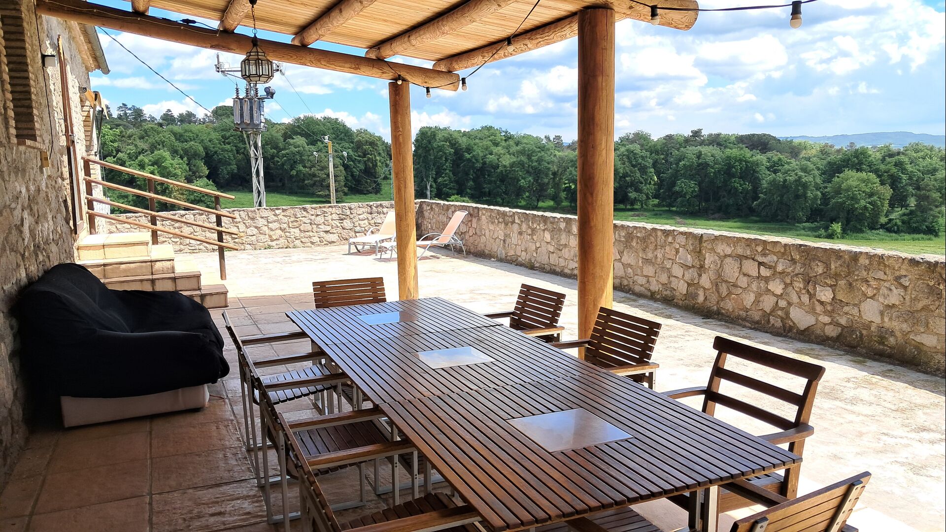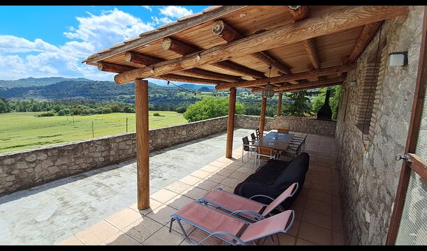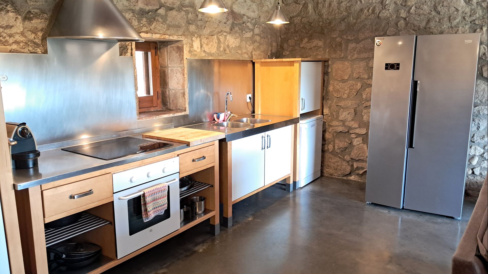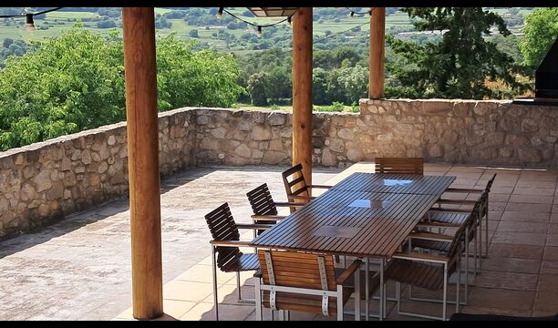 Ad en indkørsel der snor sig mellem foldene ankommer man til Massia Ferreras, som er et dejligt landsted, hvor ejerne har indrettet to topmoderne lejligheder i en af bygningerne. Huset ligger højt med den flotteste udsigt over de grønne marker, hvor de 500 får græsser.