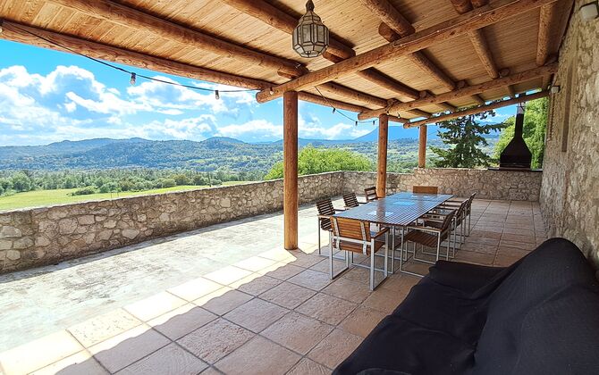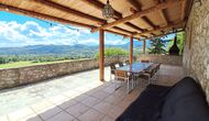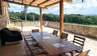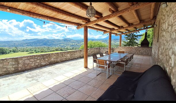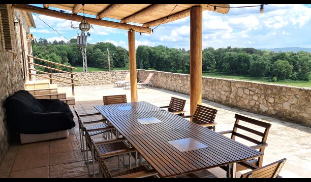 Fra stuen er der adgang til lejlighedens 100m2, overdækkede terrasse, ligeledes med udsigt over landskabet. Der er en grill på terrassen, og det er det perfekte sted til at indtage dagens måltider.