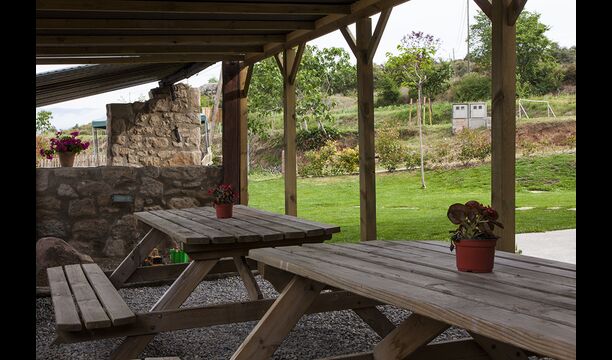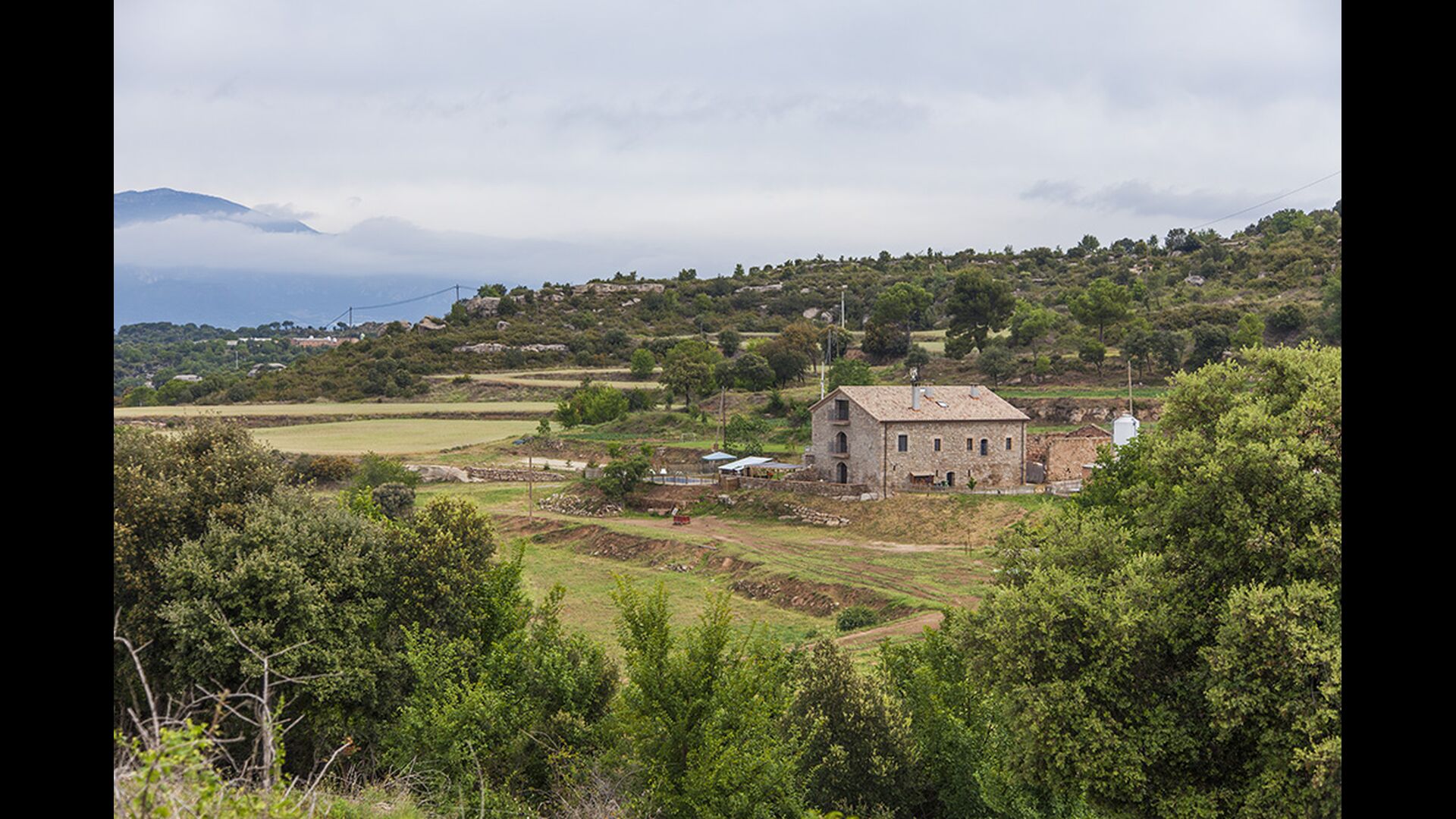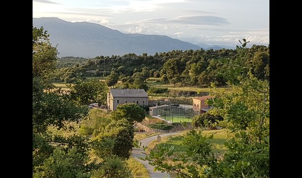 Can Pont Fonellas ligger på en lille bakke i landskabet. Nedenfor huset er der en stor mark med græssende køer, idyllisk :-) - På den anden side af marken kan man se ejernes gård i det fjerne. Bag huset, mellem huset og en stald til køerne, er der padlemarken, som nu også er overdækket, så den er brugbar selvom der skulle komme en dag med regnvejr. Da det er tæt på stalden, kan der indimellem lugte noget. Ikke en stor ting, men for bynæser er det værd at nævne ;-)