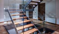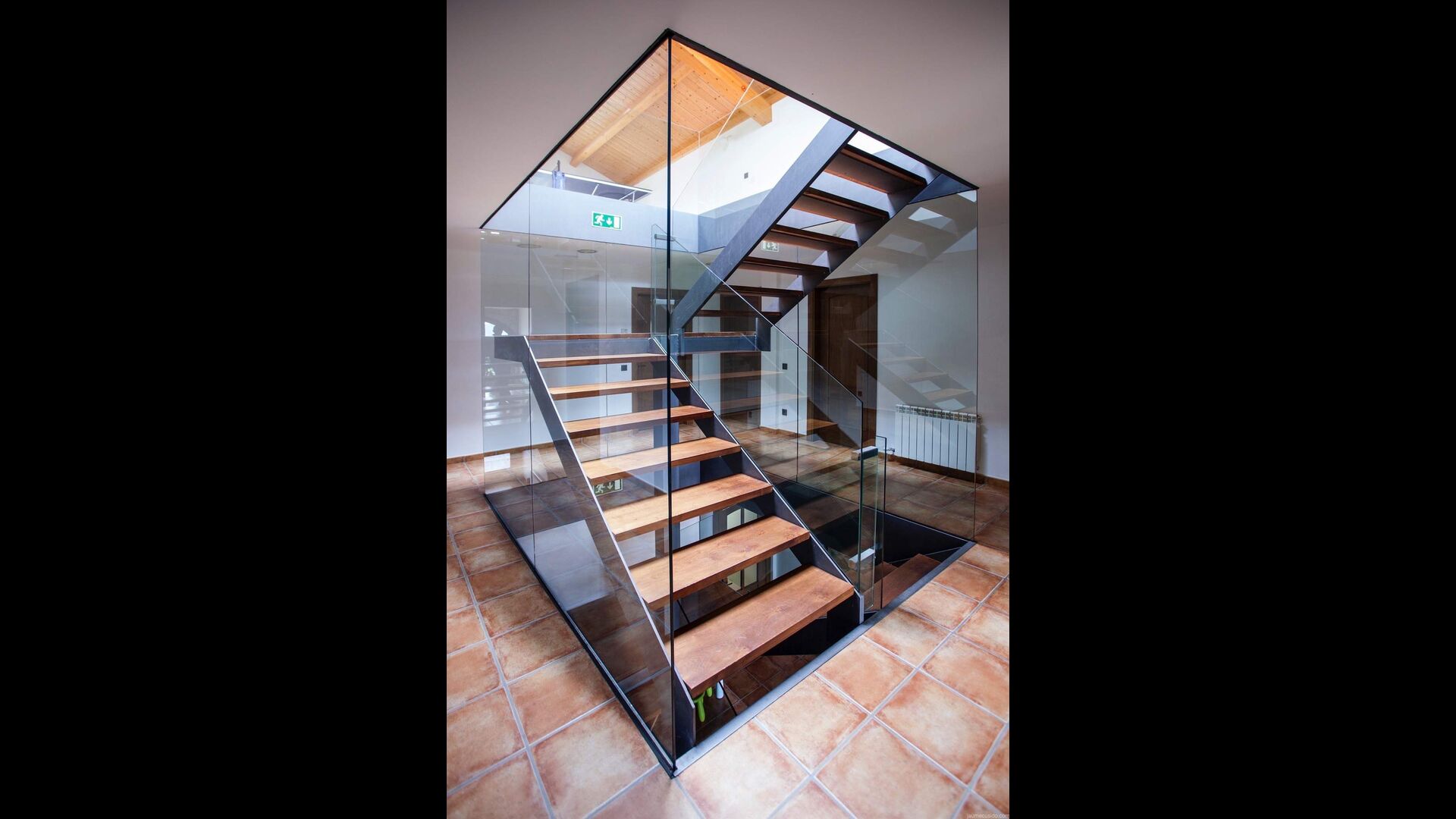 Indenfor bliver du mødt af den smukke veranda, hvor der er bygget en smuk glastrappe, der går fra stueetagen gennem første sal og op til anden sal. Ydermere er der i stueetagen et soveværelse (med 2 dobbeltsenge) med eget badeværelse, et fælles badeværelse og selvfølgelig både den dejlige stue og det veludstyrede køkken.