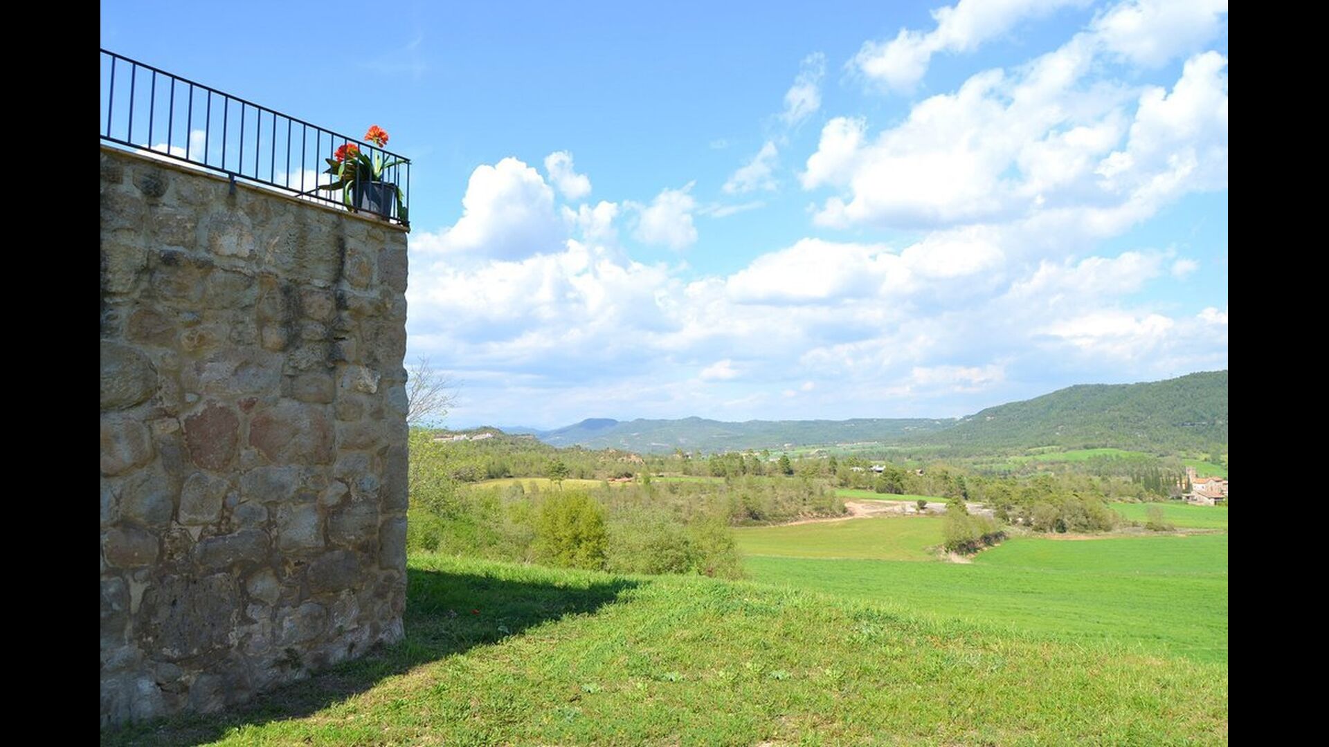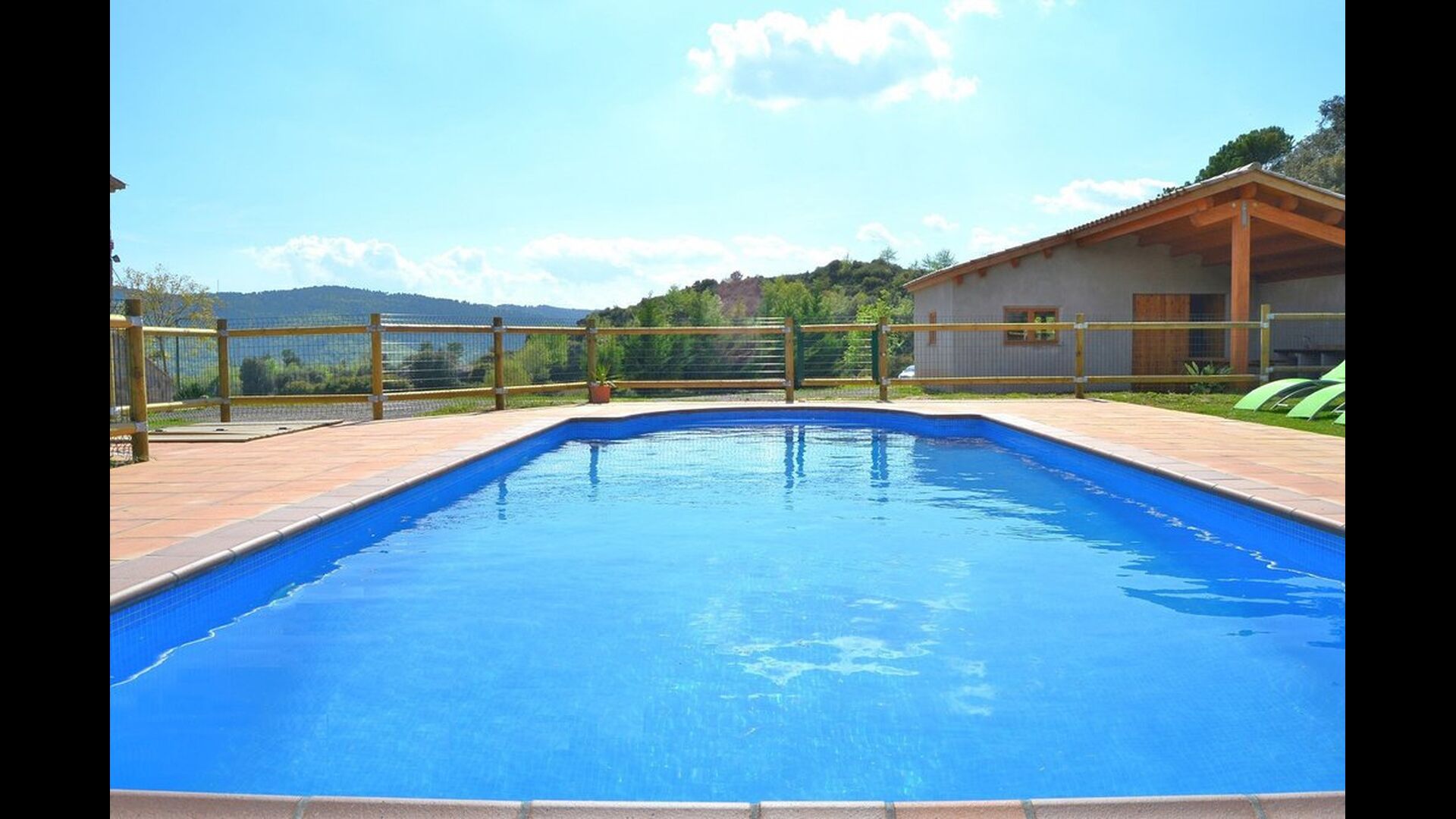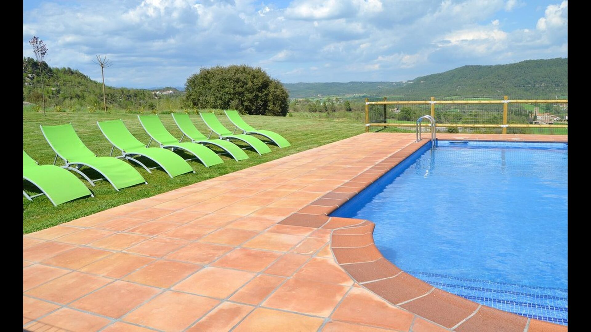Can Pont Salta er et super lækkert feriehus på 450m2 med en helt unik beliggenhed på en bakketop med en meget smuk udsigt over den smukke dal Merles Valley. Fra grunden har i et fint udsyn til den lillebitte landsby Santa Maria de Merles, der ligger 1,5 km. fra huset og fra huset er en lille sti, til landsbyen. Huset er gennemrenoveret og fremstår i dag meget lækkert. Udendørsarealet er stort og huset swimmingpool område er perfekt placeret med udsyn over dalen. I forbindelse med swimmingpoolområdet er bygget en overdækket terrasse med BBQ og udekøkken. Herfra er der desuden adgang til et spille rum med bordtennis og bordfodbold. At poolen og den overdækkede terrasse er placeret tæt er oftest en rigtig god idé i et feriehus, da man her kan trække sig lidt tilbage i skyggen og samtidigt være en del af børnenes leg i swimmingpoole. Vil man hellere dase er der i Can Pont Salta liggestole til alle. I haven er der desuden også et mindre legestativ til de helt små i gruppen.