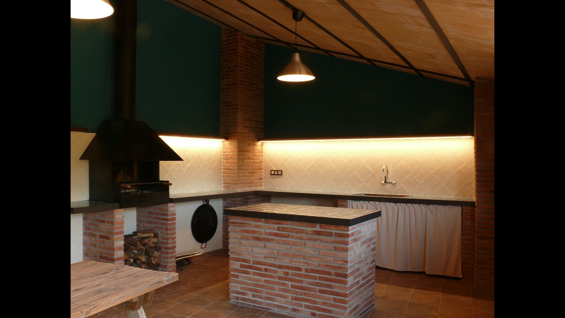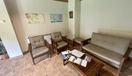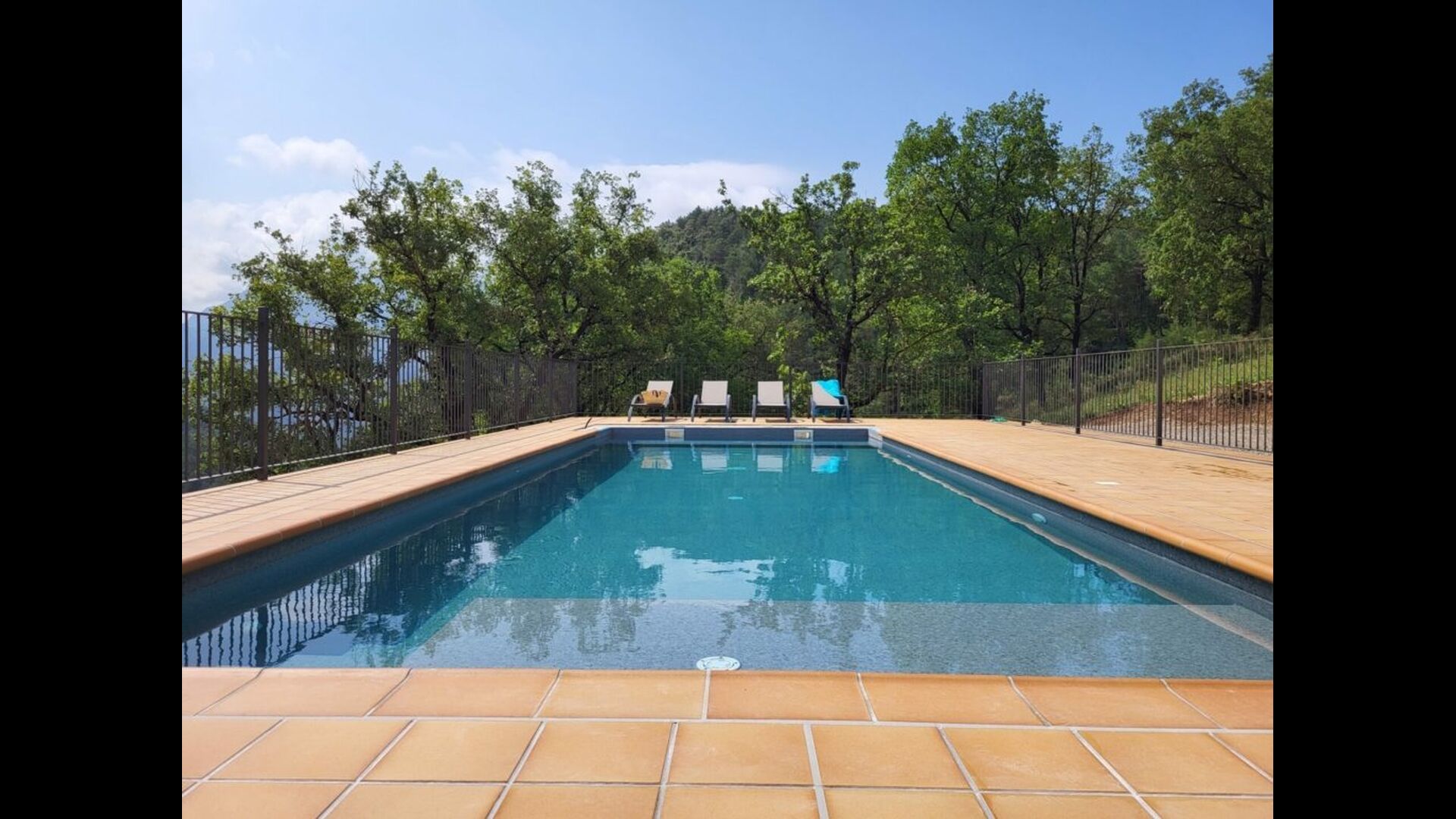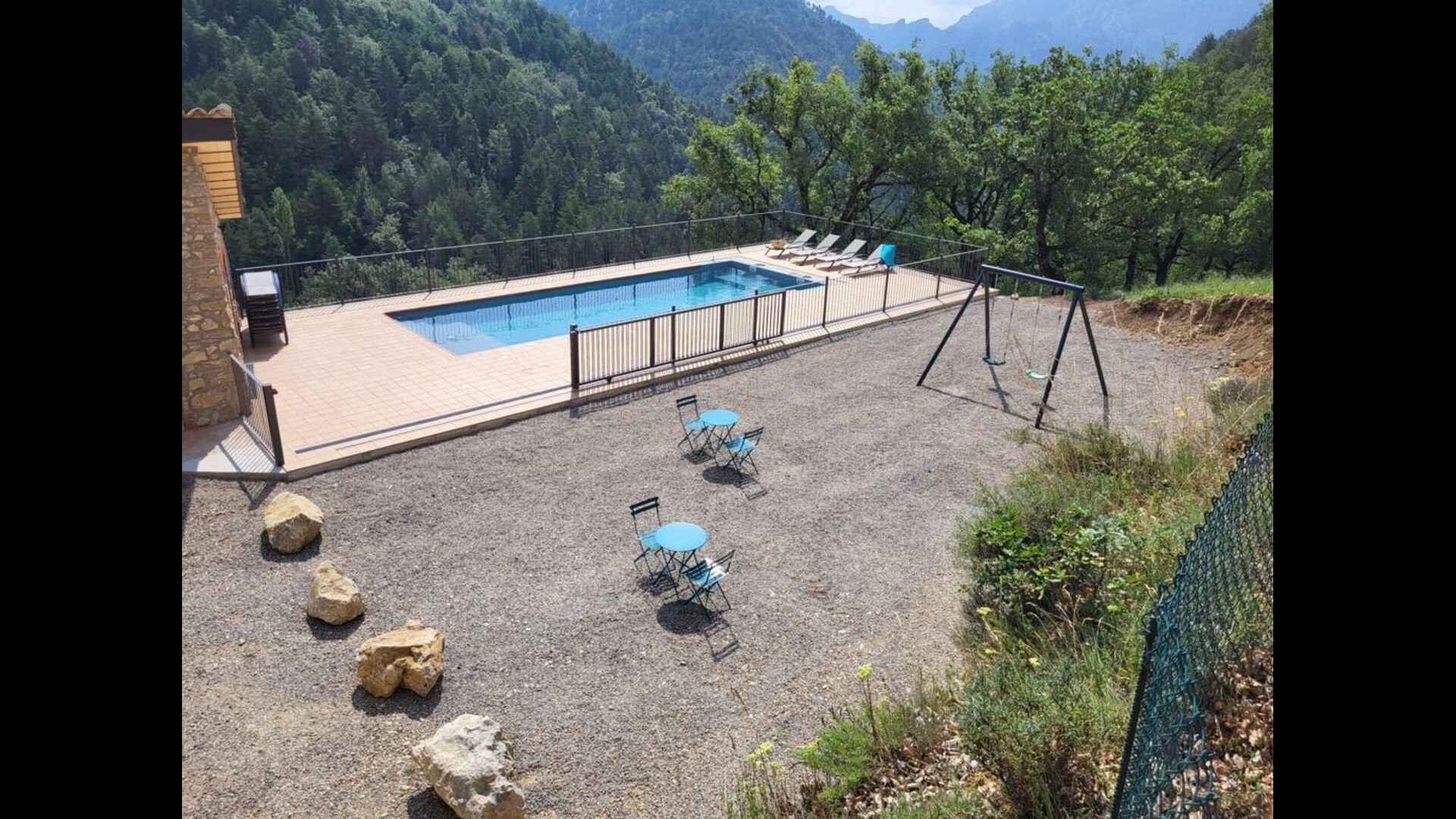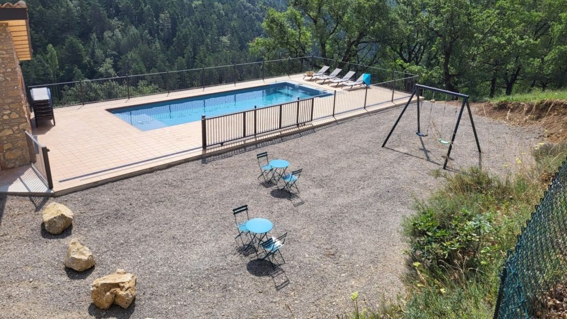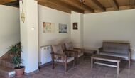 Udenfor huset finder du et udendørsbord med fire stole, en træbænk, 6 liggestole og en gynge. Derudover er der en sswimmingpool under opførelse, som forventes at stå færdig omkring maj.
