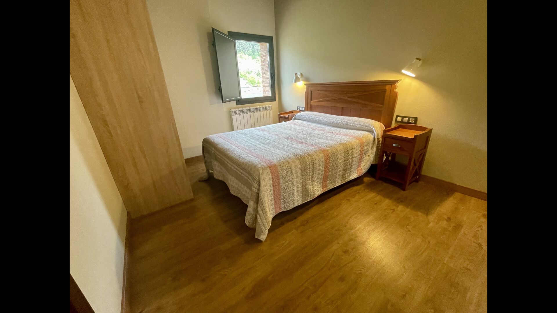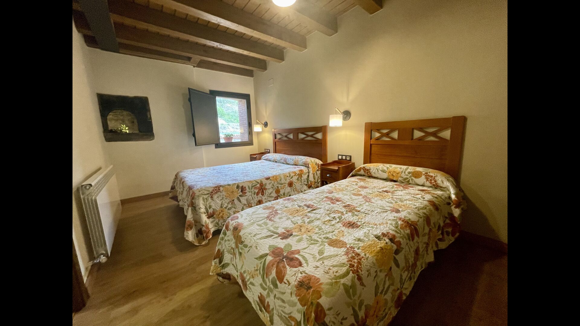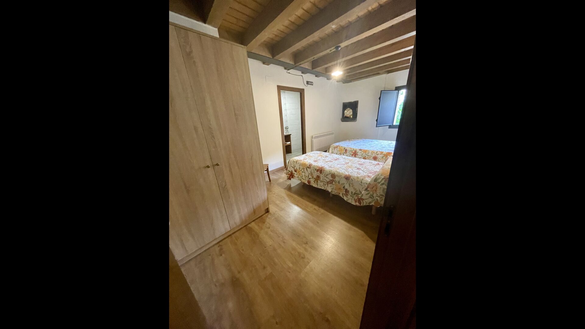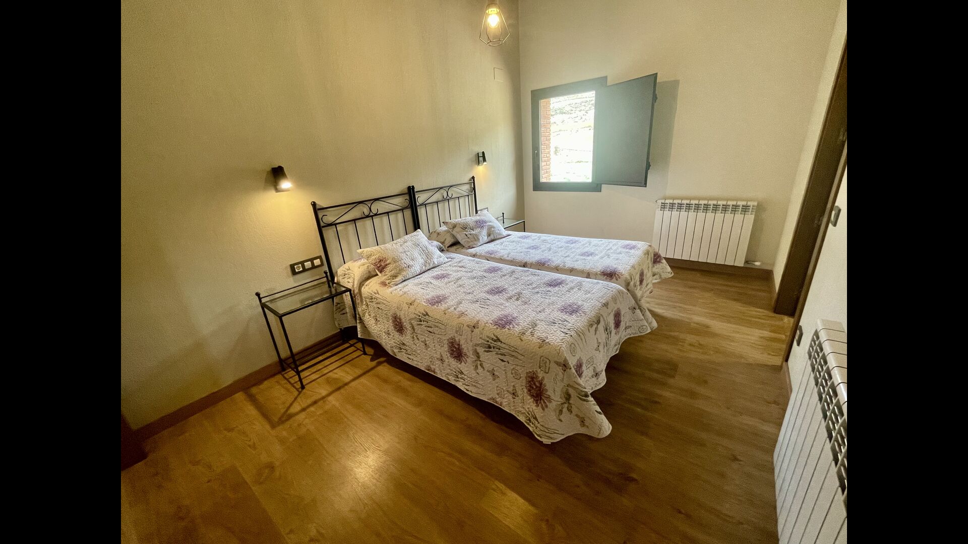På første sal finder du 2 dobbeltværelser med deres henholdsvise badeværelser, 1 3-personersværelse med dets badeværelse, og 1 værelse med 2 enkeltsenge med et badeværelse.