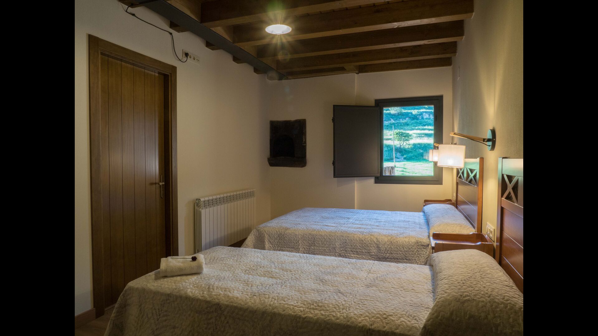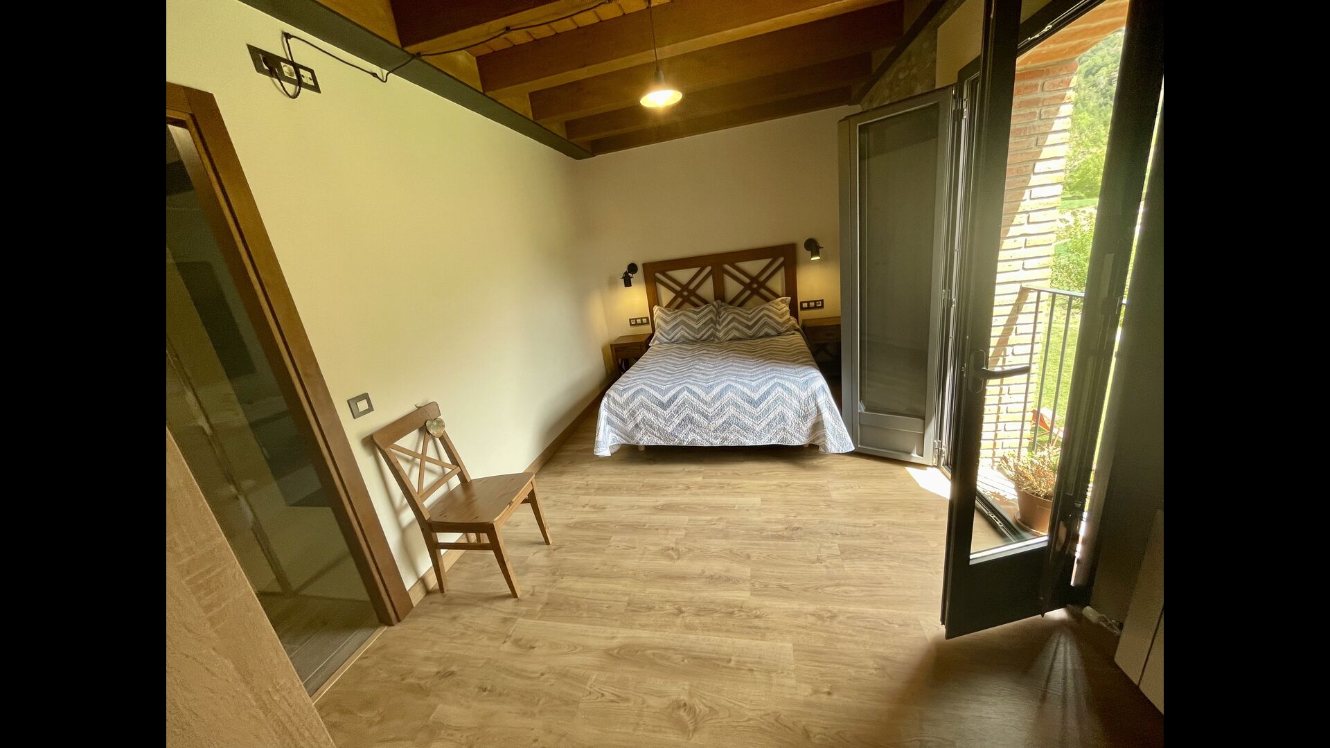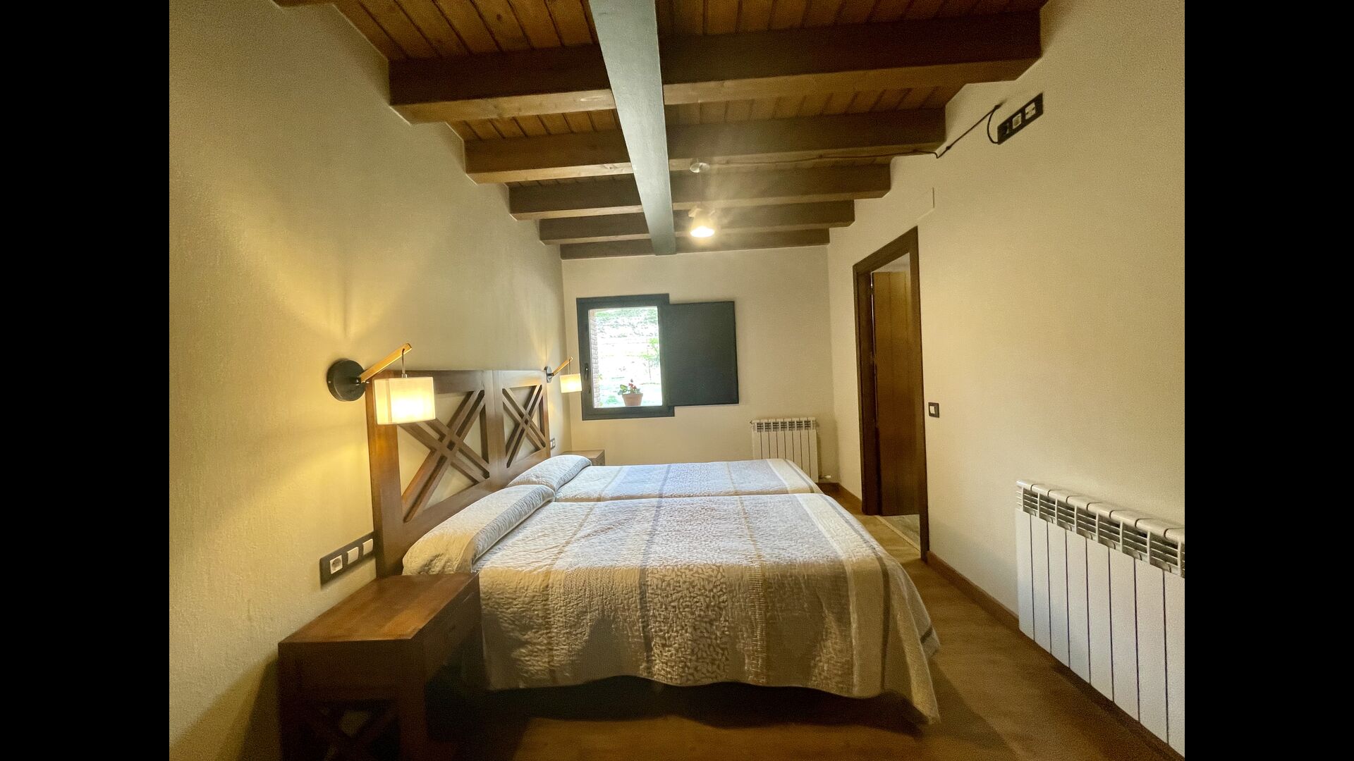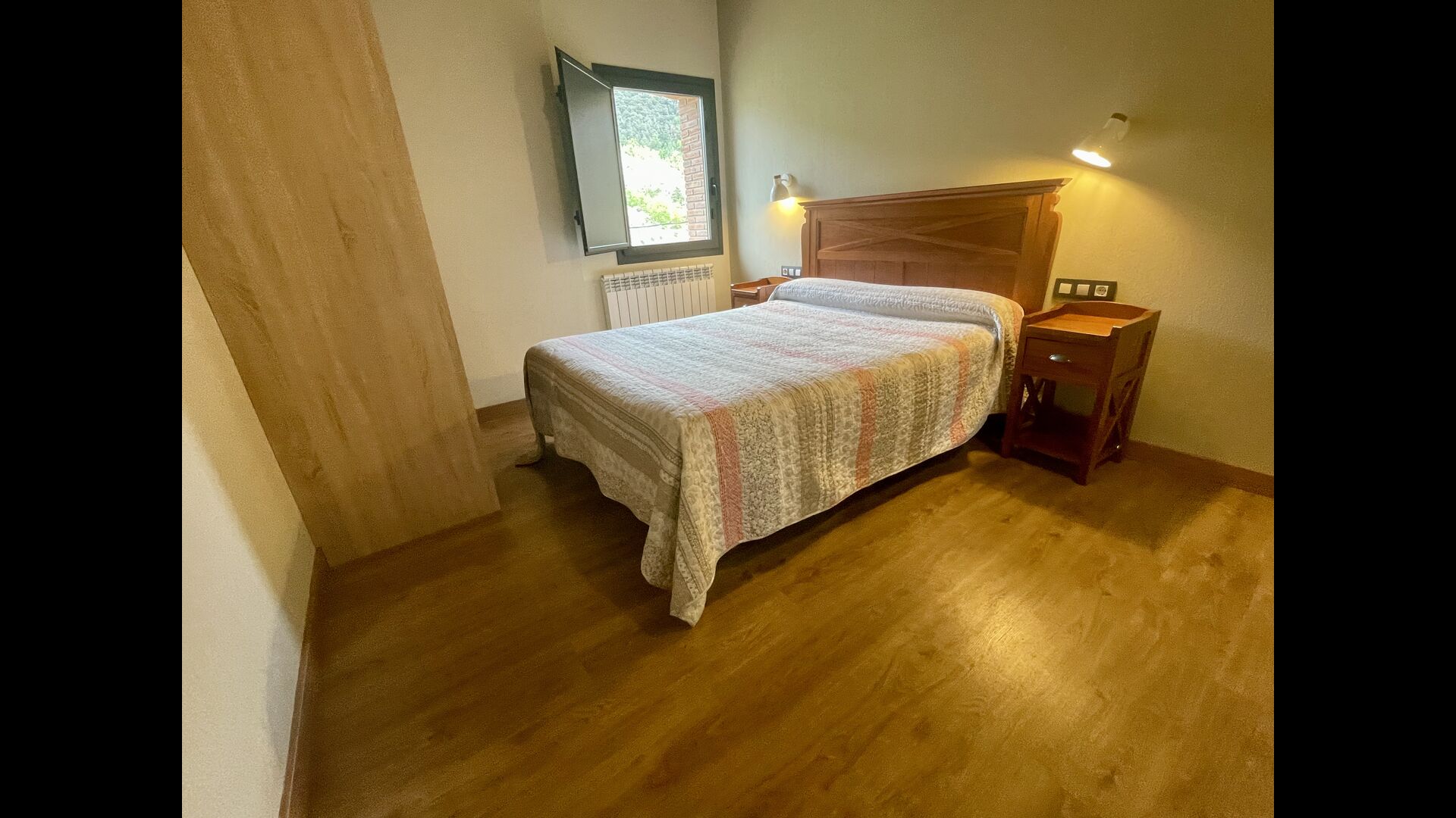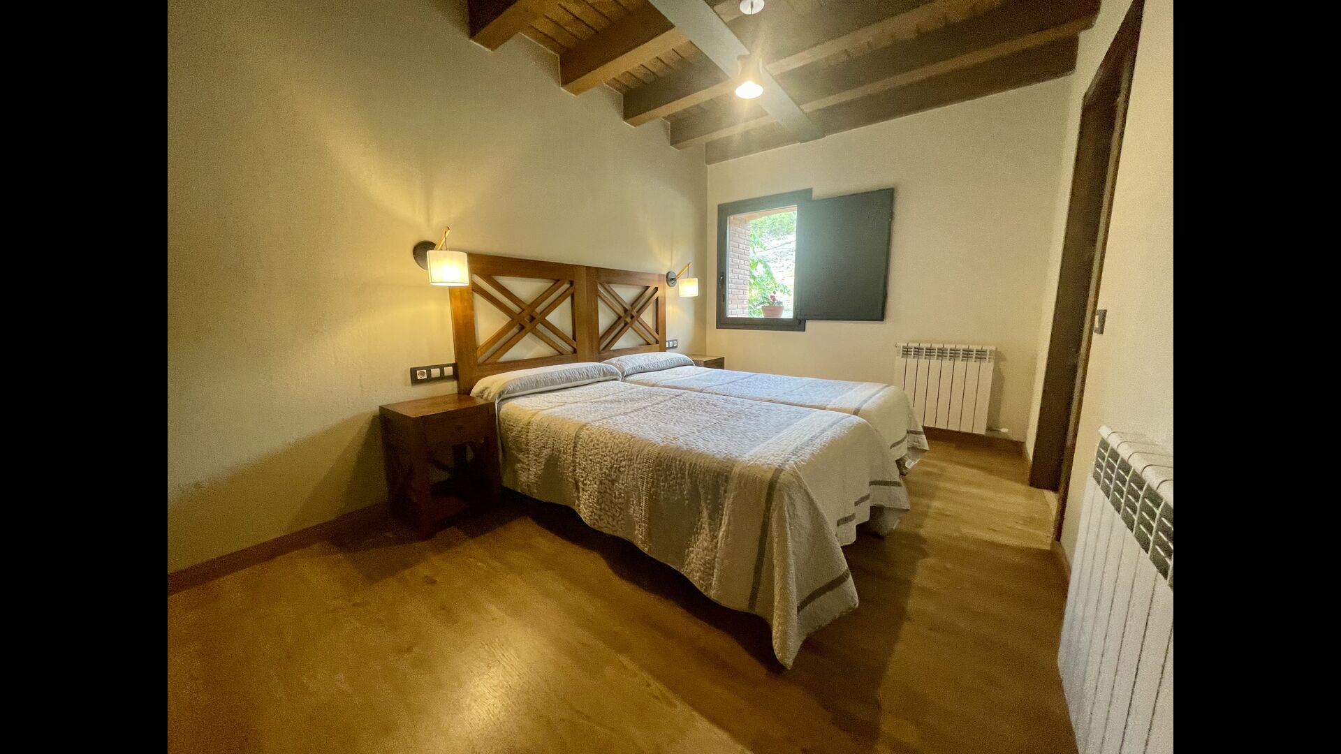 På første sal finder du 2 dobbeltværelser med deres henholdsvise badeværelser, 1 3-personersværelse med dets badeværelse, og 1 værelse med 2 enkeltsenge med et badeværelse.