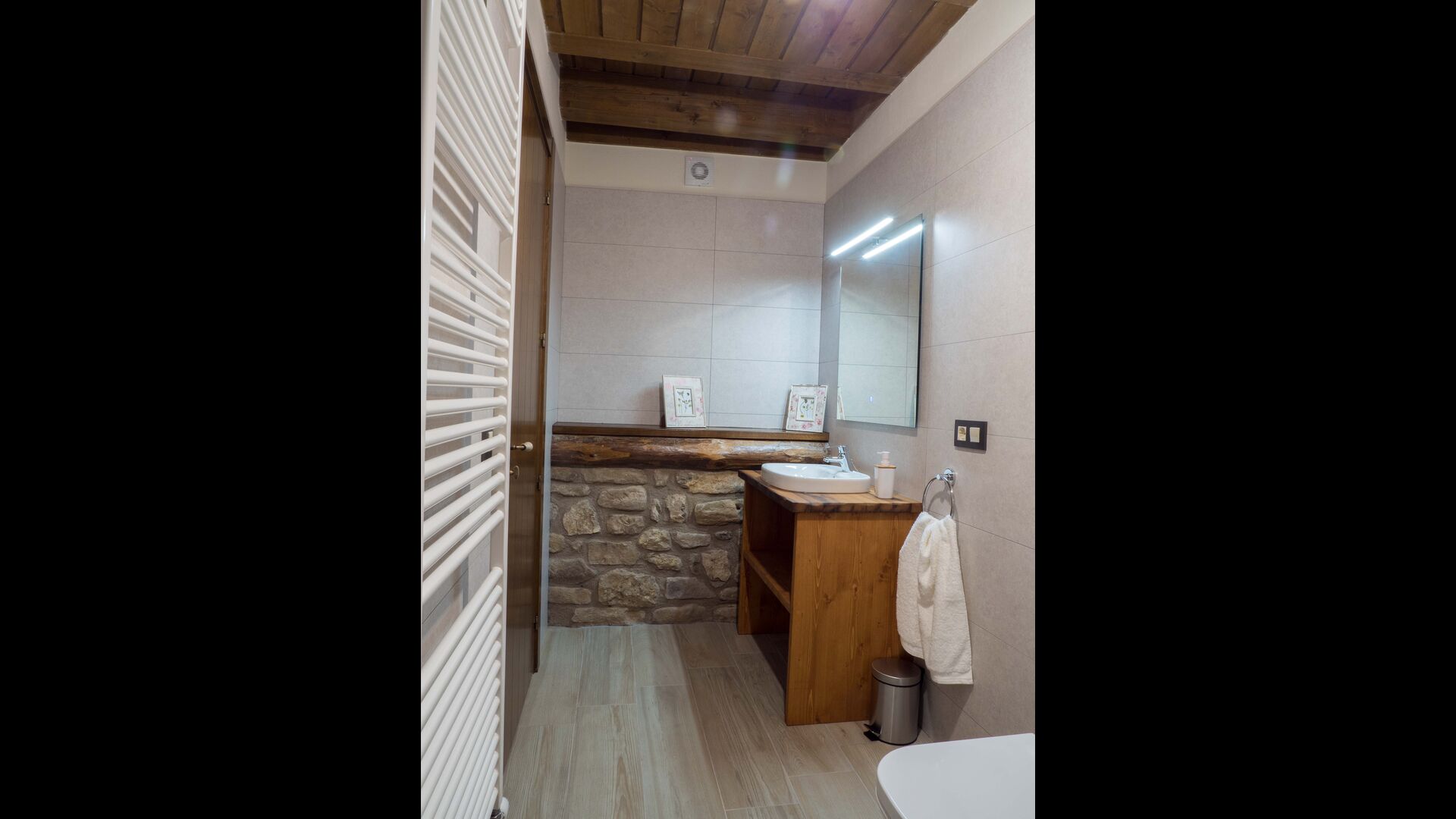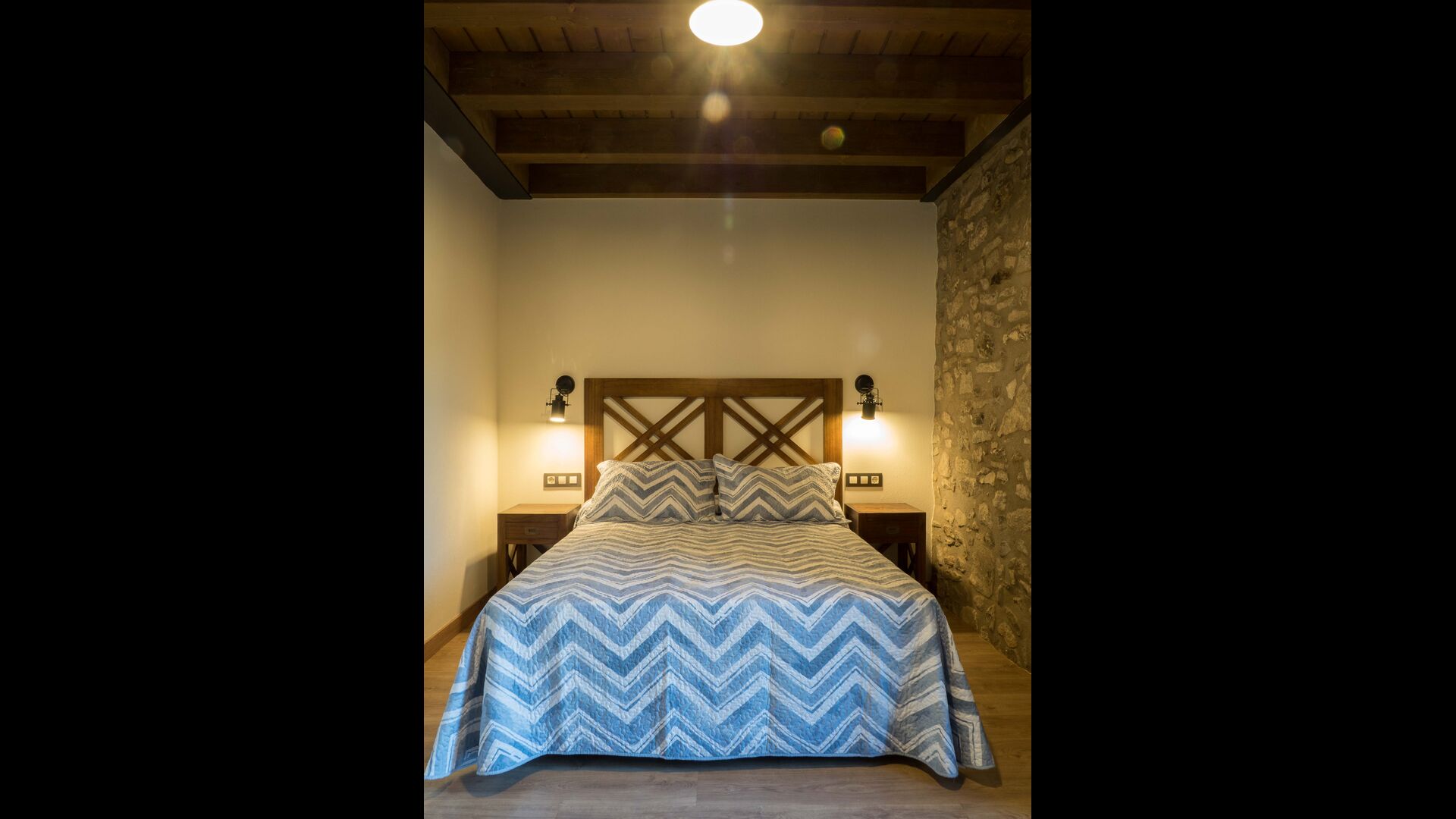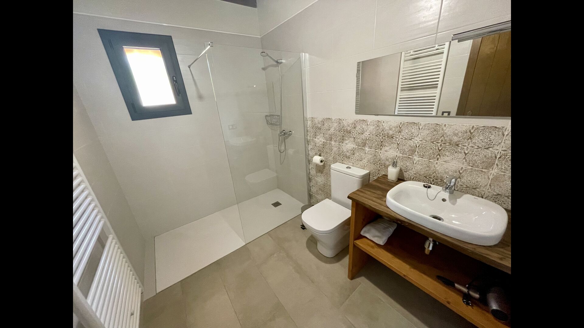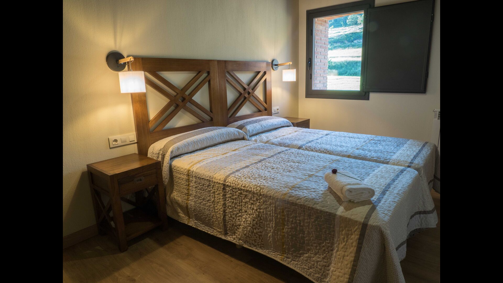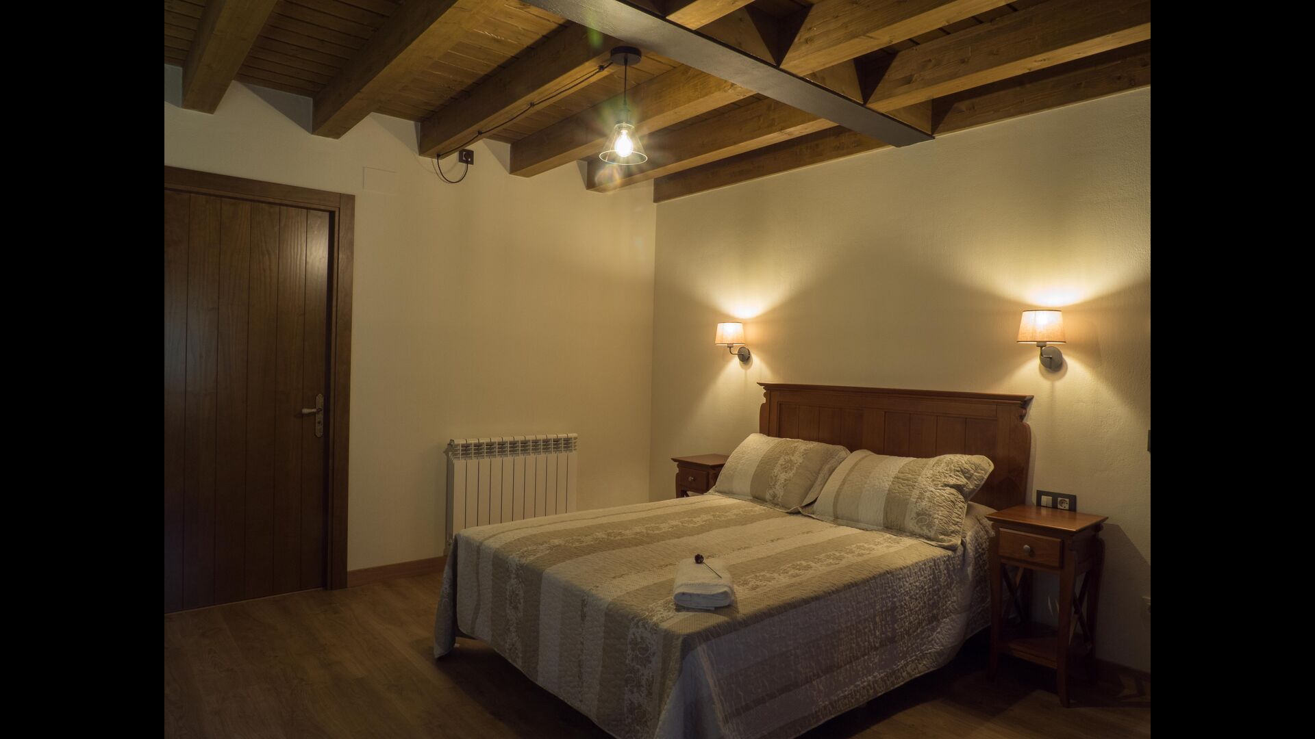 På første sal finder du 2 dobbeltværelser med deres henholdsvise badeværelser, 1 3-personersværelse med dets badeværelse, og 1 værelse med 2 enkeltsenge med et badeværelse.