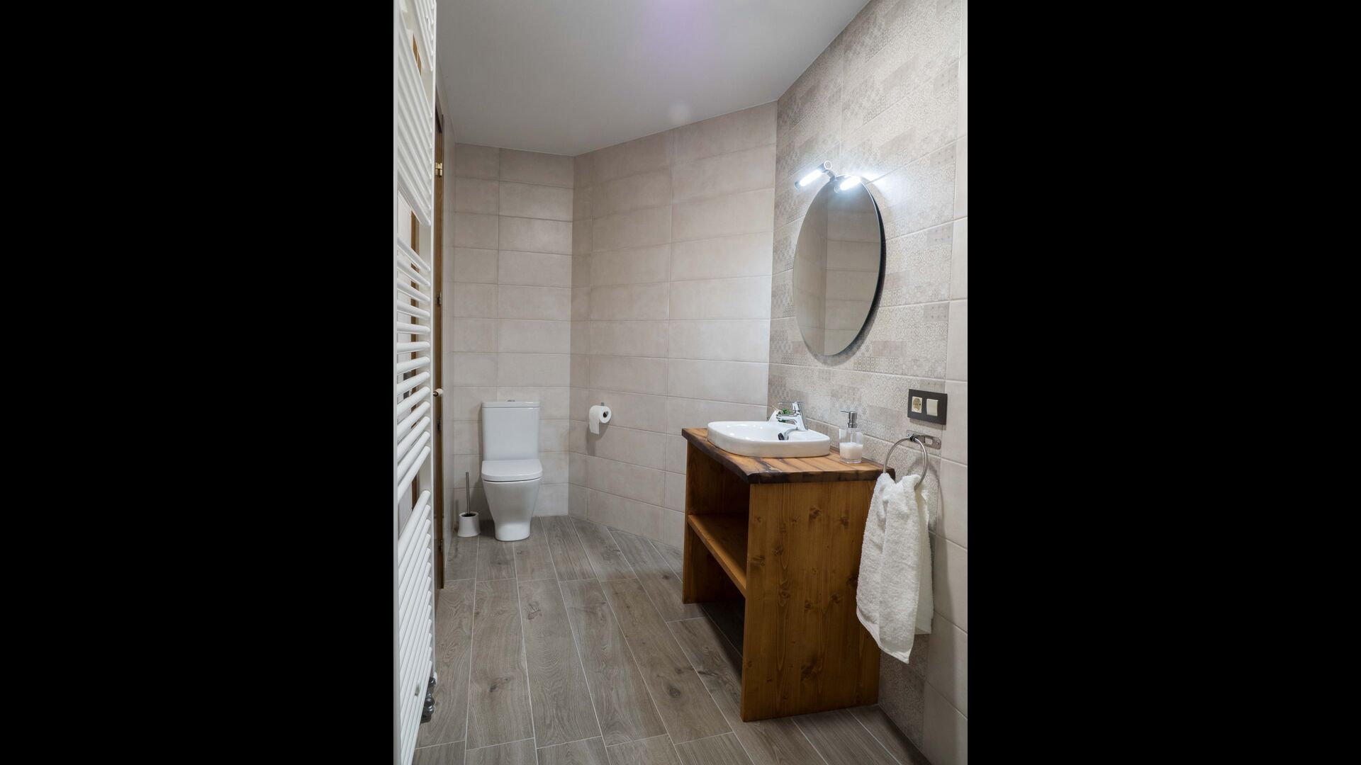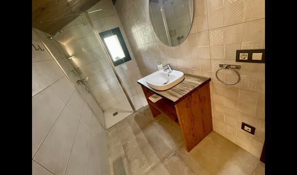 På anden sal finder du 1 dobbeltværelse med et badeværelse, 1 værelse med 2 enkeltsenge med dets badeværelse, 1 fælles badeværelse, en spisestue og en anden stue – og endelig køkken-spisekammer.