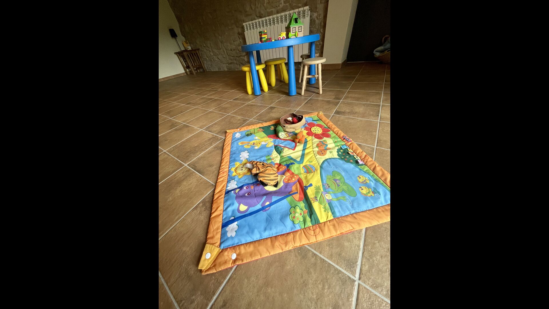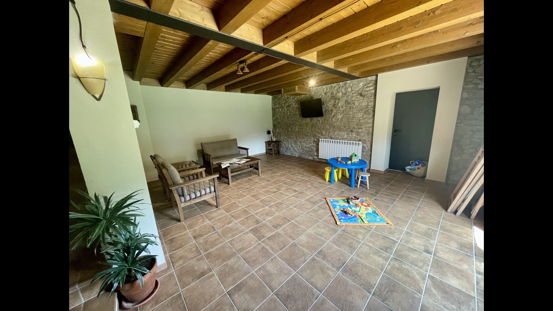 I stueetagen finder du hovedindgangen, TV-stuen, børnemøbler, og 1 dobbeltværelse med etbadeværelse.