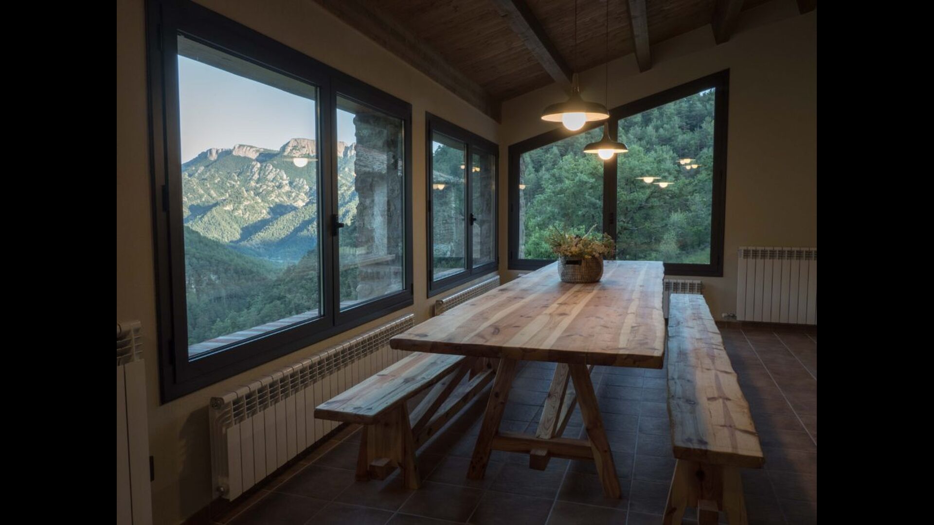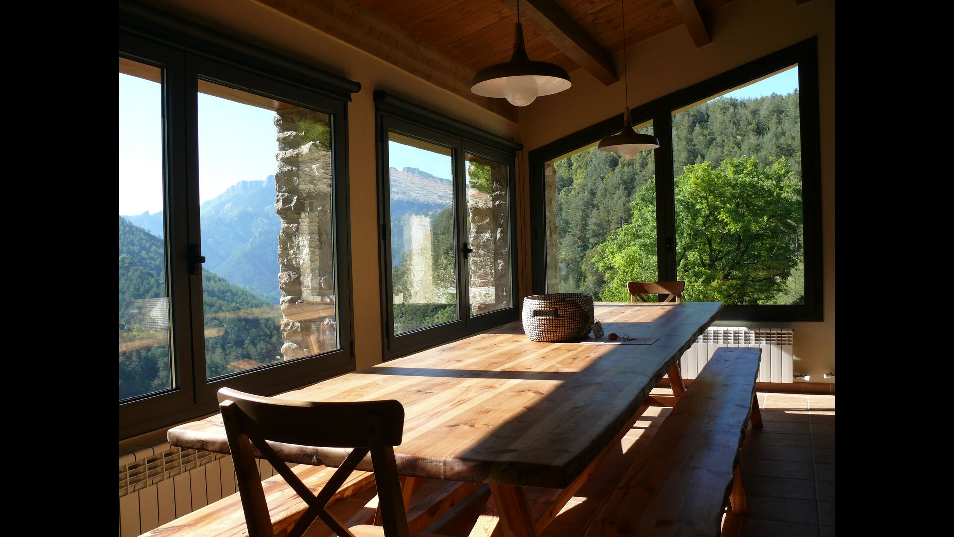 Beliggende 990 meter højt oppe i den smukke Vall de Lord - en betagende, bjergrig region i det nordlige Catalonien - ligger Casa Callet, en hyggelig, autentisk bondegård indlejret i et skønt bjerglandskab. Ikke langt fra huset finder du en charmerende landsby, der opfylder alle almene behov med et bageri, supermarked, nogle restauranter mm. - og inden for gåafstand finder du vidunderlige udsigter alle lige meget hvor du går hen. Ikke langt fra huset er der også fremragende vandrestier med fantastiske udsigter, fredfyldte picnick-spots og en praktisk kajakudlejning butik – og lidt længere væk endnu inder du muligheder for at flyve med luftballoner, steder at kigge på den flotte stjernehimmel samt vinmarker og deres lækre udvalg af smagsteste med sublim catalansk vin. Velkommen!