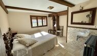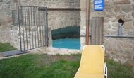 Casa Castor er en hyggelig landlejlighed med terrasse og stor have beliggende i et hjørne af ejernes gård, hvor de opdrætter heste. Haven er helt privat, afskærmet til tre sider, og med udsigt over markerne og Pyrenæerne i den bagerst i haven. I 2007 har ejerne lavet en spektakulær "grotte-agtig" swimmingpool, som giver en yderst behagelig afskærmning på de varme sommerdage og desuden har indbygget spa-funktion.