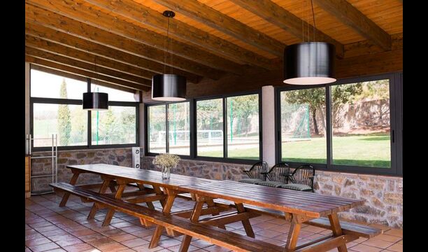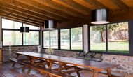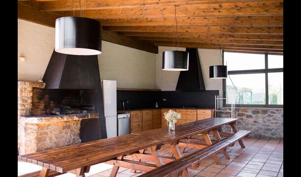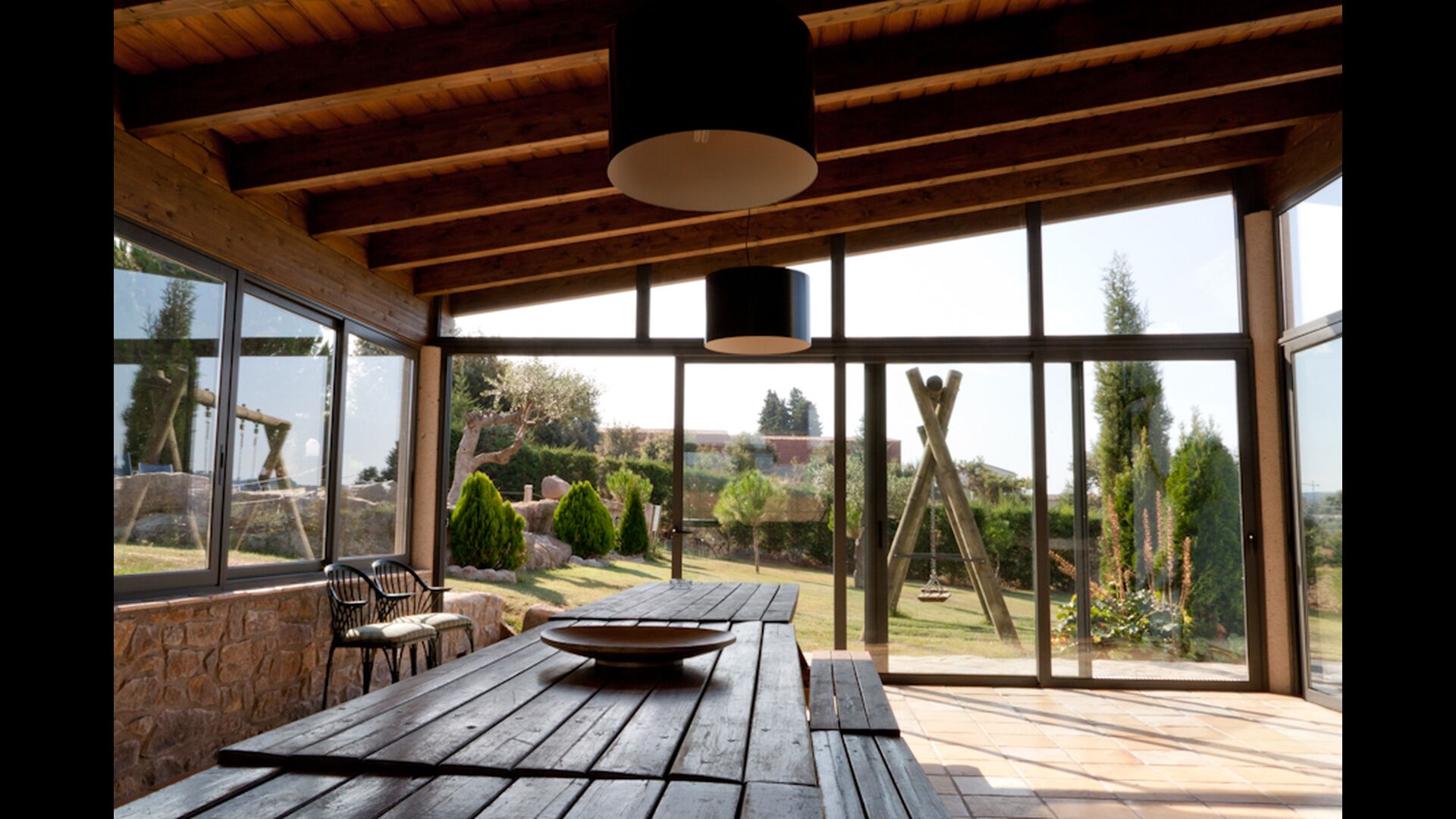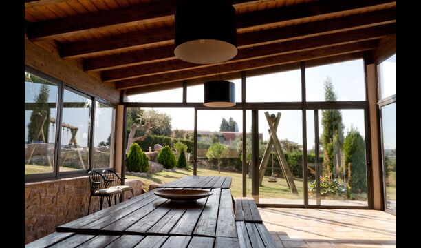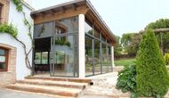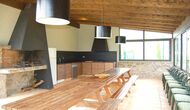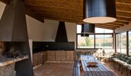 I 2010 blev det antikke kampestenshus udvidet med en smuk glaspavillon, som er indrettet med komplet køkken, en muret grill samt et langbord, så alle kan spise sammen. I ydersæsonen får du en følelse af at spise uden for uden af fryse og om sommeren kan hele facaden åbnes, så pavillonen fungerer som en kæmpe overdækket terrasse. Herfra kan man slappe af, og samtidig have overblik over, hvad der foregår i haven og poolen.