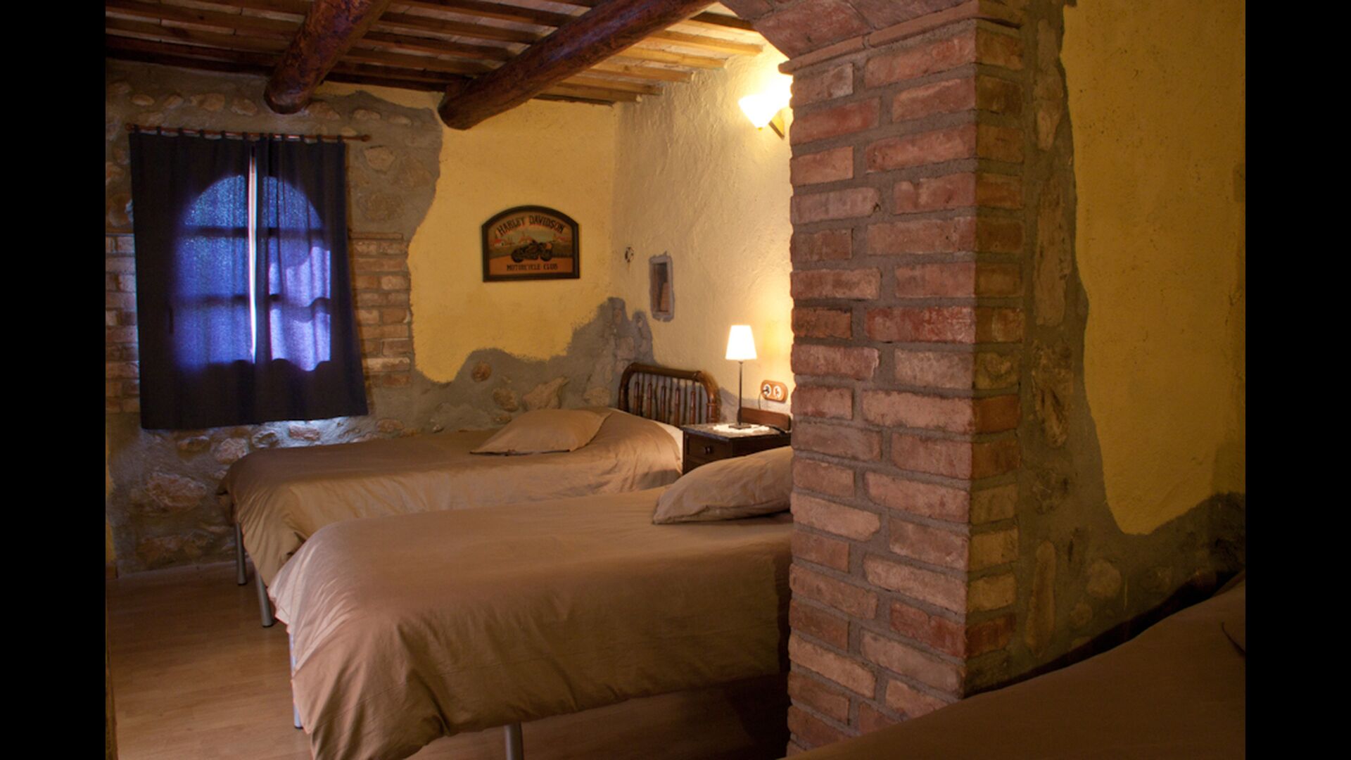 I stueplan er der til venstre et dobbeltværelse med dobbeltseng og adgang til aktivitetsrummet. Til højre er der et stort soveværelser med fire enkeltsenge. På første sal er der alrummet i midten og i hver ende et soveværelse, henholdsvis et tresengs-værelse og et dobeltværelse. På anden sal er der fire dobbeltværelser med dobbeltsenge. Hele huset er udstyret med WIFI-internet.