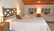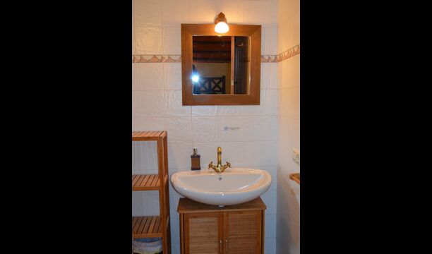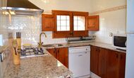 Husets stue har flere sofagrupper. Der er et køkken ved siden af spisestuen samt ved siden af stuen (identiske men spejlvendte). I køkkenet er alle moderne bekvemmeligheder så som opvaskemaskine, ovn, mikroovn, toaster og køl og frys. I feriehuset er desuden vaskemaskine.