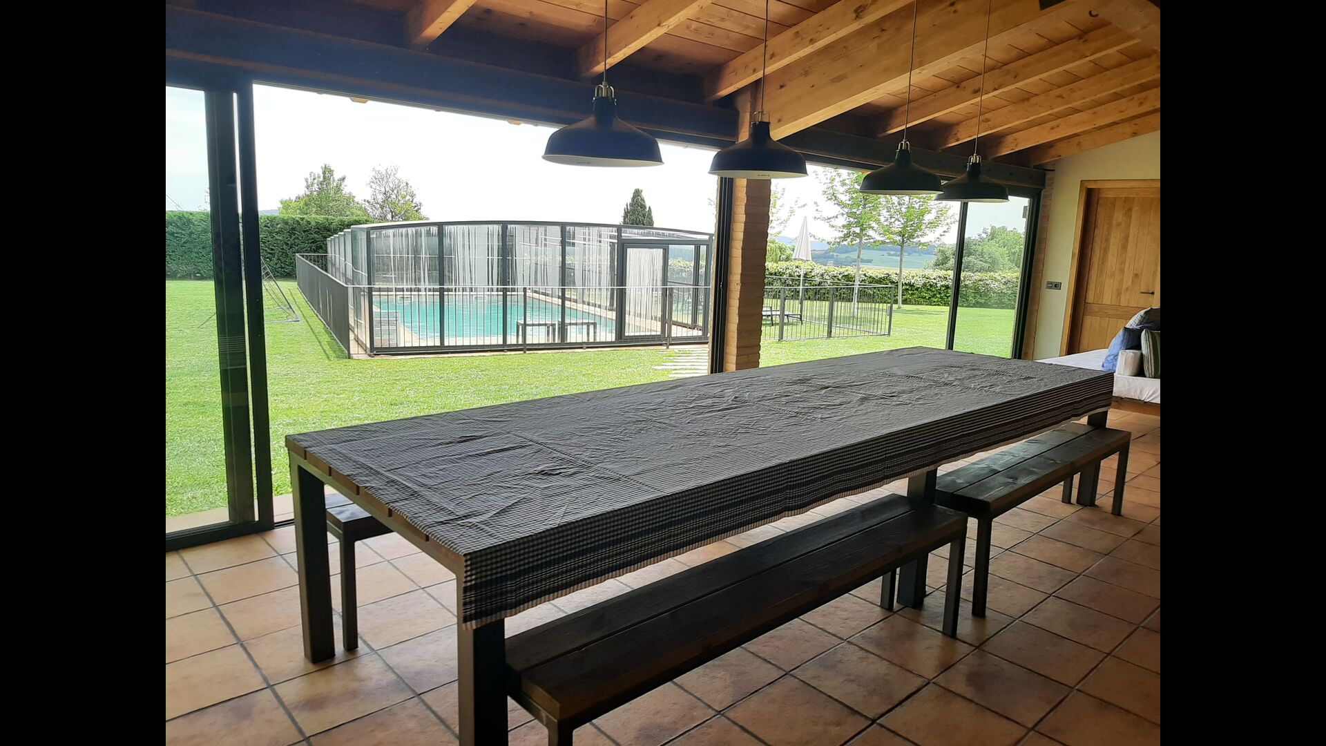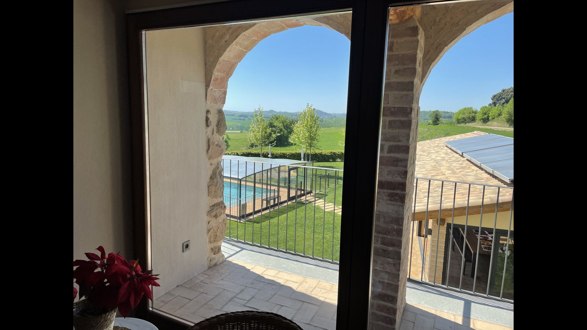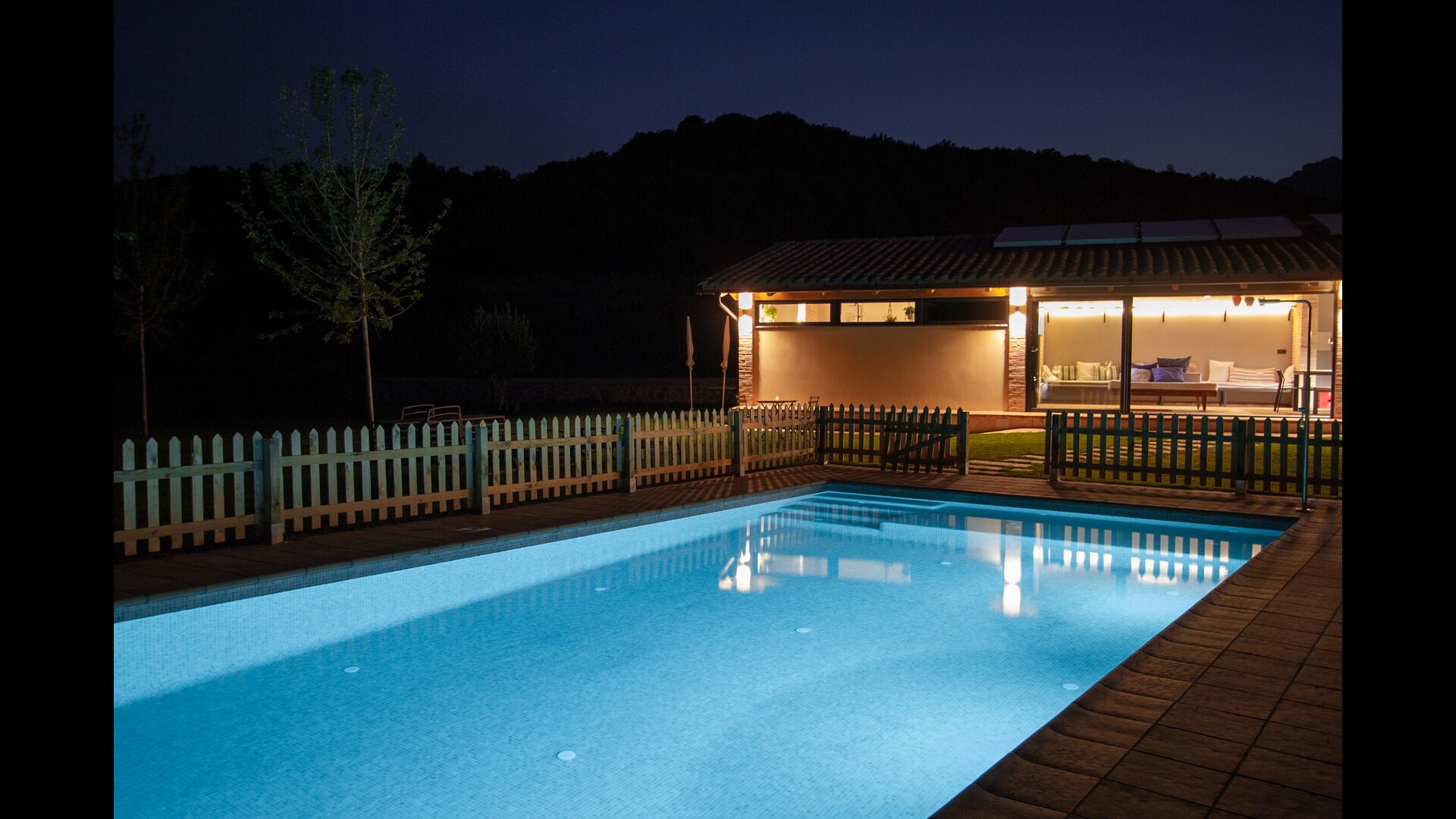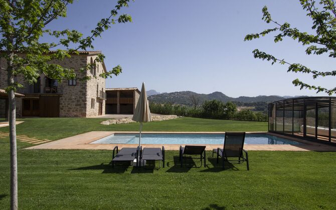 Huset har en fantastisk have med udsigt til Pyrenæerne, der starter lige efter Berga, og med en stor swimmingpool på 10 x 5 meter, som kan overdækkes for at forlænge badesæsonen. Swimmingpoolen er indhegnet som sikkerhed, hvis der er små børn blandt gæsterne.