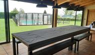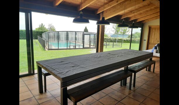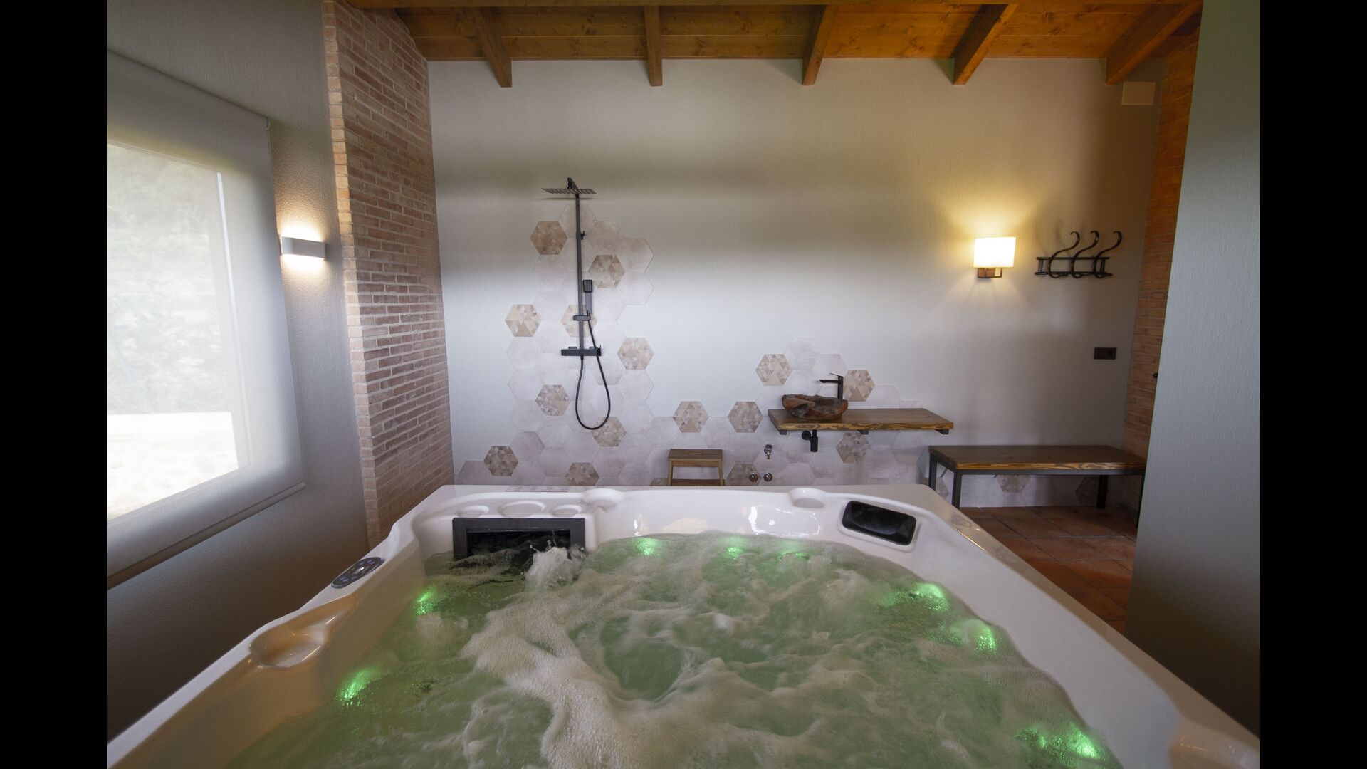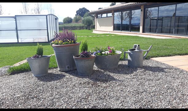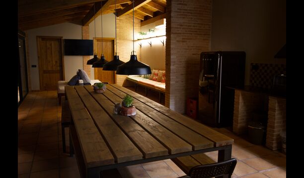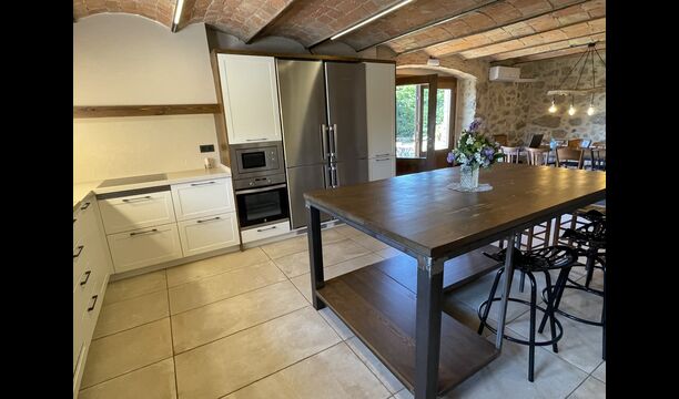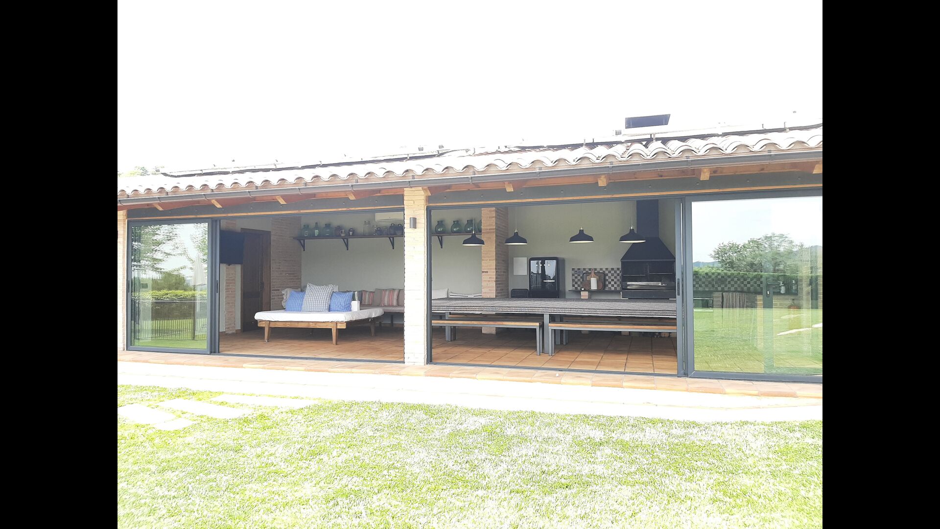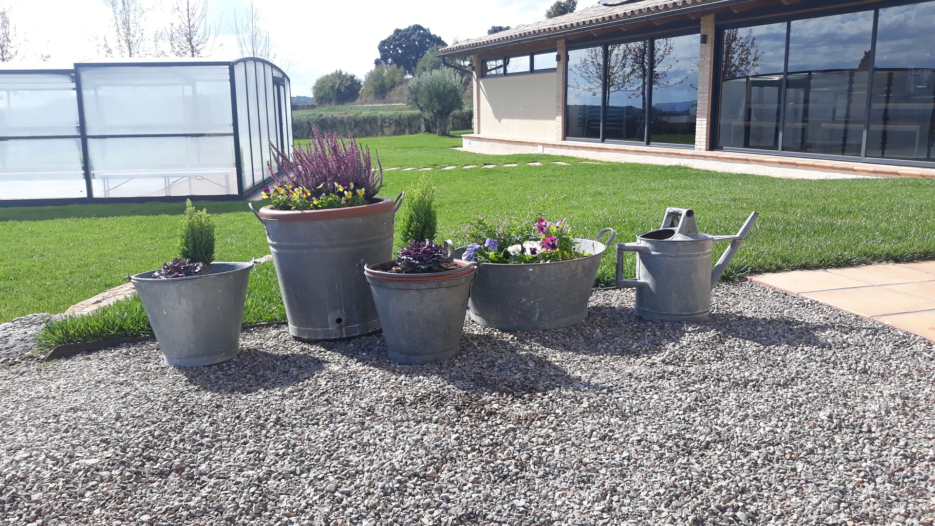 Huset har en fantastisk have med udsigt til Pyrenæerne, der starter lige efter Berga, og med en stor swimmingpool på 10 x 5 meter, som kan overdækkes for at forlænge badesæsonen. Swimmingpoolen er indhegnet som sikkerhed, hvis der er små børn blandt gæsterne.