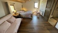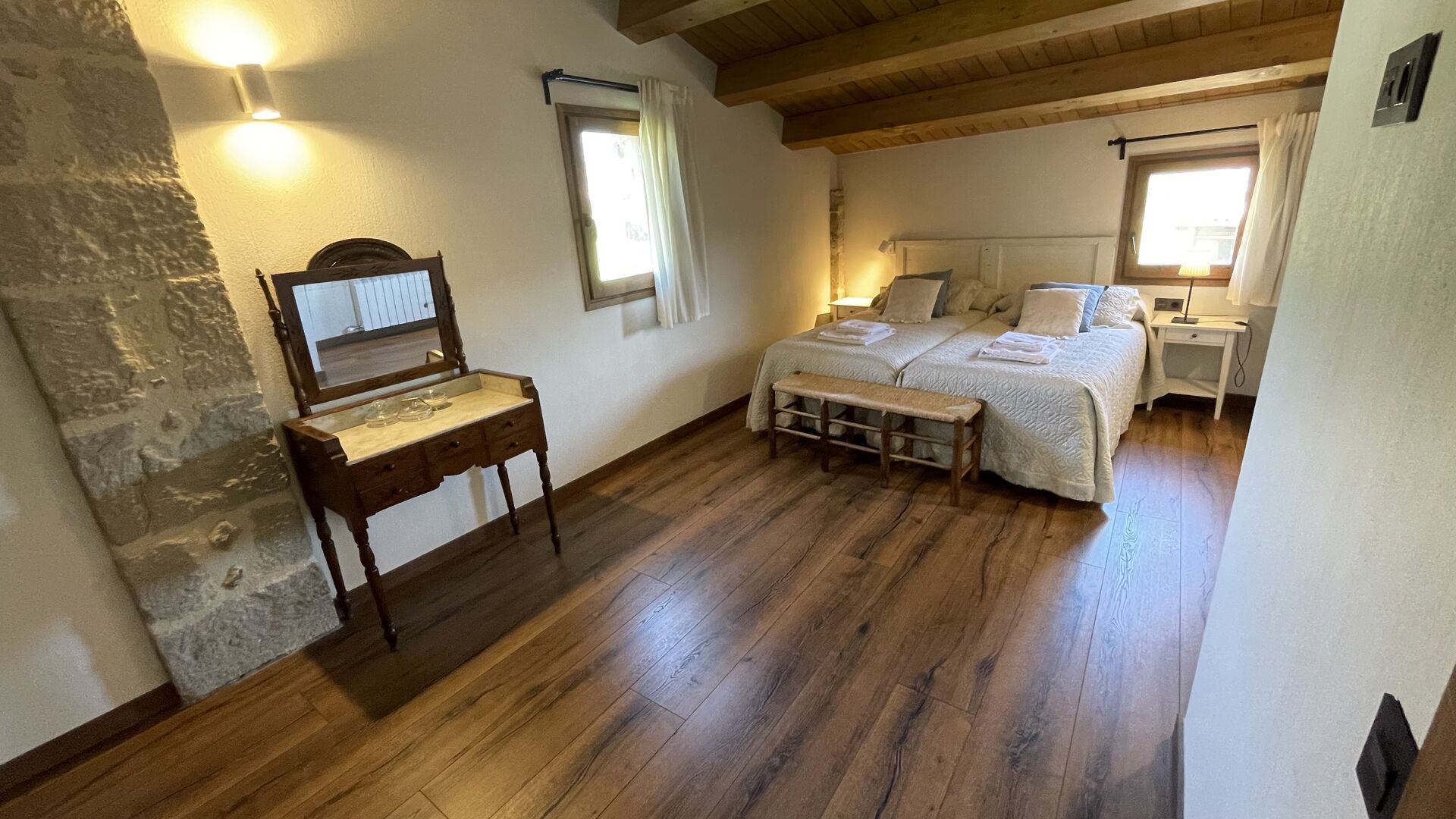 På anden sal, med skrå lofter, er der yderligere 4 smukke dobbeltværelser også alle med eget badeværelse og en opholdstue med sofaer. Alle værelser har en fremragende panoramaudsigt over området.