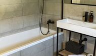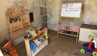 På første sal er der et aktivitetsrum med pejs og 4 dobbeltværelser, alle med eget badeværelse.