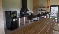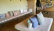 Om aftenen eller på en varm sommerdag, er der en lækker overdækket terrasse, udstyret med vand, køleskab og grill - perfekt til et afslappende måltid.