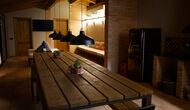 Huset er opdelt i tre niveauer. Stueetagen, med adgang til udendørsområderne, har spisestue, køkken og fællesarealer, ligesom denne etage har et soveværelse med dobbeltseng og et fælles badeværelse.