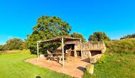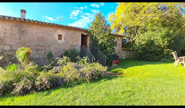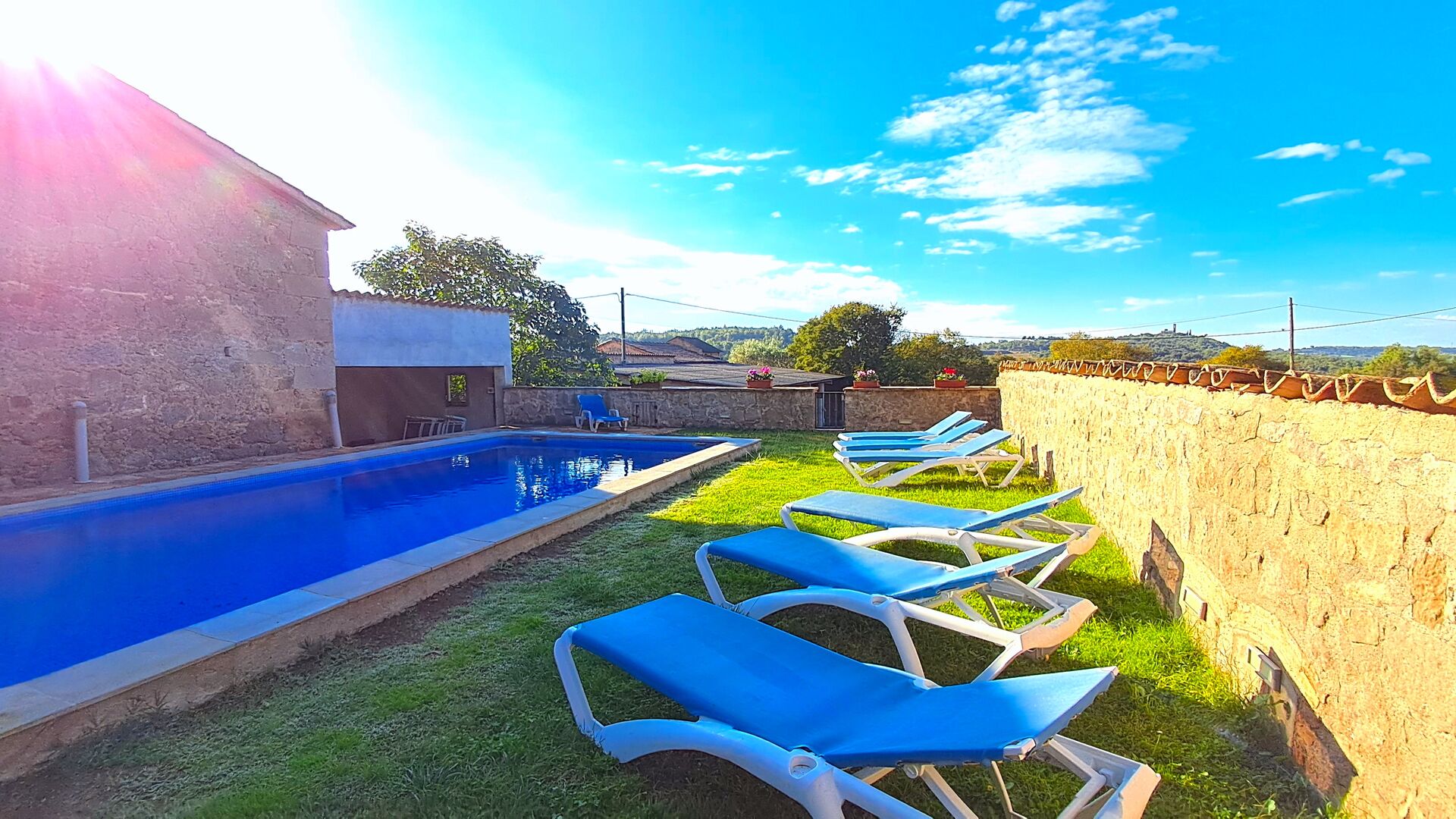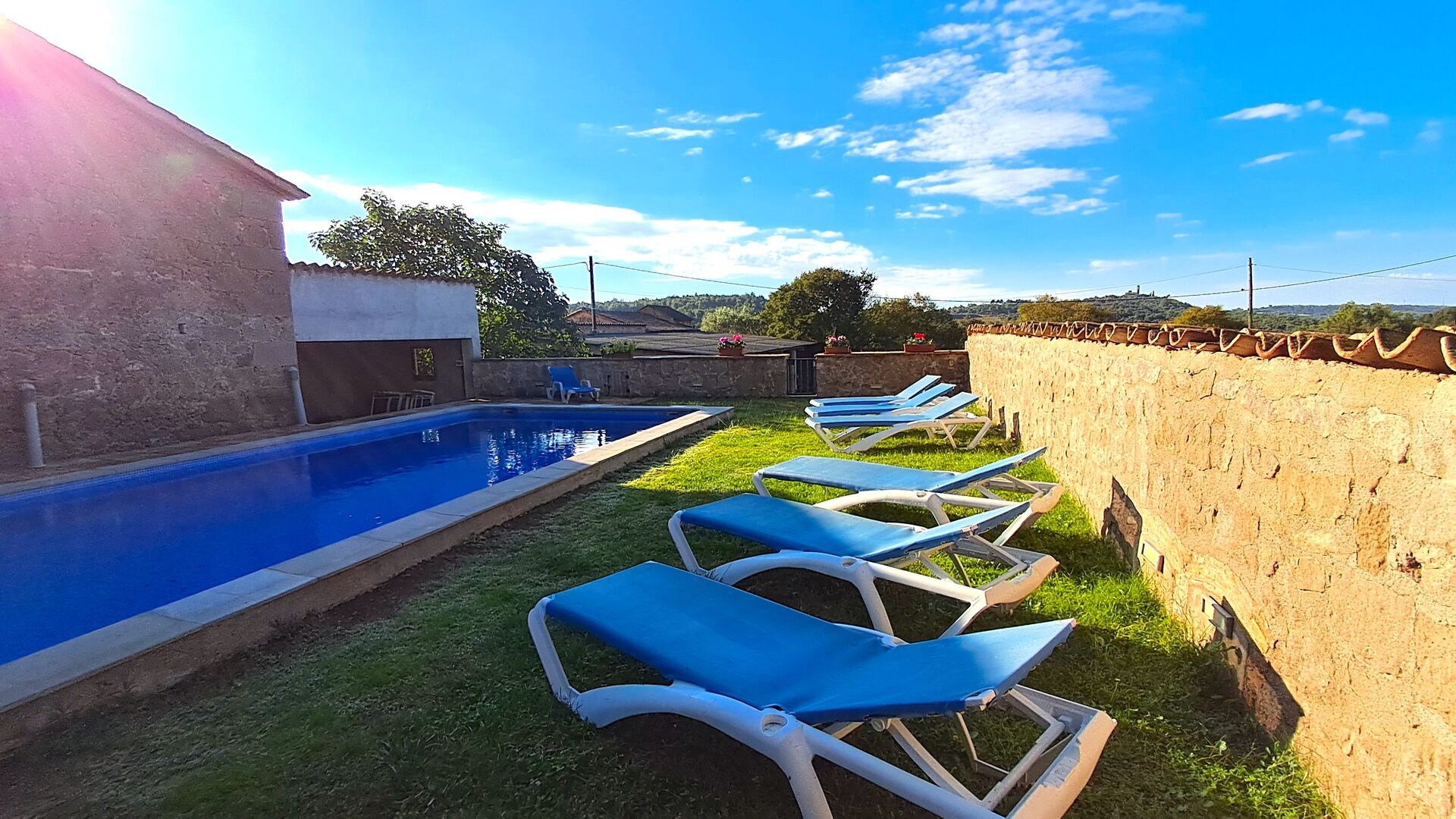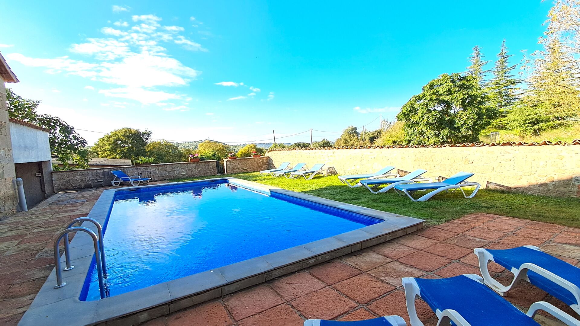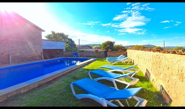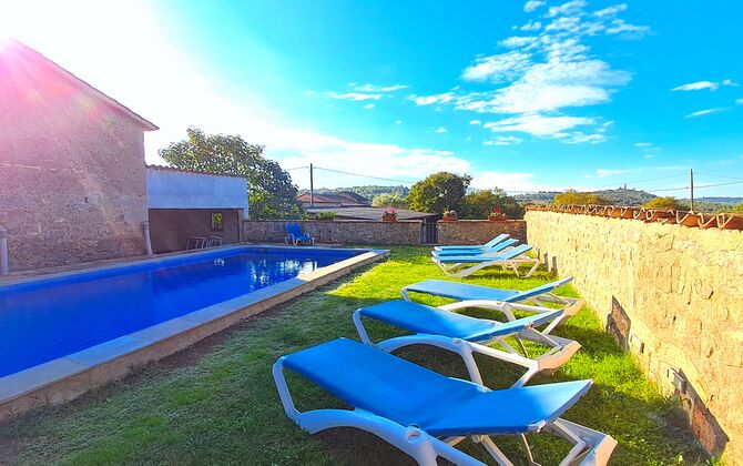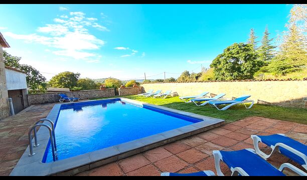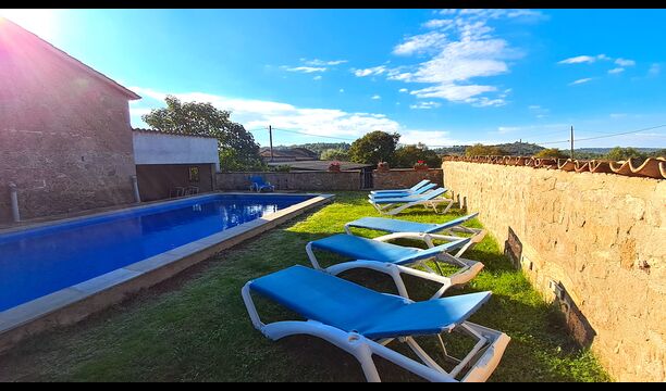 Huset har denne sommer fået anlagt ny pool, som ligger privat mellem huset og fodboldbanen og med en smuk udsigt til kirken La Guardia på en bakketop i horisonten. Der er både haveborde og liggestole ved poolområdet.