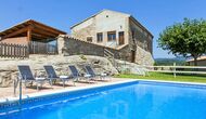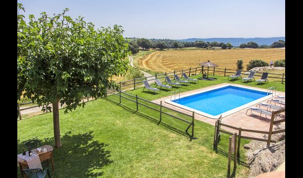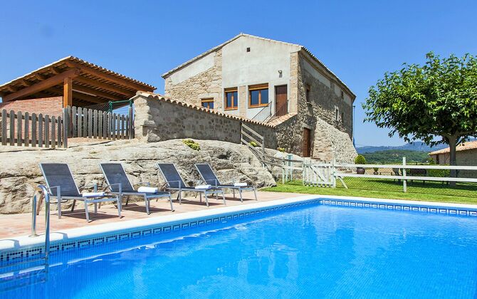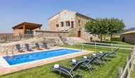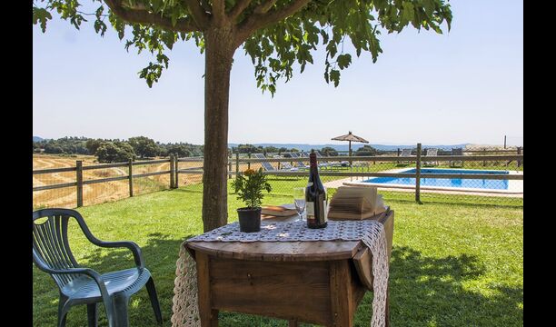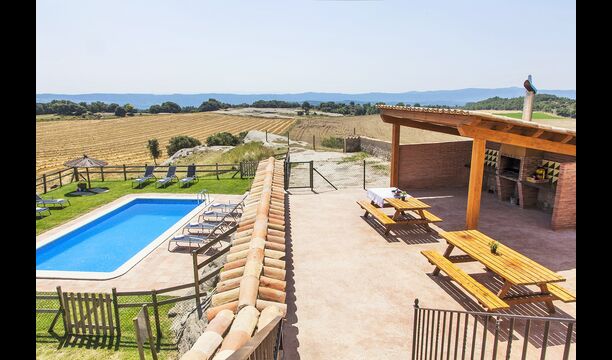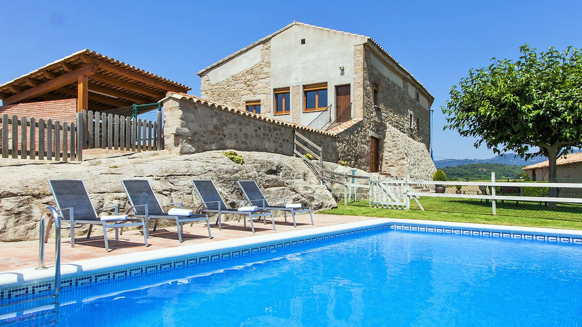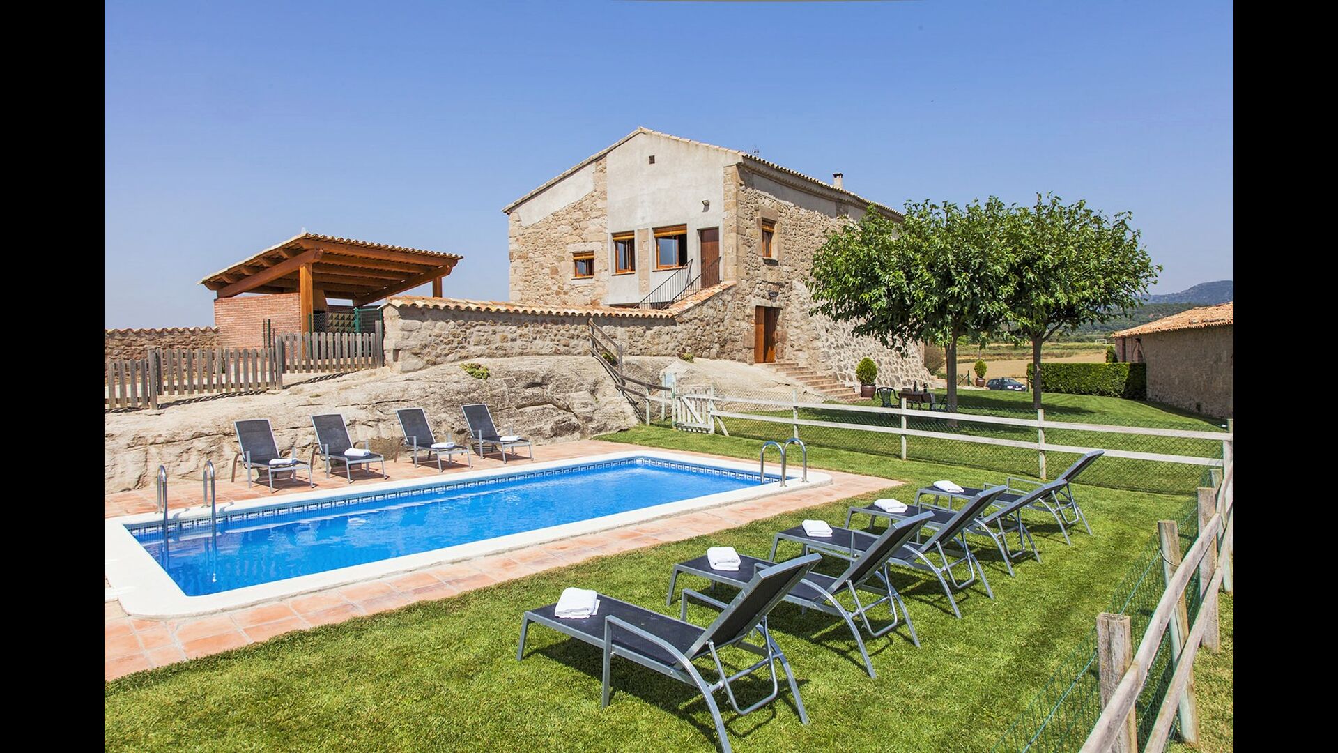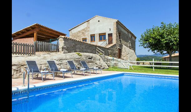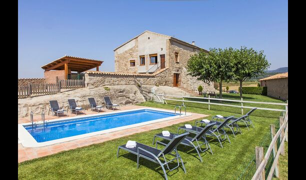 Huset er et traditionelt catalansk stenhus på 550m2 fordelt på 3 etager og med plads til 17 (+3) gæster. Det ligger placeret mellem marker og enge med de catalanske Pyrenæer, der rejser sig i baggrunden.