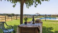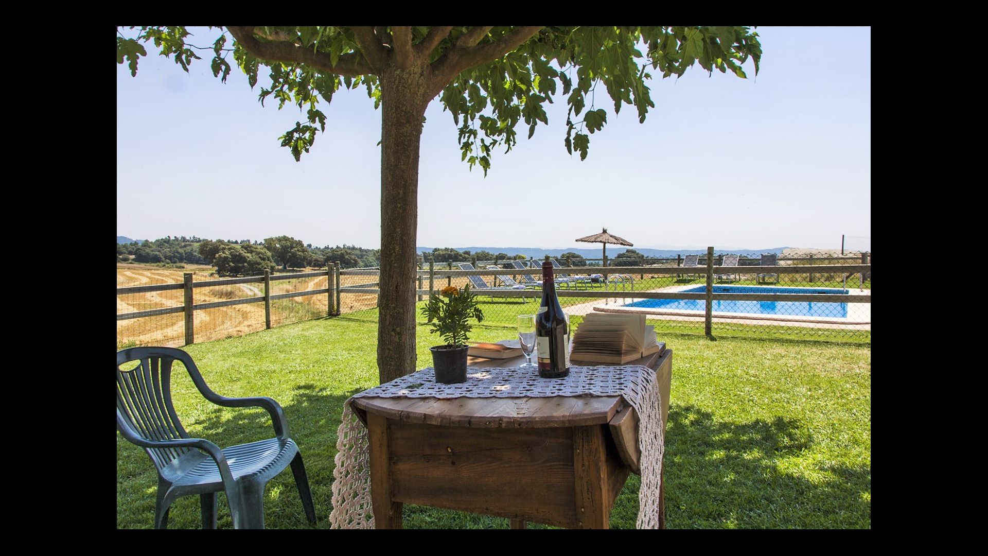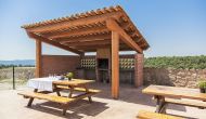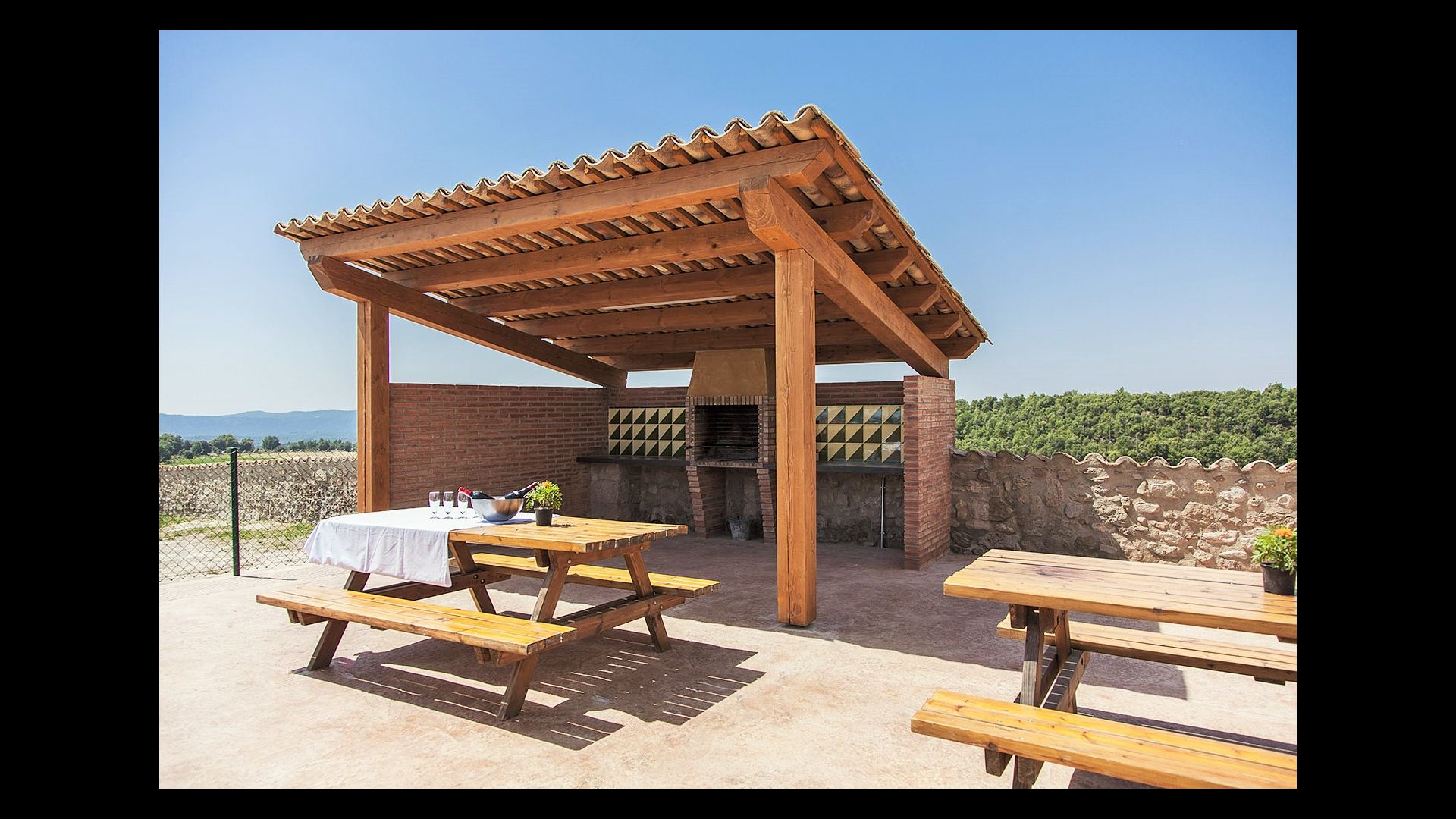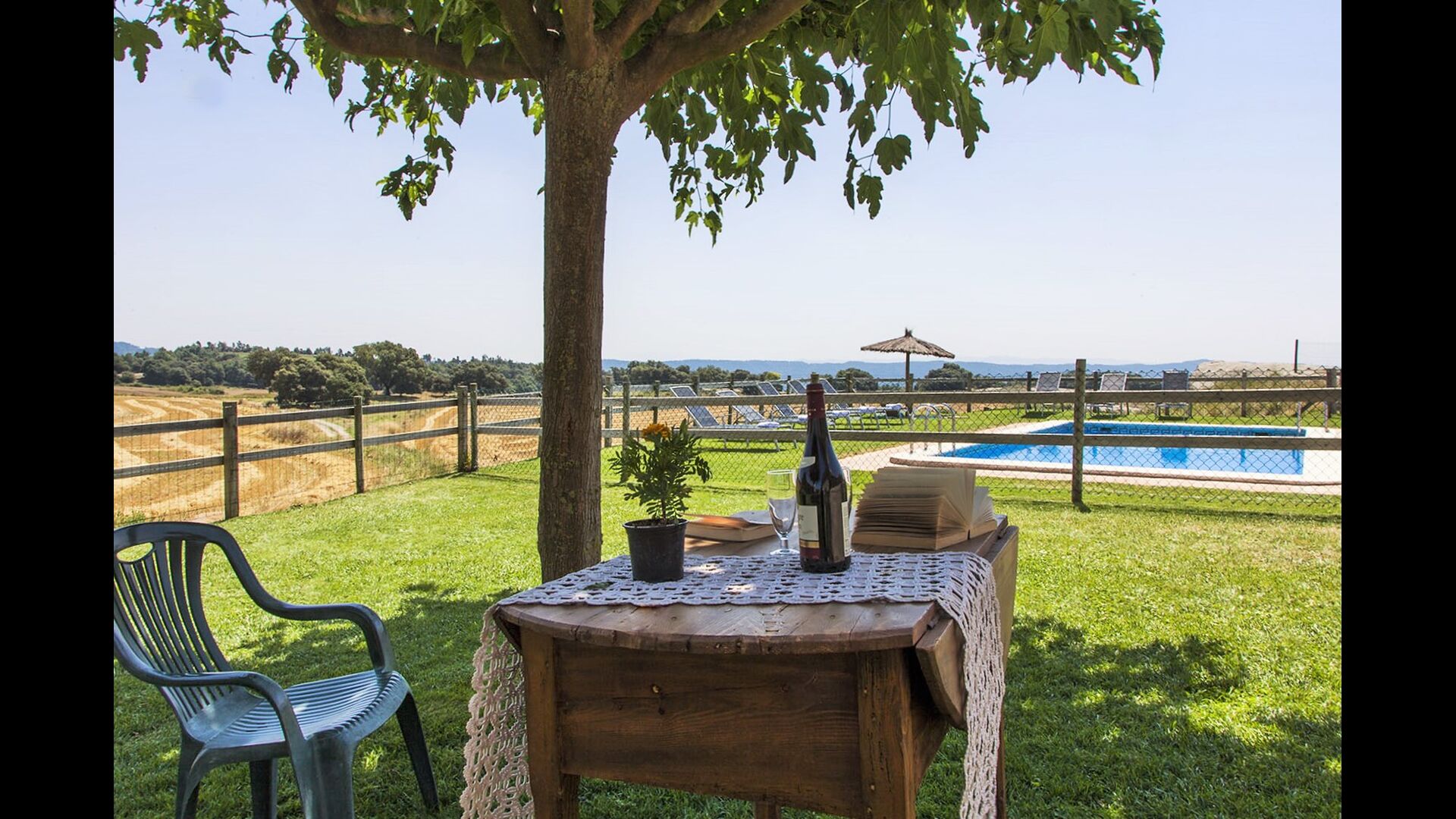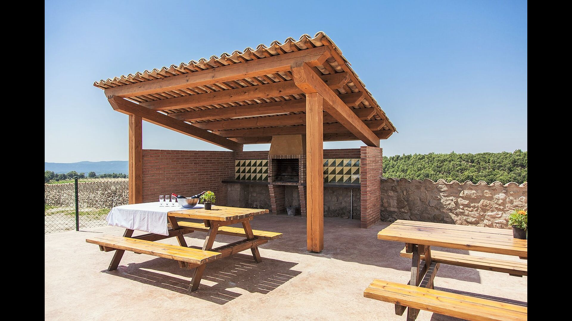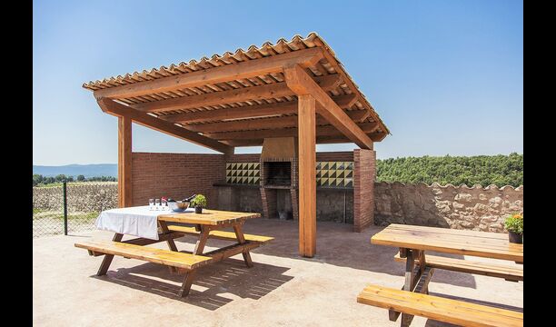 Lidt hævet over Swimmingpoolen er lavet en god terrasse (hvortil der desuden er direkte udgang fra huset), med langborde og et godt BBQ område. Vi tænker at man her vil sidde og nyde de lange lune aftener samtidigt med at man kan have et øje på børnene, der måske ønsker sig en aften dukkert i poolen. Fra terrassen og haven er der i øvrigt en rigtig dejlig udsigt til det smukke landskab og ikke mindst de imponerende Pyrenæer.