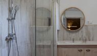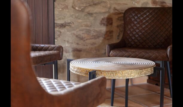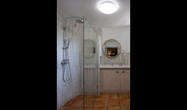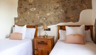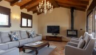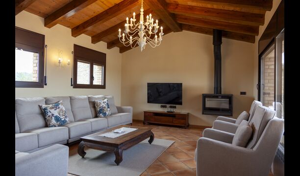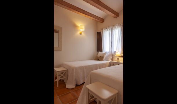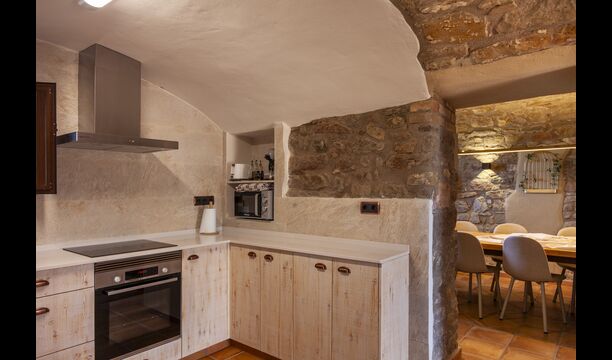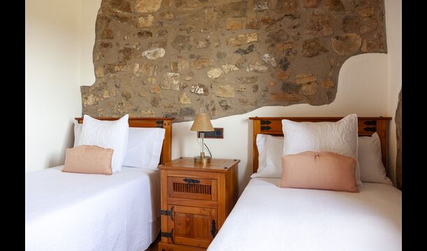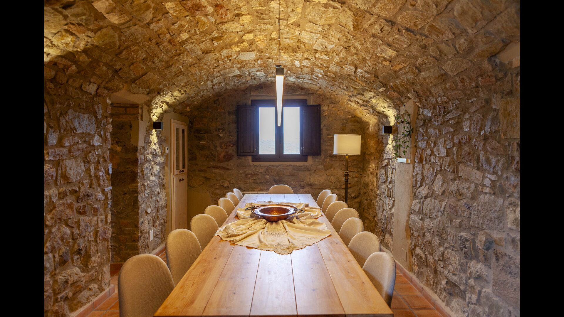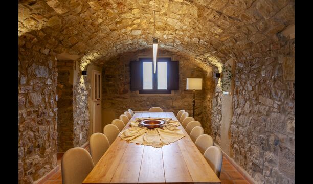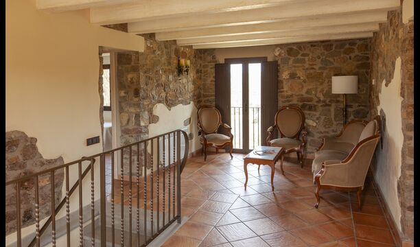 Huset er designet til at rumme op til 16 gæster med 8 dobbeltværelser og 5 badeværelser. De indvendige rum kombinerer rustik charme med moderne komfort, herunder stenvægge, træbjælker og elegant møblering, der skaber en varm og indbydende atmosfære.