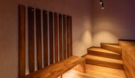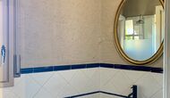 Denne del af huset har fire soveværelser. Ved siden af stueetagens opholdsrum ligger et dobbeltværelse med eget badeværelse. Længere nede af gangen er et tredobbelt værelse - også med eget badeværelse. Fra gangen følger man trappen op til husets første sal. Her finder du resten af de rummelige dobbeltværelser, som også har ensuite badeværelser.