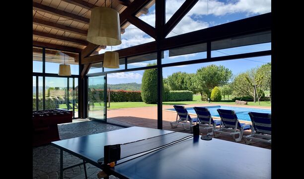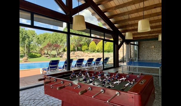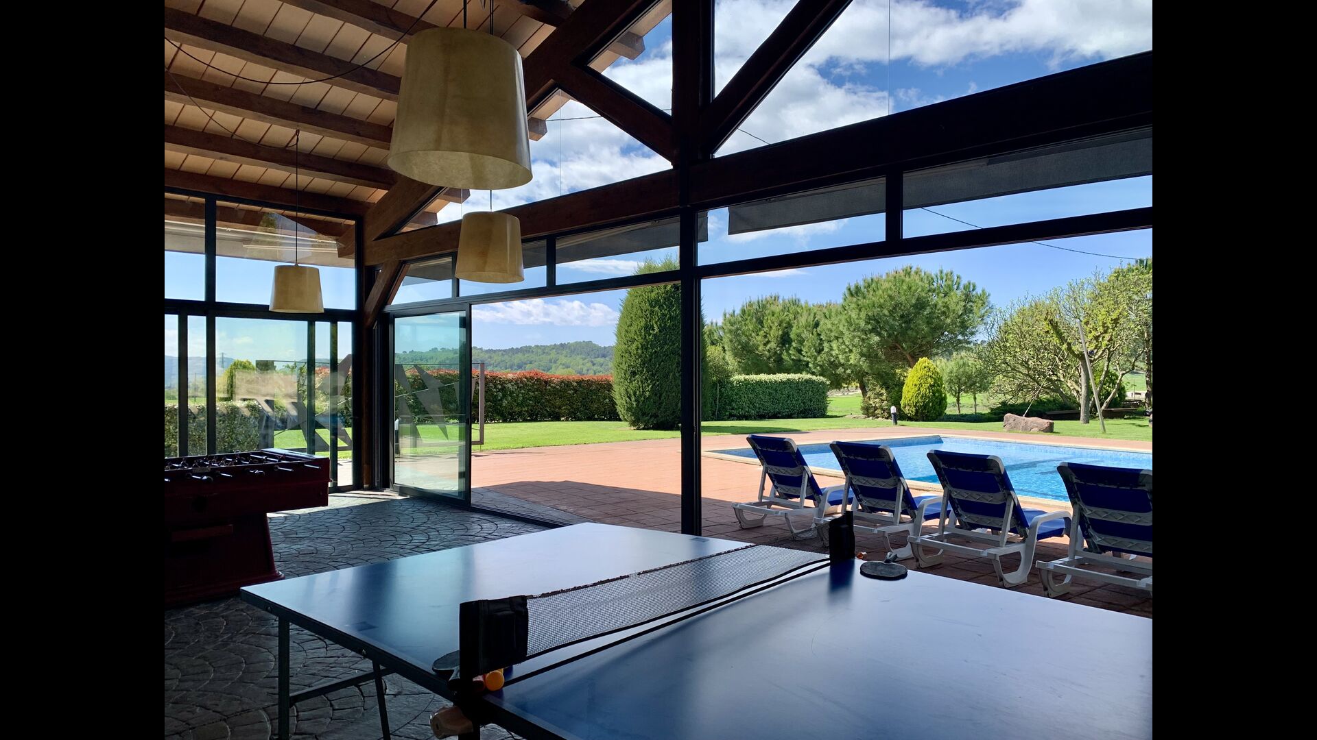 Husets samlingspunkt er swimmingpoolområdet, som er forbundet med en stor spillehal. Vi forestiller os, at du vil tilbringe det meste af din tid her og nyde det varme catalanske vejr. Langs poolet er der opstillet behagelige liggestole, og swimmingpoolen er stor med masser af plads til hele feriegruppen! Vi forestiller os, at feriegruppens børn vil hygge sig enormt meget, imens de skiftevis svømmer, spiller bordtennis og bordfodbold!