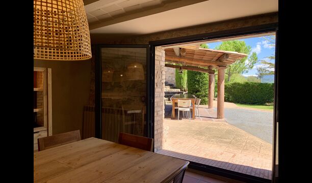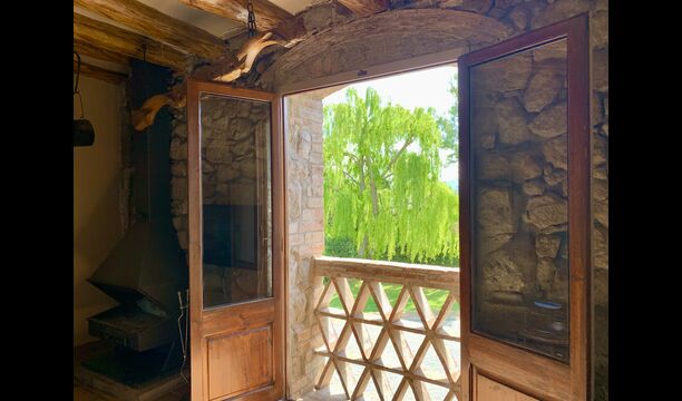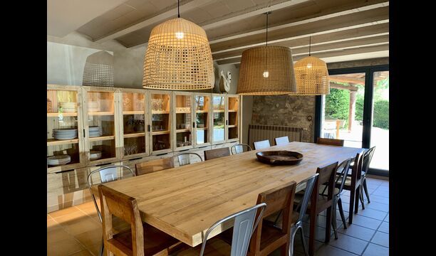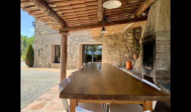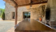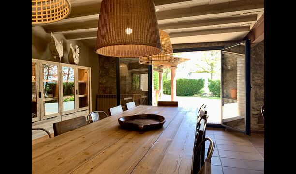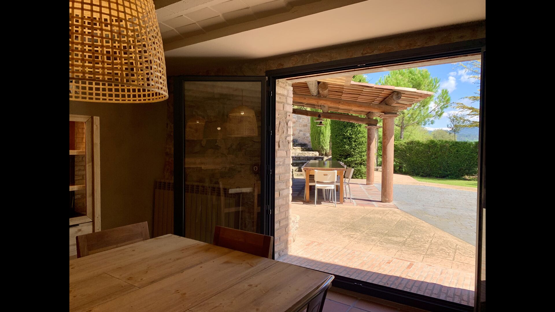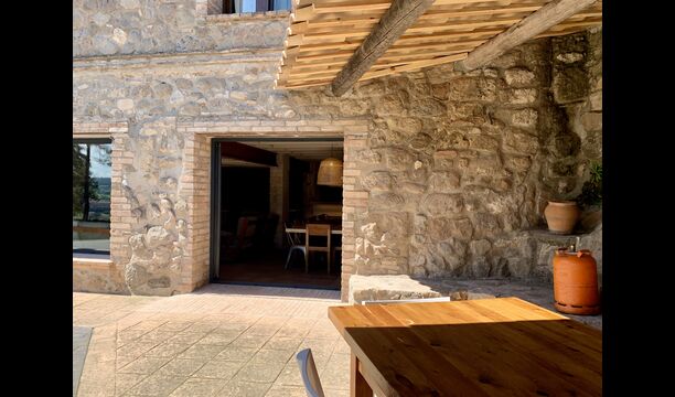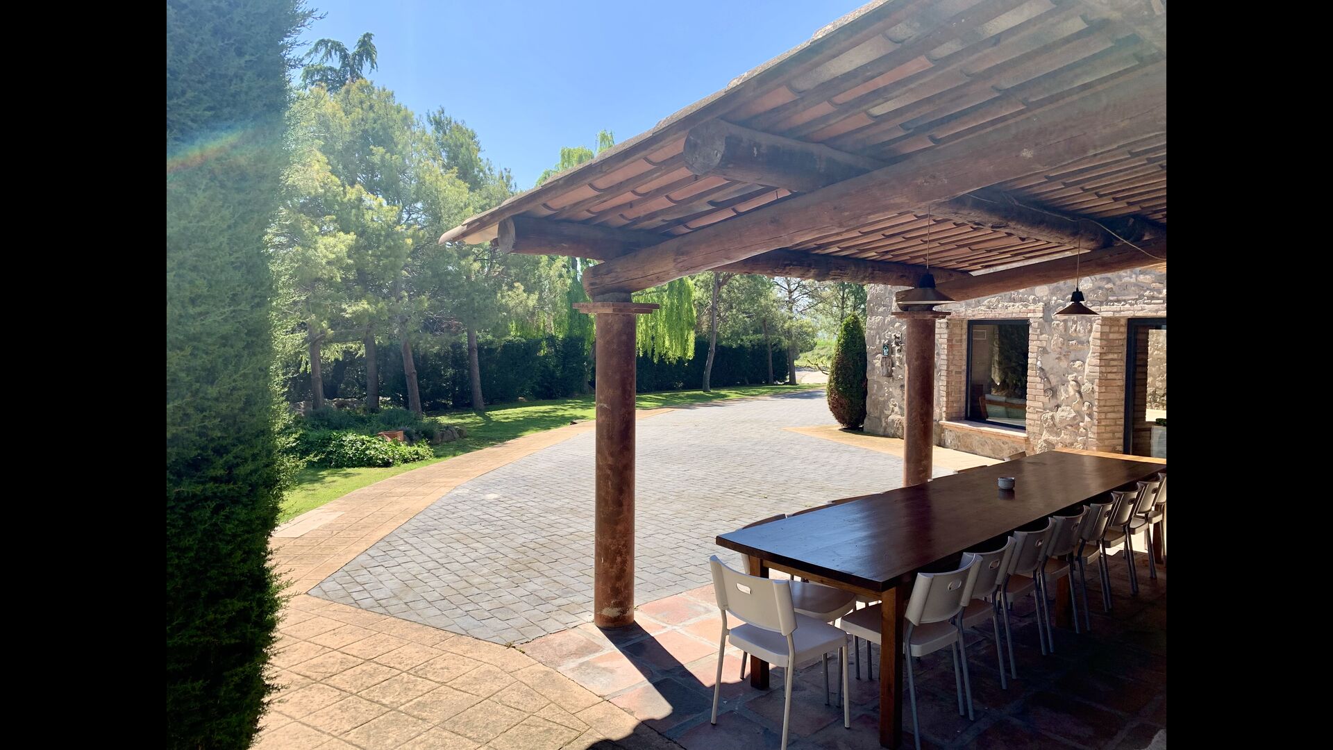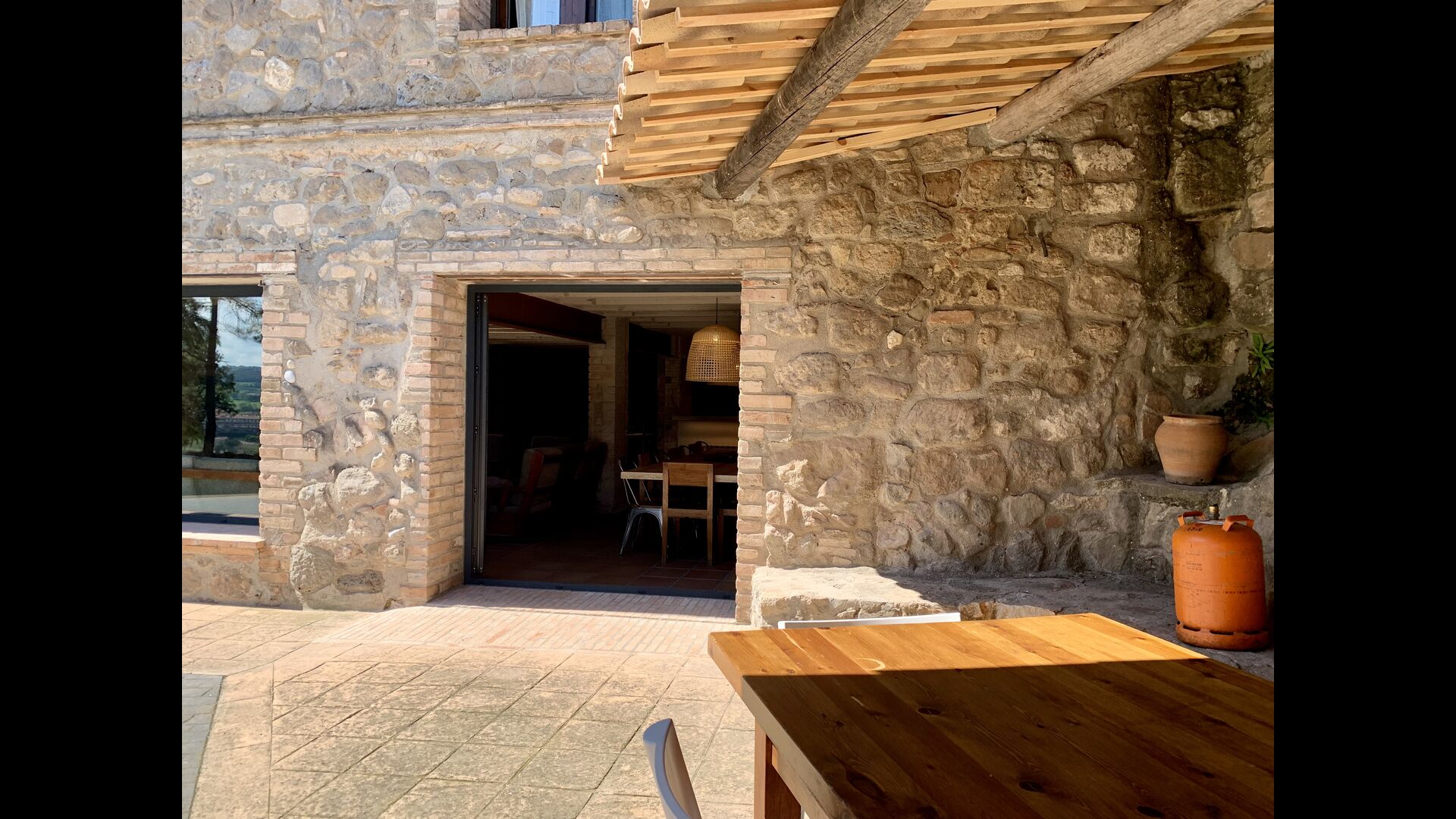 Casa Puentes har to separate indgange, da huset er delt op i to selvstændige boliger. Den første bygning, der du ser når du kører op af den lange, flotte indkørsel, har en stor, skyggefuld terrasse foran huset. Terassen har en stor BBQ og et langt træbord med plads til hele gruppen. Vi forestiller os lange sommernætter med godt selskab og lokal mad og vin fra de catalanske markeder og vingårde!