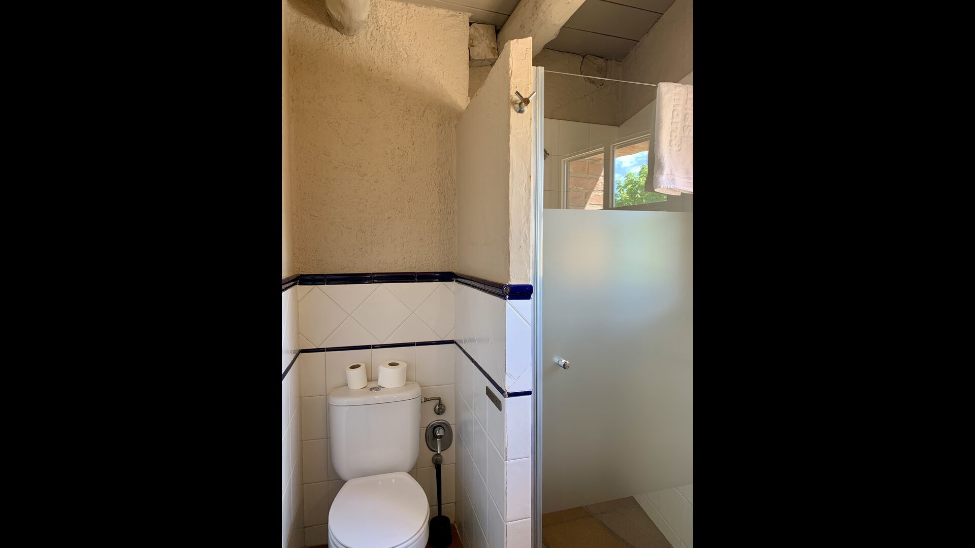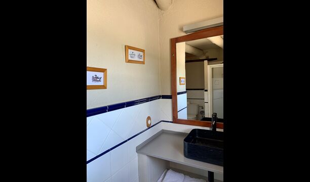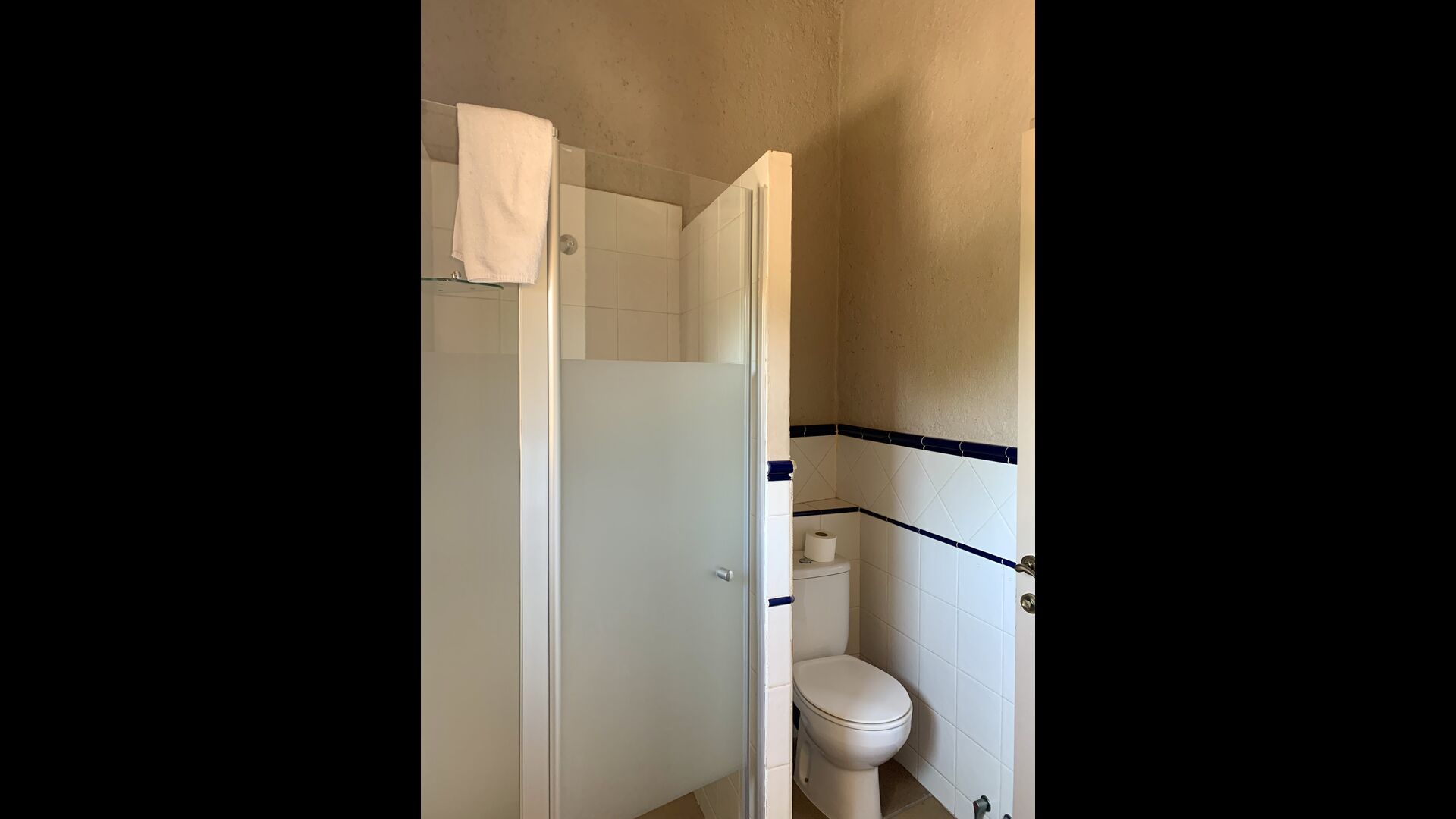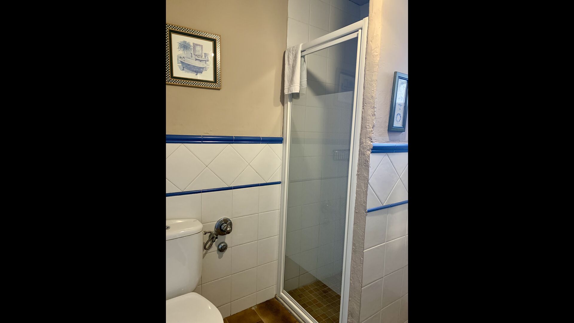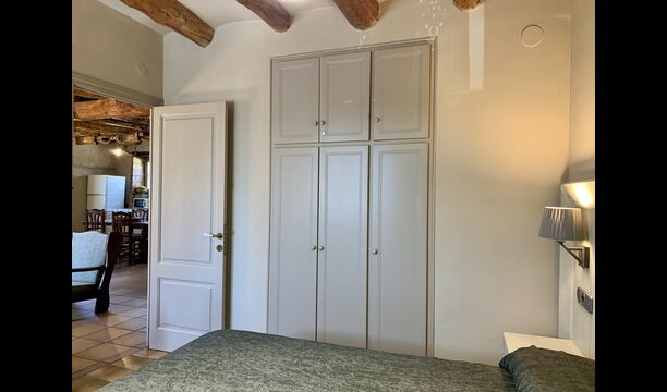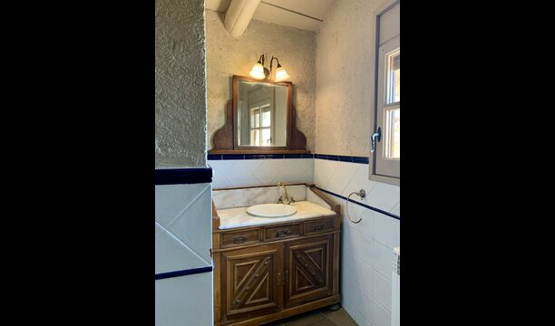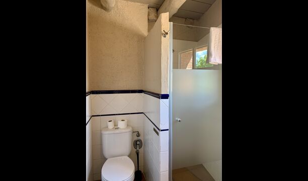 Fra den øverste sal er der en dør som fører dig ud til husets baghave og poolområde. Ved siden af denne udgang finder du indgangen til den anden del af boligen. Fra entréen træder du ind i endnu et hyggeligt, fælles opholdsrum bestående af et charmerende åbent køkken, et spisebord og et opholdsrum med sofaarrangement og TV. Her er også en fransk altan med smukke dobelltdøre, som har udsigt over haven. Husets tre dobbeltværelser og de to badeværelser ligger alle med fører ud til fælledsrummet.