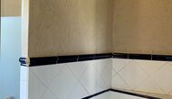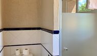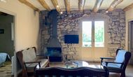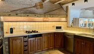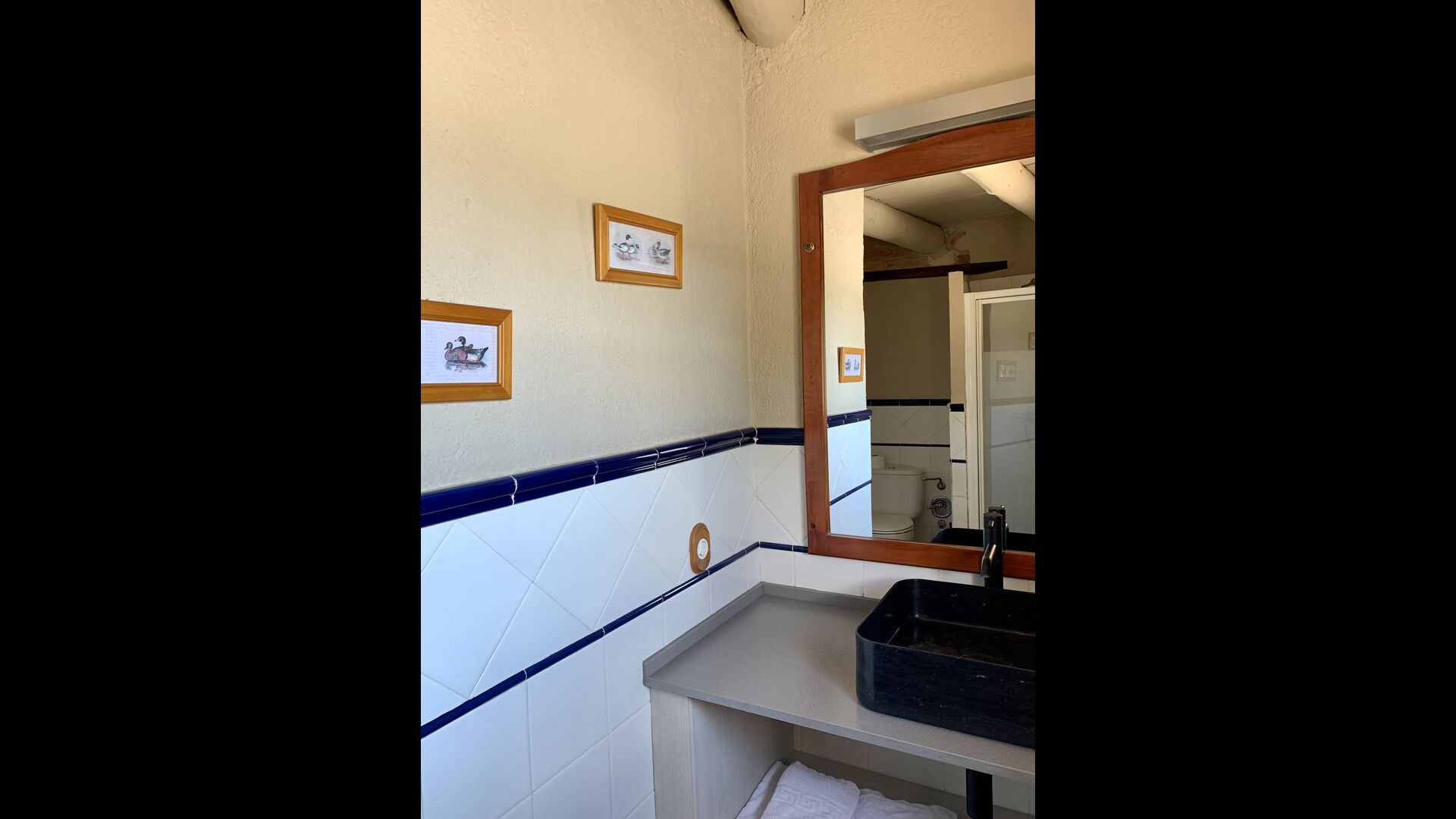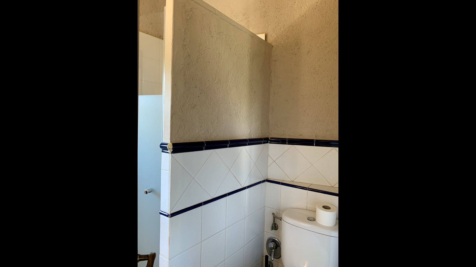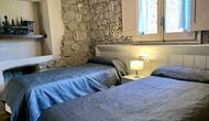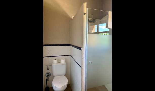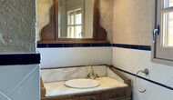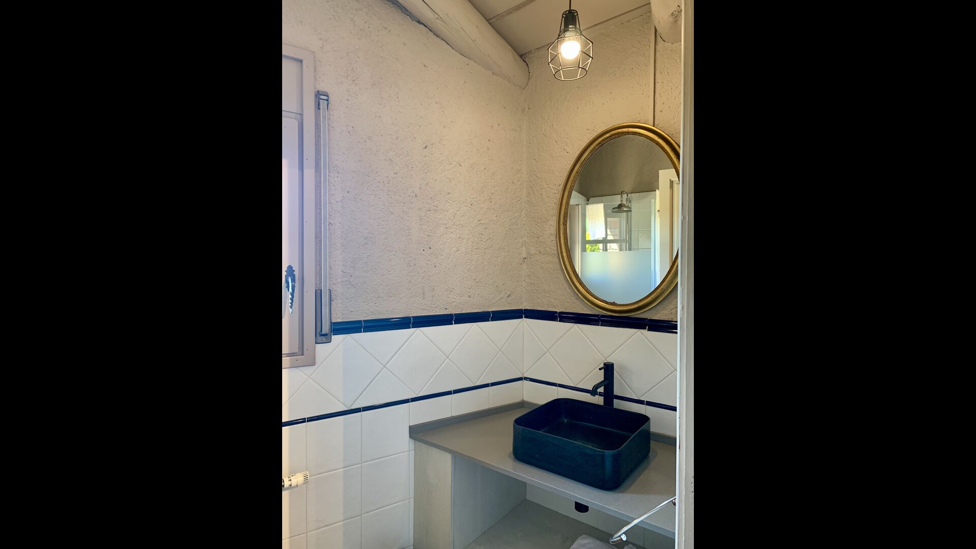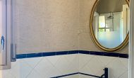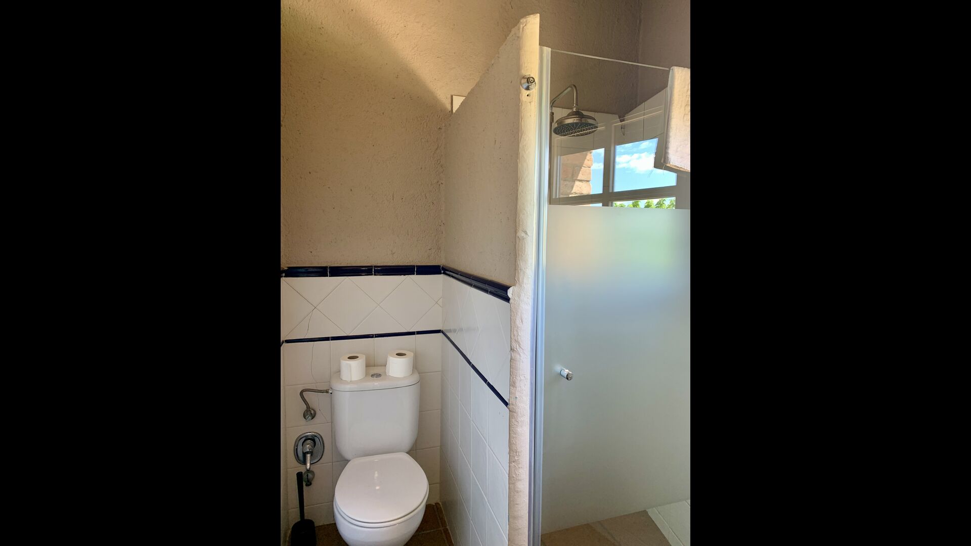 Fra den øverste sal er der en dør som fører dig ud til husets baghave og poolområde. Ved siden af denne udgang finder du indgangen til den anden del af boligen. Fra entréen træder du ind i endnu et hyggeligt, fælles opholdsrum bestående af et charmerende åbent køkken, et spisebord og et opholdsrum med sofaarrangement og TV. Her er også en fransk altan med smukke dobelltdøre, som har udsigt over haven. Husets tre dobbeltværelser og de to badeværelser ligger alle med fører ud til fælledsrummet.