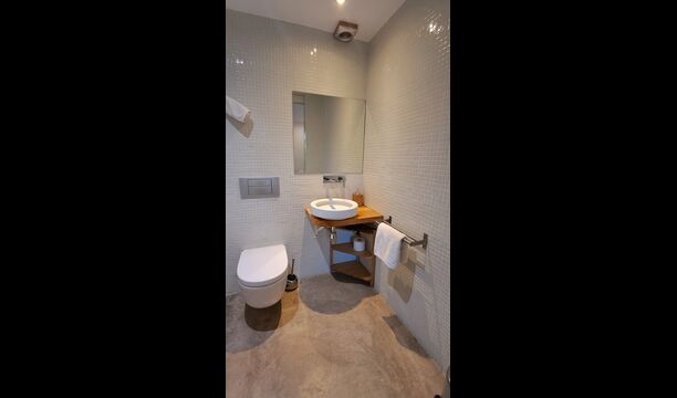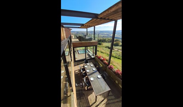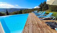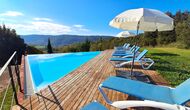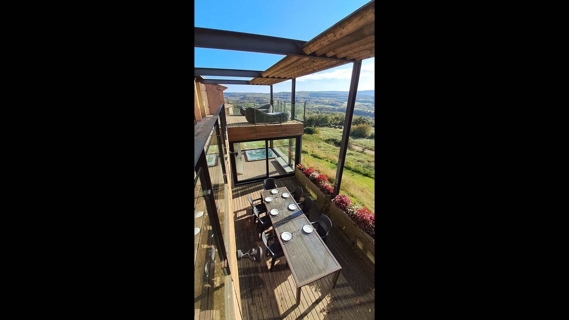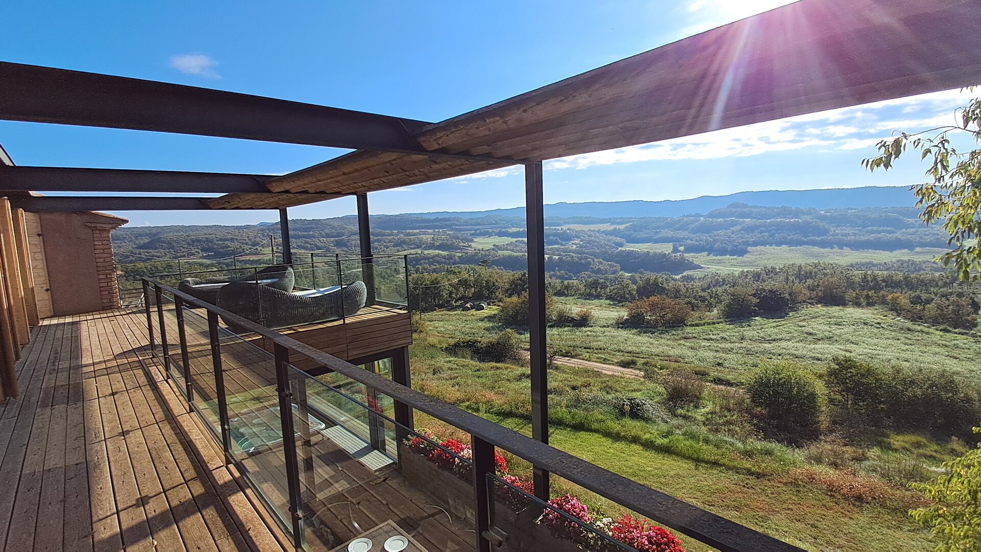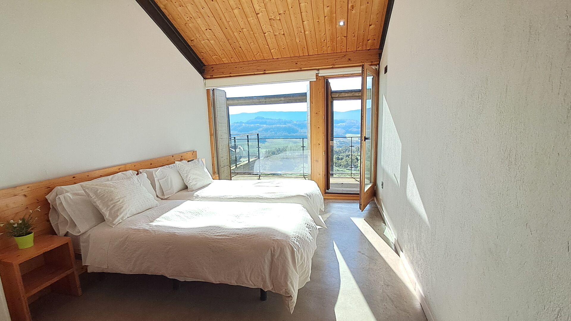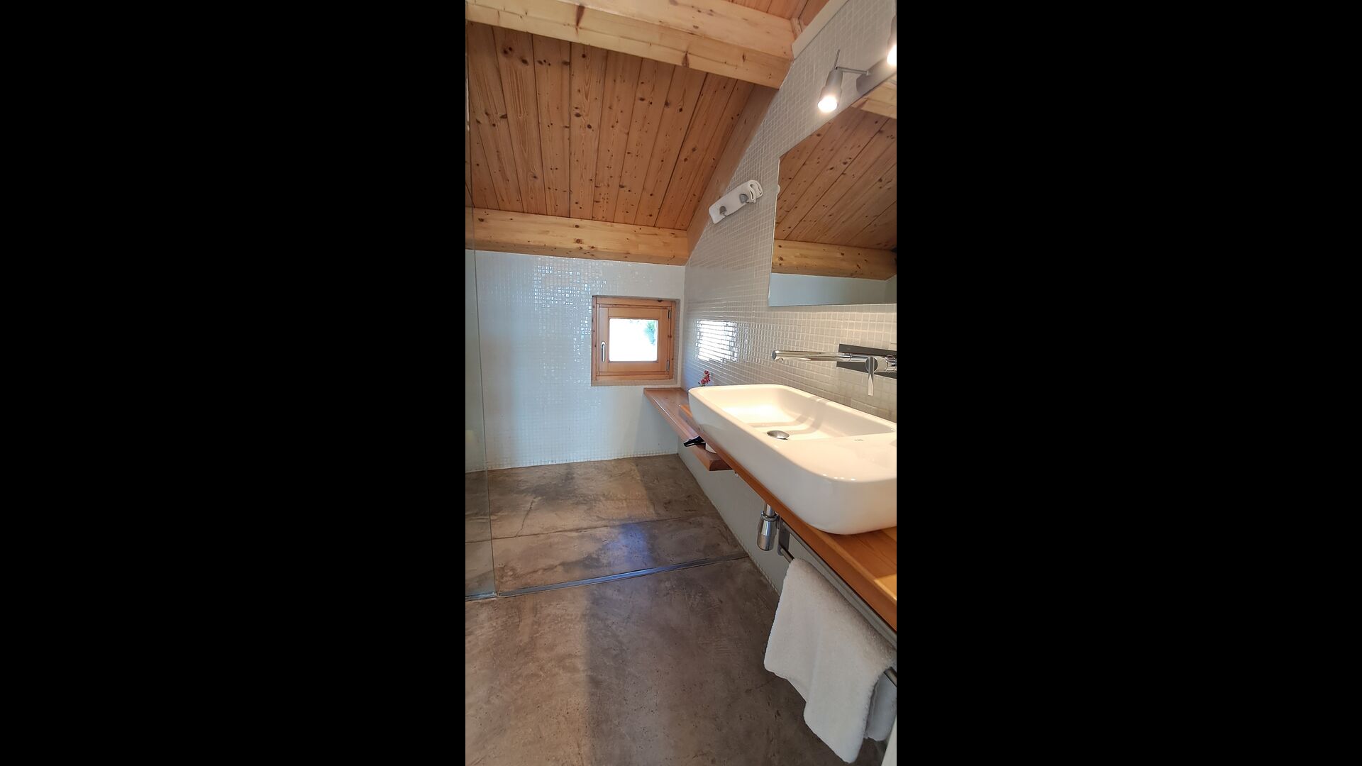 Husets anden etage har ligeledes et stor terrasse, hvor alle værelser på etagen har direkte udgang til. Huset swimmingpool området er noget for sig selv og det må være lykken at nyde en feriedag omkring poolen med vennerne eller familien i så unikke omgivelser. Swimmingpoolen er trekantet og en mekanisme gør at vandet konstant er i bevægelse ned over kanterne. Poolens kanter vil blive indhegnet med et diskret hegn. Ved poolen er liggestole til alle, et lille overdækket område, samt en stor træ terrasse.