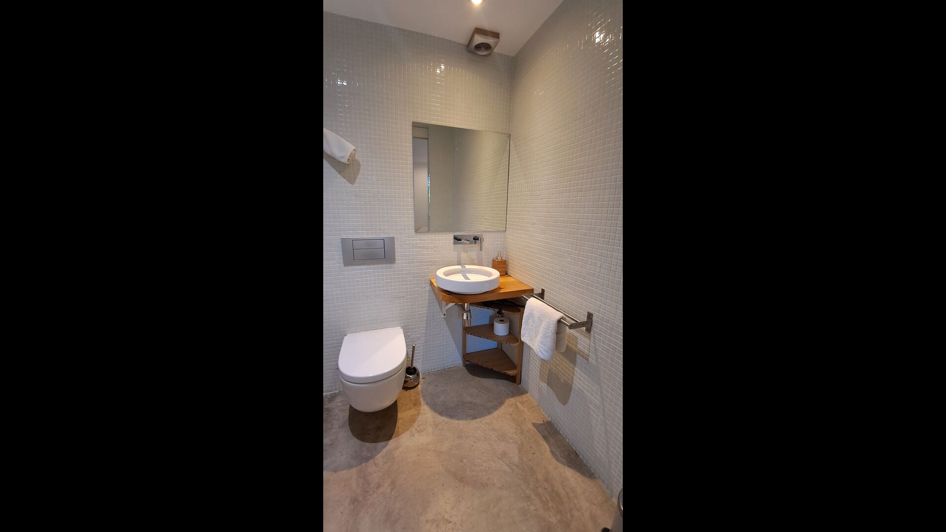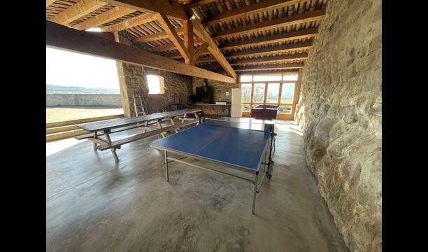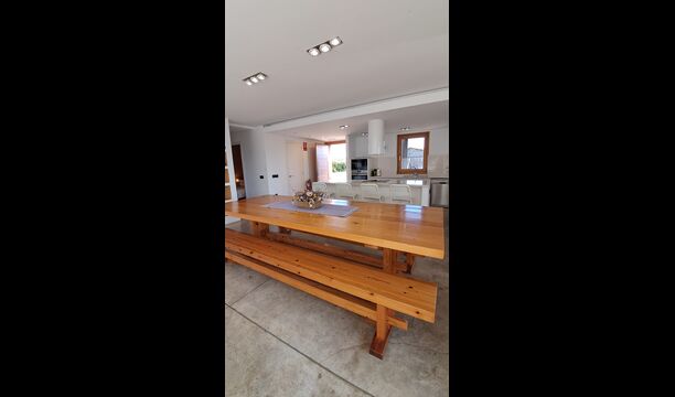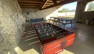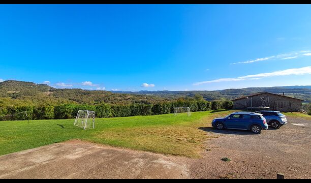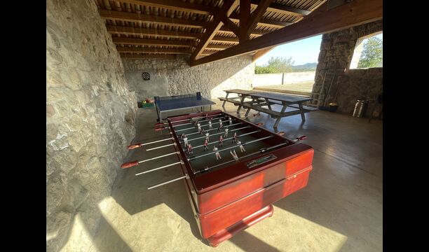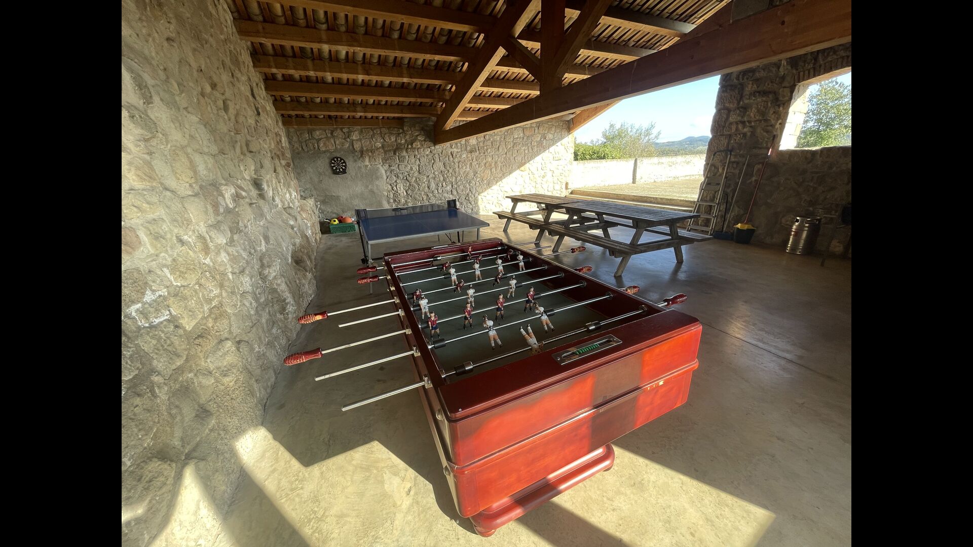 I haven er desuden en boldbane med fodboldmål, basket kurv og i en lille bygning til højre for huset er bygget en stort BBQ område med terrasse og udekøkken og bordtennis. Huset har 6 soveværelser, der alle har private badeværelser. Alle værelser er holdt i moderne stil – de er smukke og lyse og har fin plads. Huset har vandkøling i gulvene, så temperaturen kan sænkes på de varmeste sommerdage.