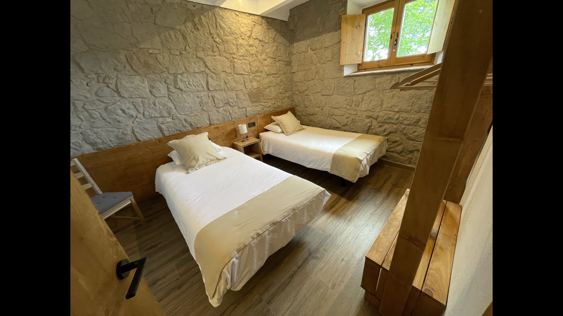 På anden sal finder du de sidste tre soveværelser; Et værelse indeholder 2 enkeltsenge og 1 dobbeltseng, et andet indeholder 1 enkeltseng og 1 dobbeltseng seng. Endelig er der et stort soveværelse som har 7 enkeltsenge.