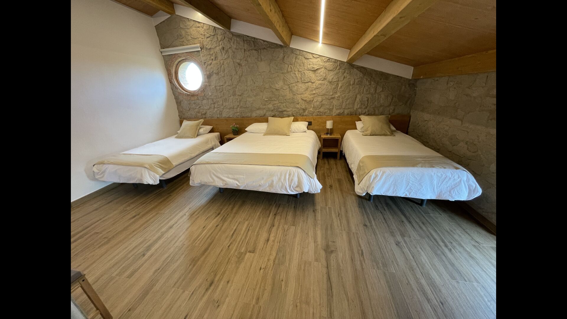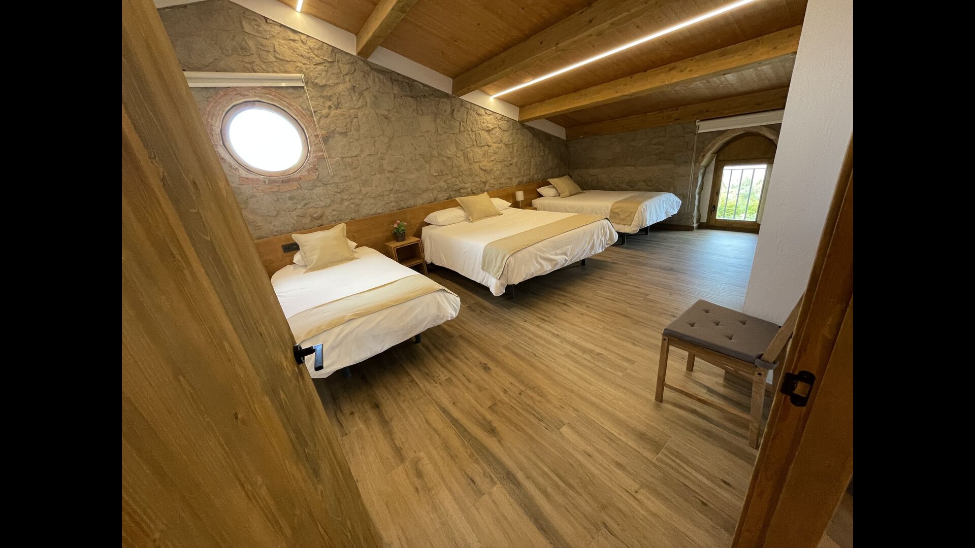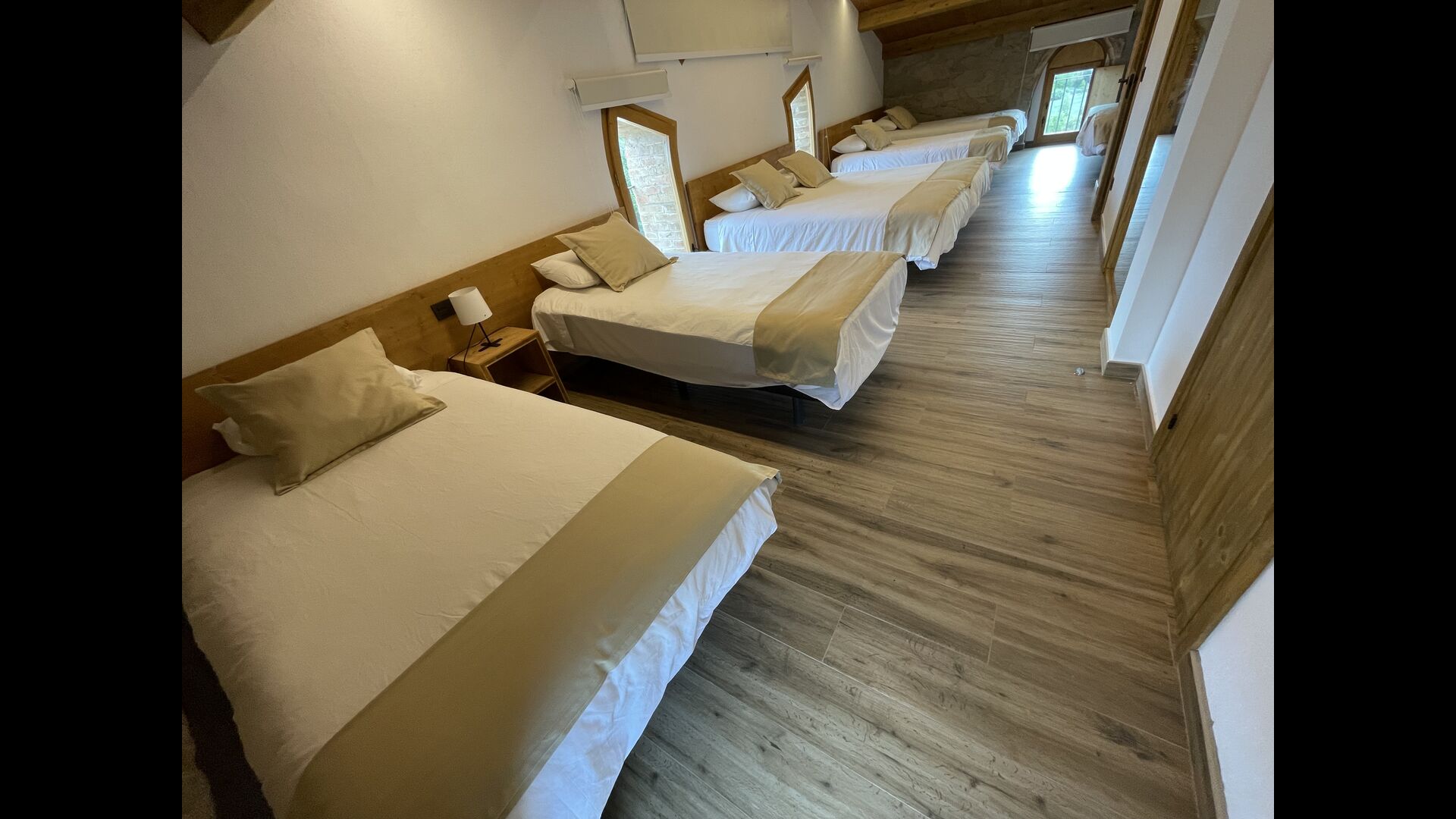 På første sal finder du fire soveværelser mere; 1 tresengsværelse (dobbeltseng + enkeltseng) og 1 dobbeltværelse med 2 enkeltsenge og 2 dobbeltværelser med dobbeltseng.
