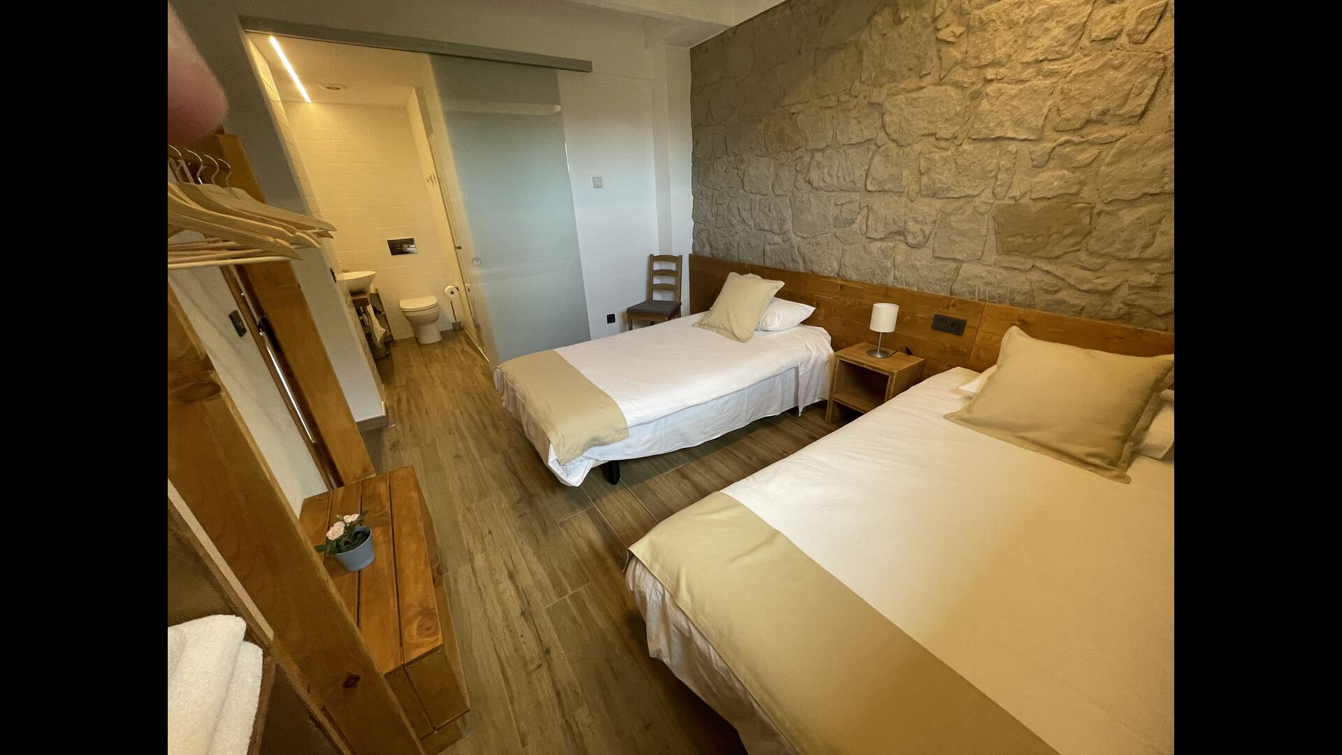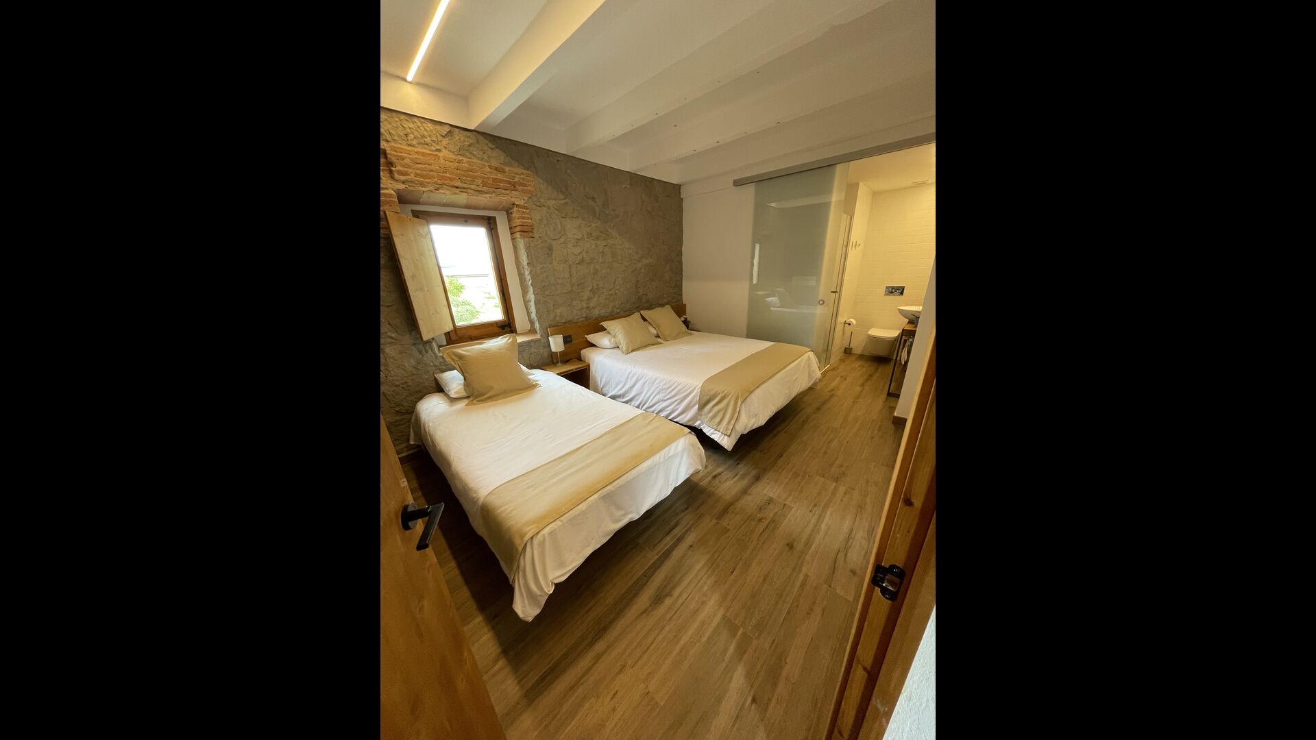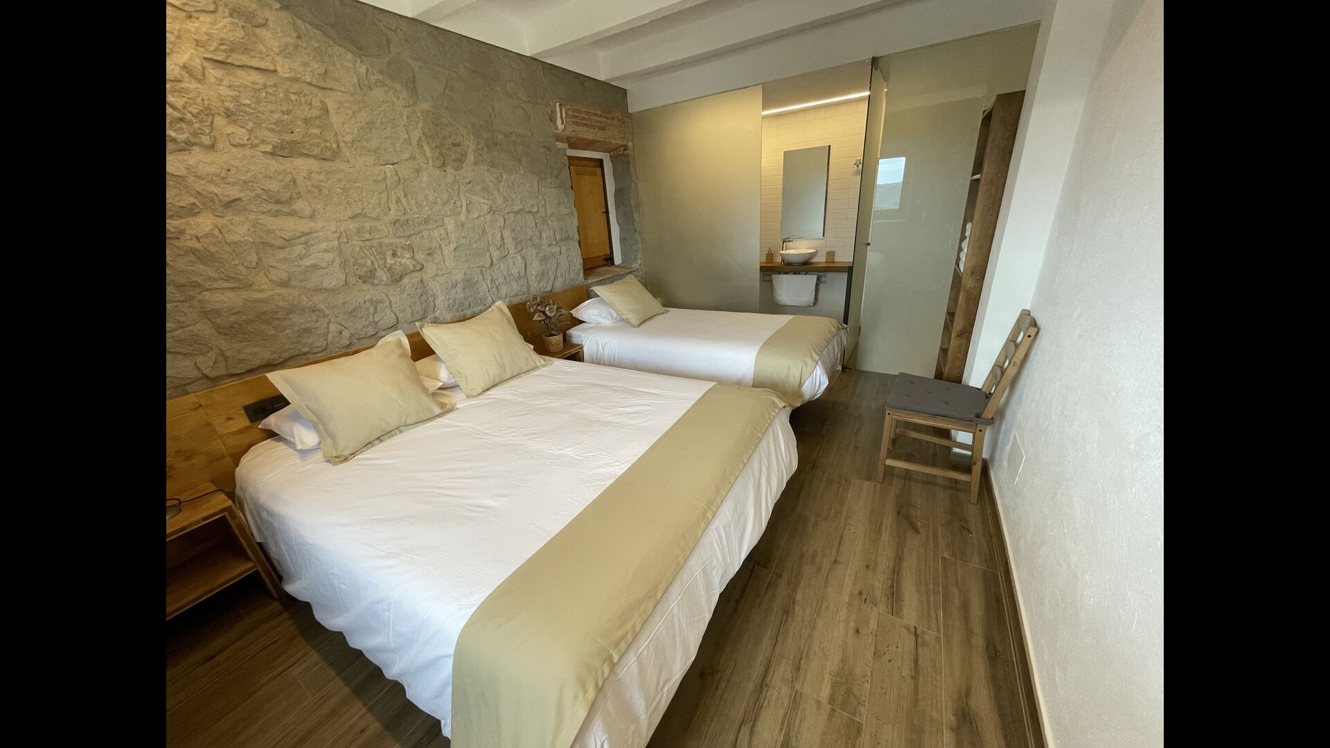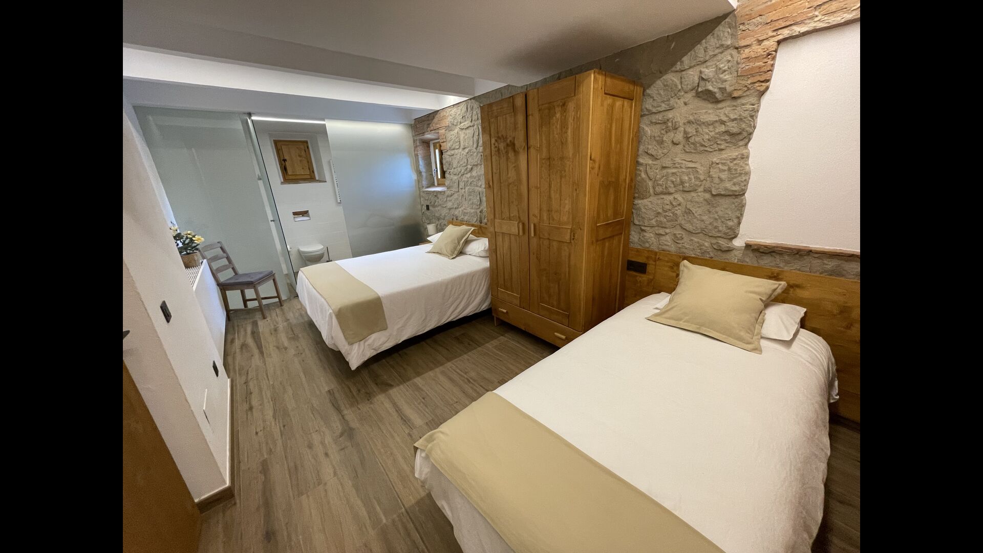 På første sal finder du fire soveværelser mere; 1 tresengsværelse (dobbeltseng + enkeltseng) og 1 dobbeltværelse med 2 enkeltsenge og 2 dobbeltværelser med dobbeltseng.