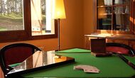 I stueetagen er der yderligere to badeværelser samt enkeltværelse med eget badeværelse. Her kan man hygge sig i den kæmpe stue med sofahjørne, som giver masser af mulighed for afslapning sammen, ligesom der er et stort spisebord. En sjov detalje er det ægte, udklappelige spillebord, som giver professionelle forhold til kortspillere.