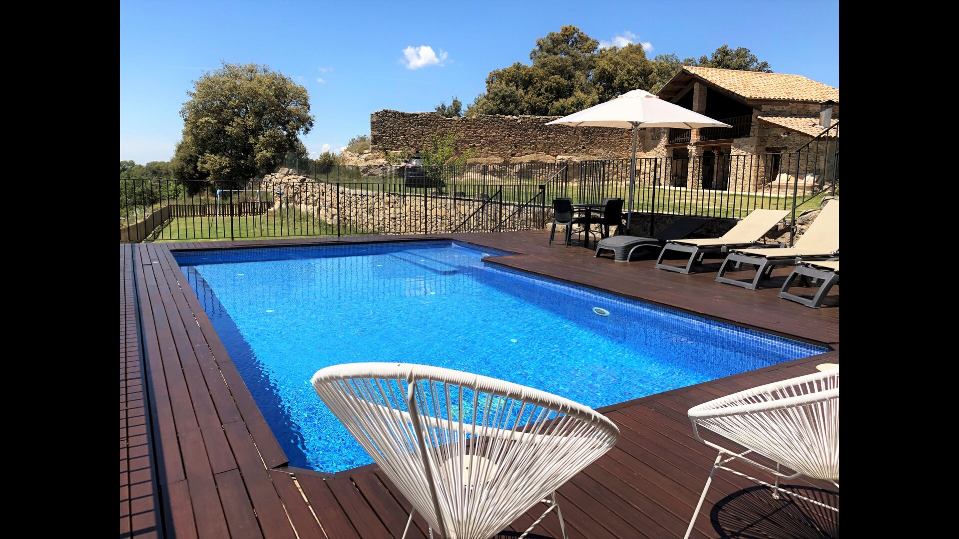 Her kan I få den mest afstressende base for jeres ferie, kun forstyrret af fuglefløjt og måske en koklokke i det fjerne. Nyd solen, eller hvis du foretrækker skyggen, den overdækkede terrasse med udsigt til poolen og med landskabet i baggrunden og endda til det ikoniske bjerg Montserrat på en klar dag.