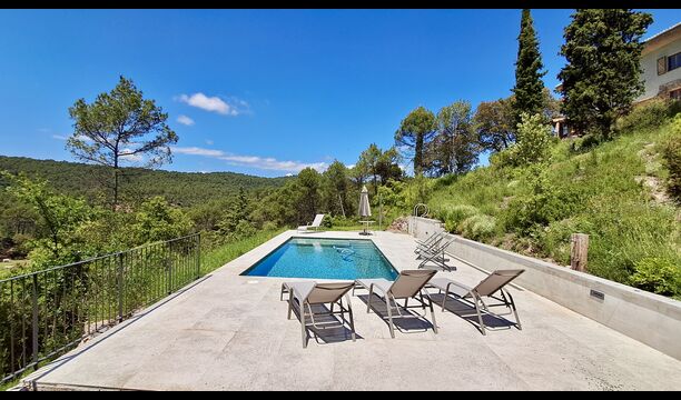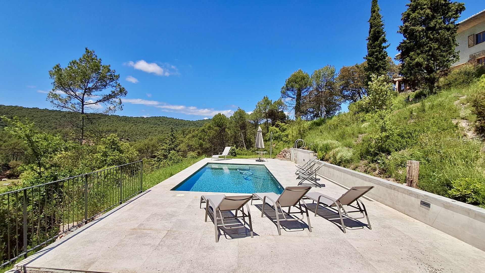 Ejendommen har en rummelig have med private skovområder, perfekt til vandreture eller blot at nyde omgivelsernes skønhed. Den udendørs saltvandspool tilbyder en forfriskende måde at køle af, mens terrassen giver plads til at slappe af. Indendørs finder man desuden det fuldt udstyrede køkken og hyggelige opholdsrum.