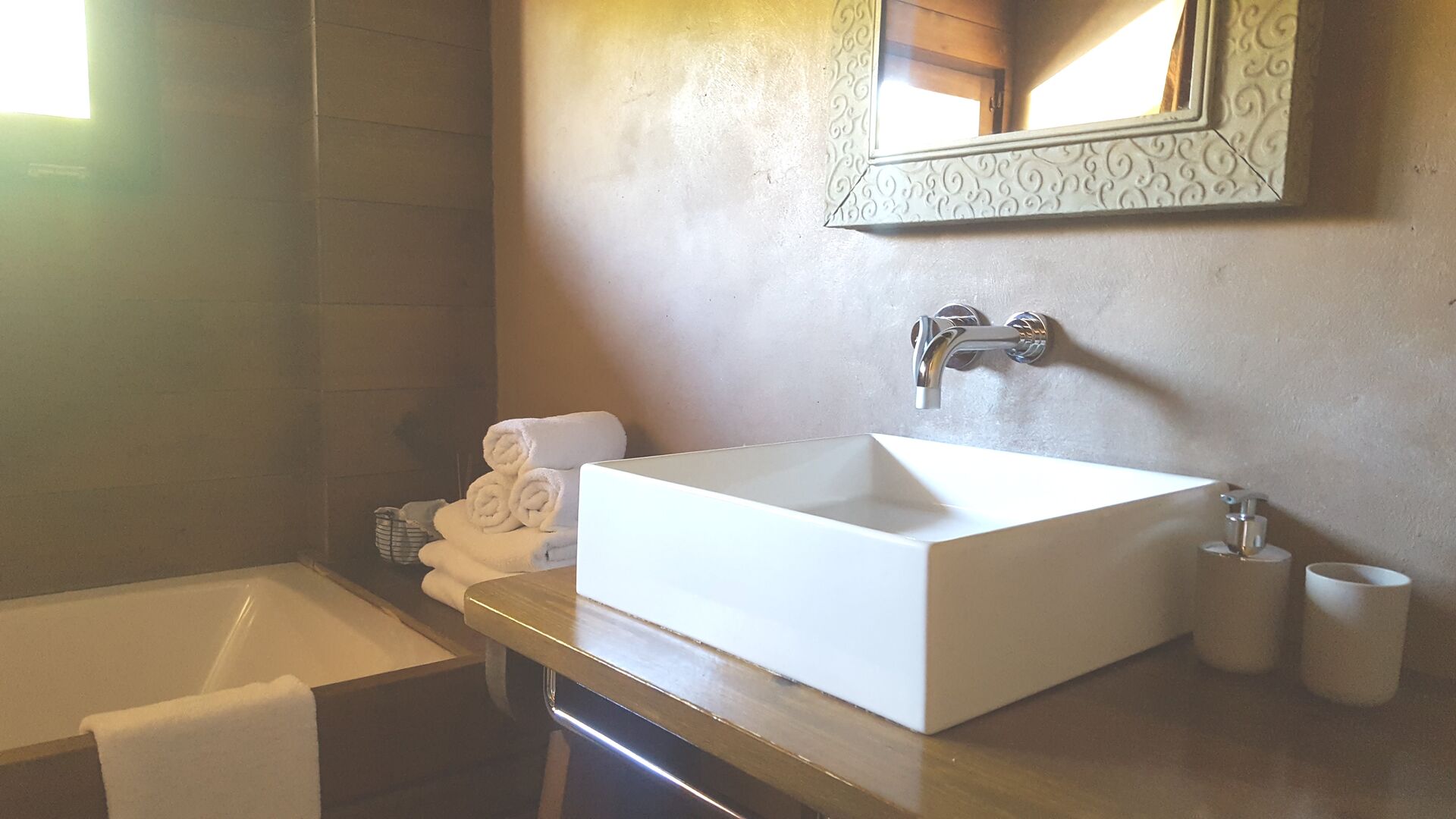 Der er Aircondition i det mindre hus, mens de større hus har ventilatorer i alle soveværelser.