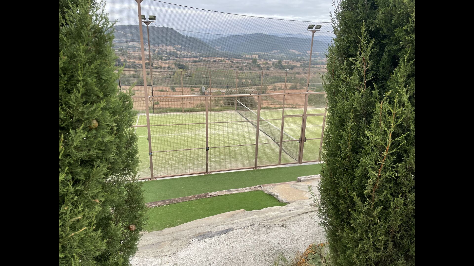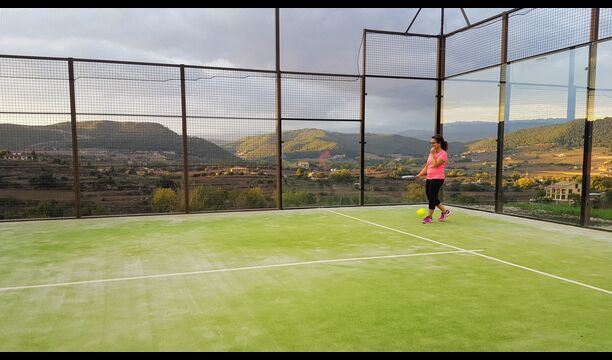 Padel tennisbanen er beliggende nedenfor huset og kan bookes på timebasis eller hvis I vil spille meget, kan I få en samlet pris for eksklusivitet under hele opholdet