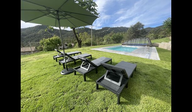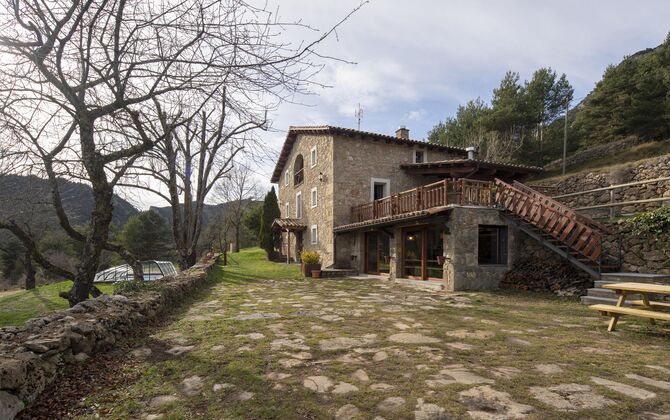 1,25 kilometer højt oppe i den bjergrige, idylliske og maleriske Catalanske region Berguedà, ligger Mas del Pintór; en smuk, traditionel bondegård fra midten til slutningen af det 19. århundrede – omhyggeligt renoveret med et moderne touch og alle nødvendige faciliteter - midt i nogle af de mest naturskønne landskaber og natur Catalonien har at byde på! Huset er et ideelle sted at bo med grupper af venner eller familie, idet det er i stand til at rumme op til 15 personer, udstyret med 5 soveværelser og deres egne, ensuite badeværelser, tv'er, en pejs og køkken som opfylder alle behov…og på ydersiden har ejendommen en swimmingpool, veranda (udstyret med grill, samt et fremragende solarium.