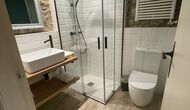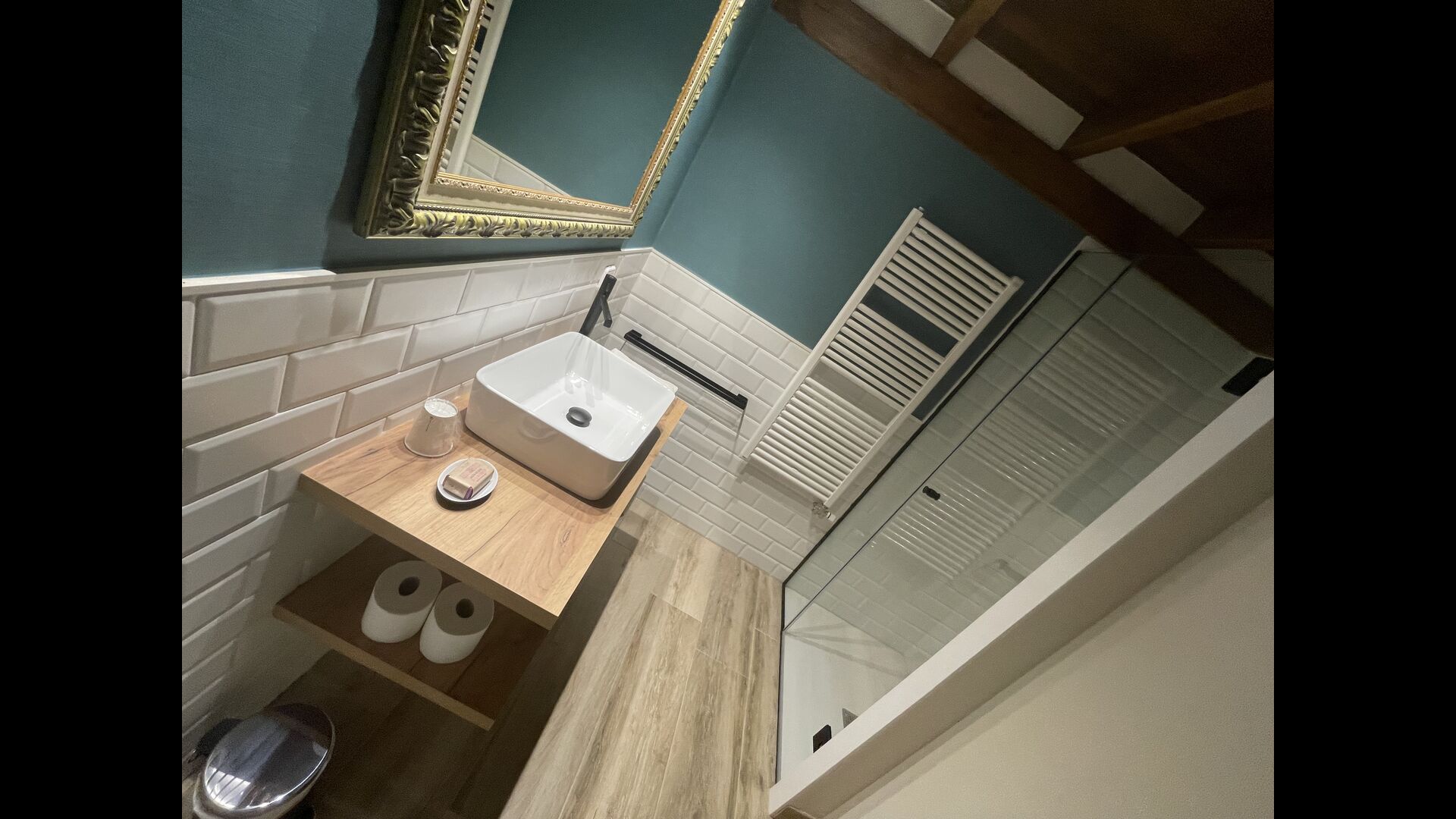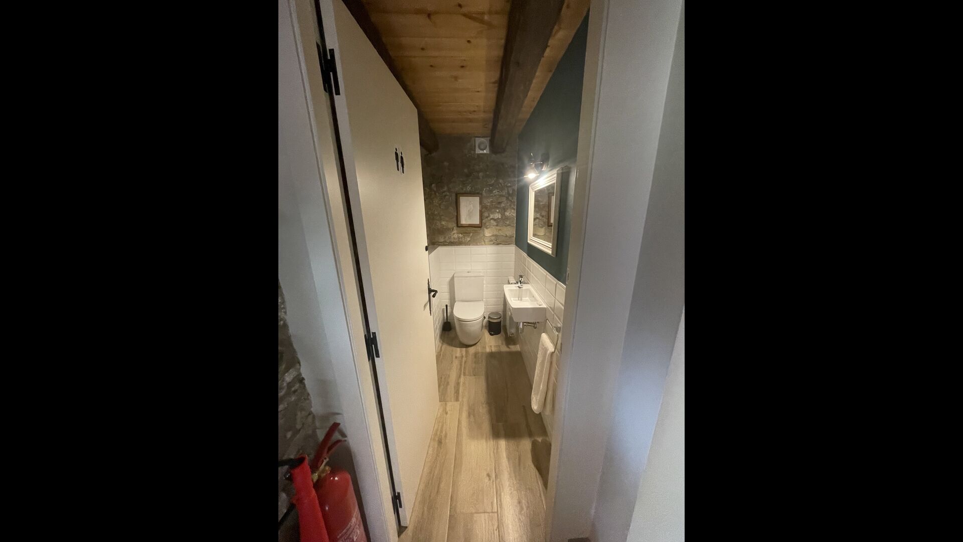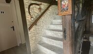 I stueetagen finder du en stue med et smart TV, en pejs (medfølger træ), et stort bord med plads op til 14 personer, en sovesofa, flere lænestole og 4 enkeltsenge – støder op til et køkken udstyret med bestik og komplet køkkenredskaber, sæbe og skuresvampe, to køleskabe,fryser, en vaskemaskine, mikroovn, et elektrisk komfur/ovn, en Nespresso kaffemaskine, brødrister, blender, juicer, opvaskemaskine, samt et elektrisk glaskeramisk komfur og 3 brændere. Derudover har stueetagen også eget badeværelse med bruser.