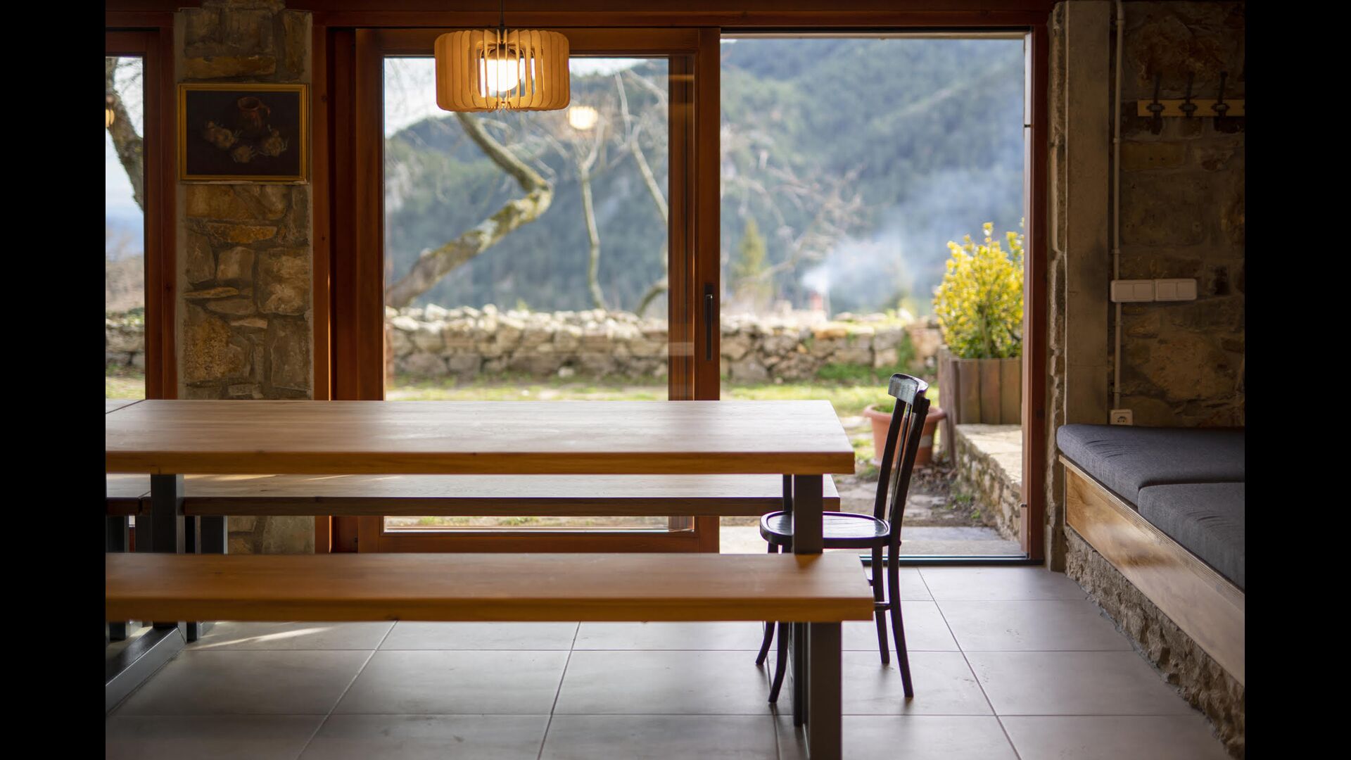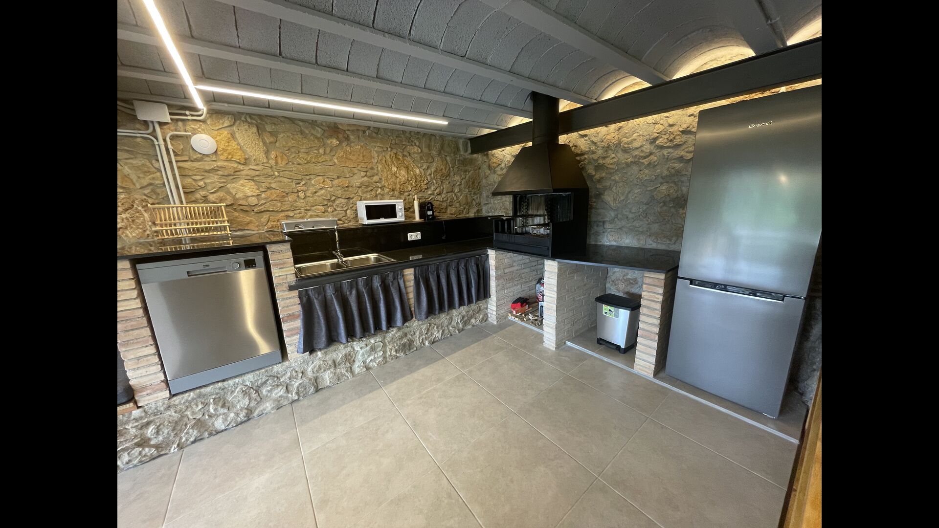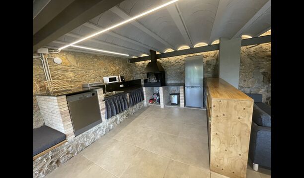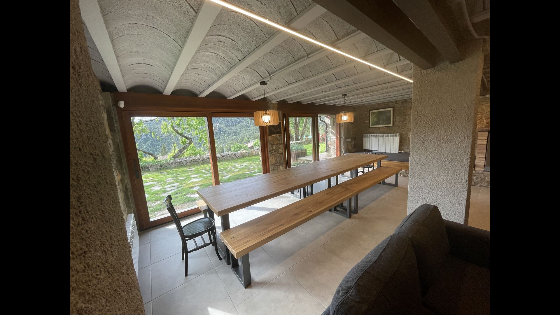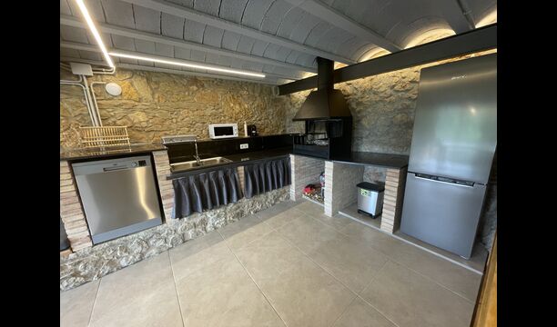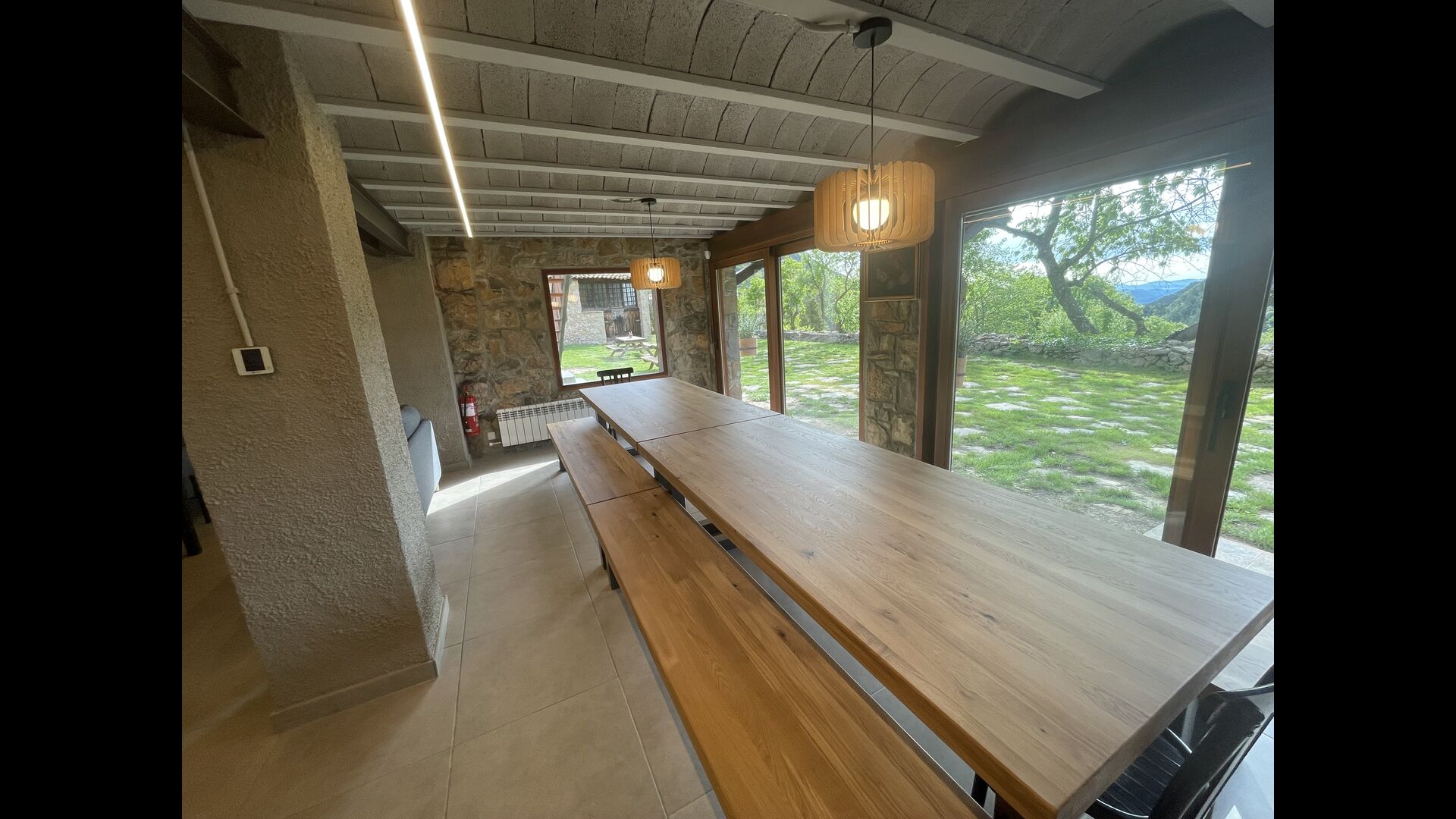Huset har også en vidunderlig veranda/terrasse, med sit eget store bord (op til 14 personer), sit eget køleskab/fryser og en BBQ grill. Perfekt til aftensmåltider, når solen går ned på det fredfyldte bjerglandskab du kan se fra verandaen, aftener med brætspil og lange snakke med venner eller familie til de sene nattetimer over en god flaske catalansk vin.
