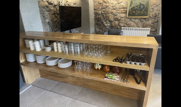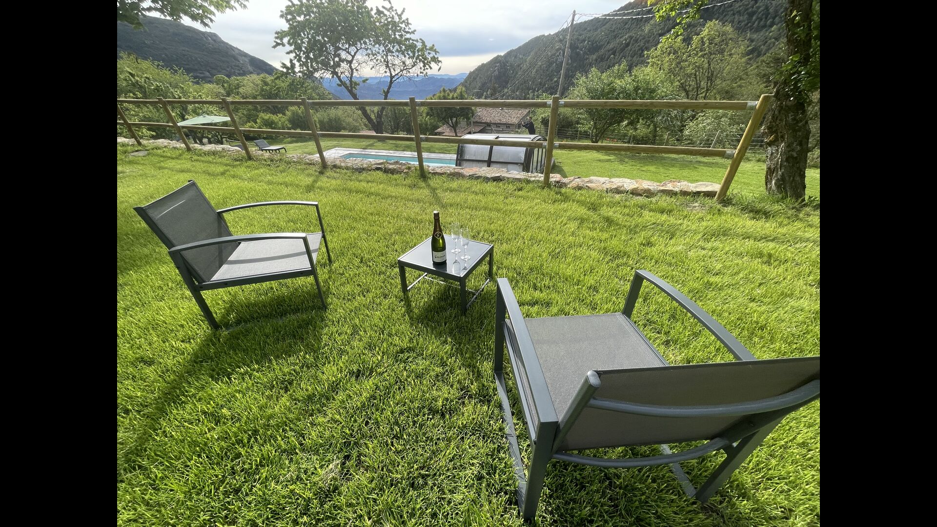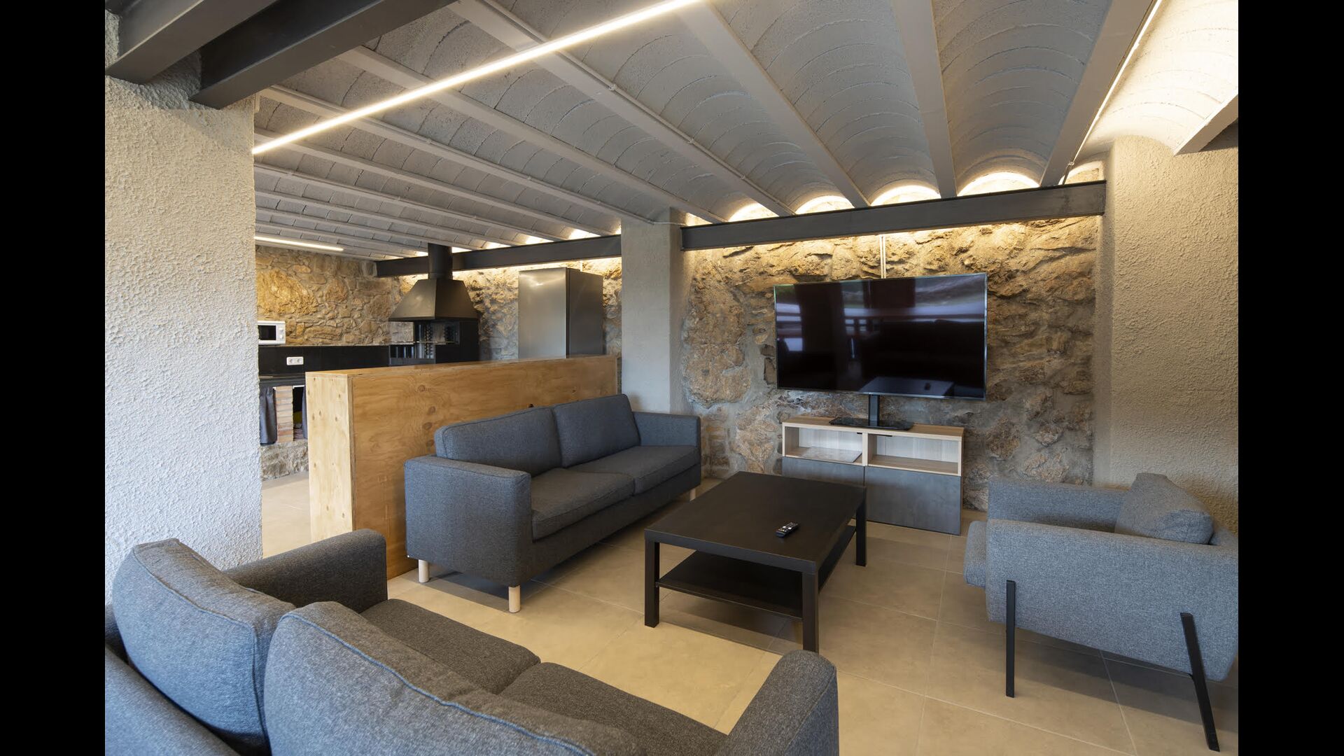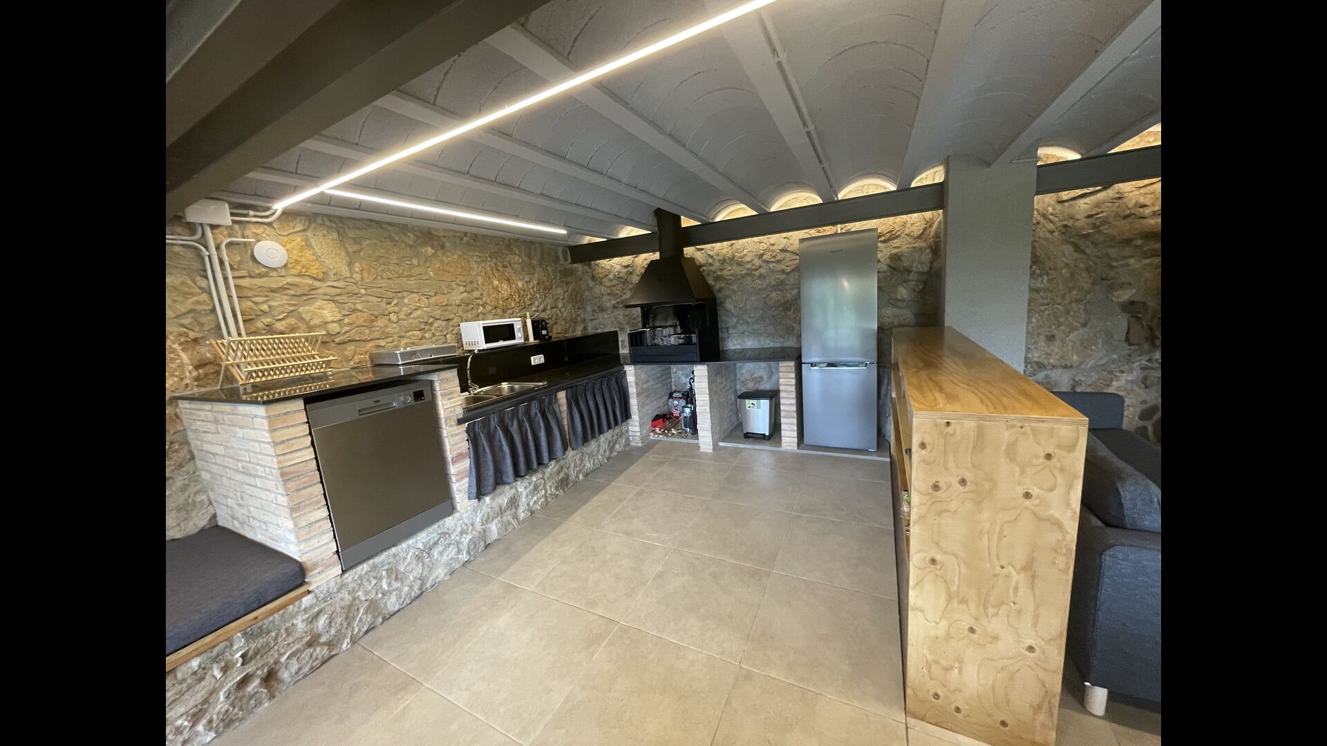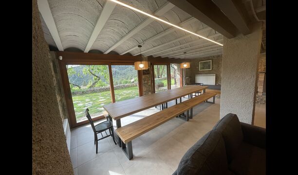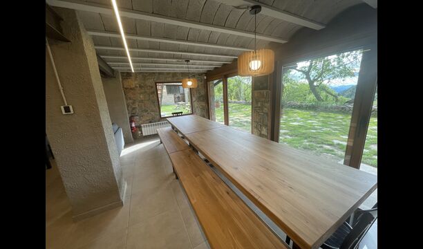 Huset har også en vidunderlig veranda/terrasse, med sit eget store bord (op til 14 personer), sit eget køleskab/fryser og en BBQ grill. Perfekt til aftensmåltider, når solen går ned på det fredfyldte bjerglandskab du kan se fra verandaen, aftener med brætspil og lange snakke med venner eller familie til de sene nattetimer over en god flaske catalansk vin.