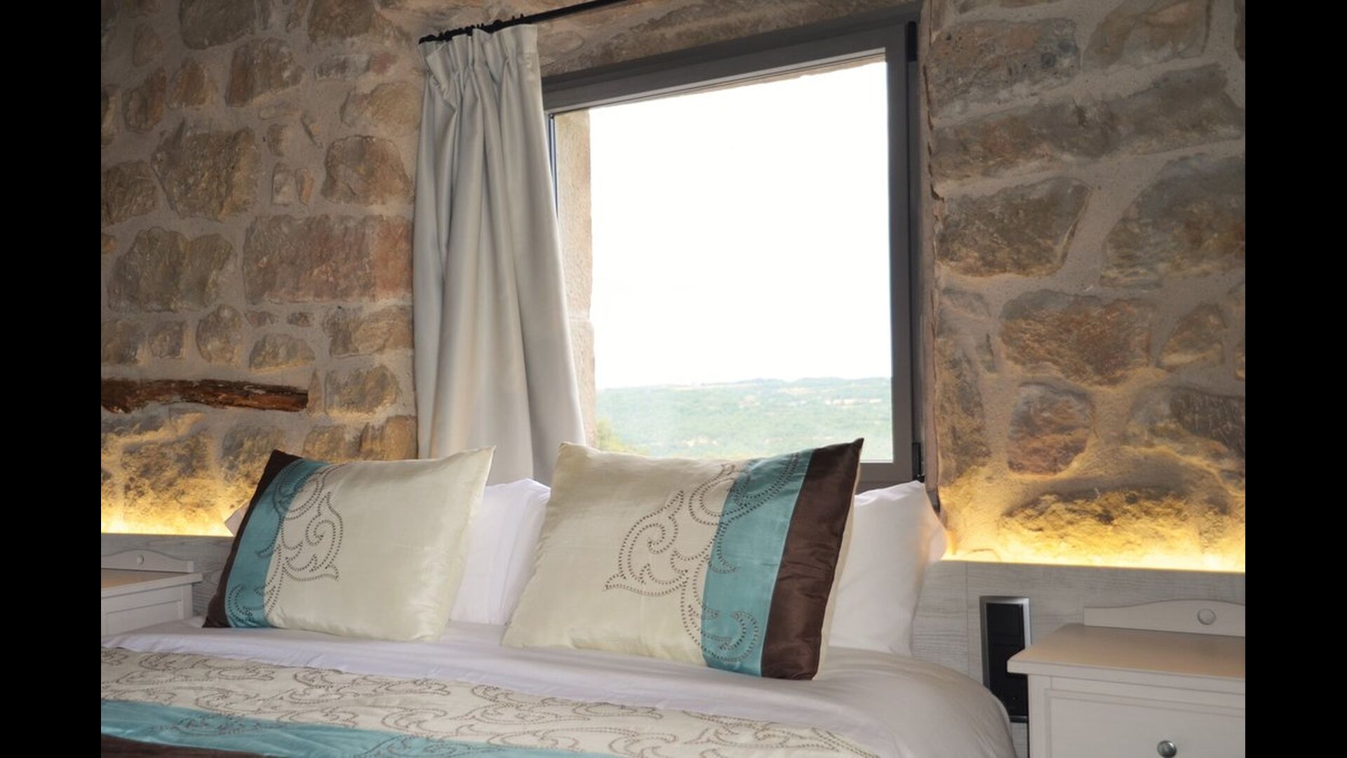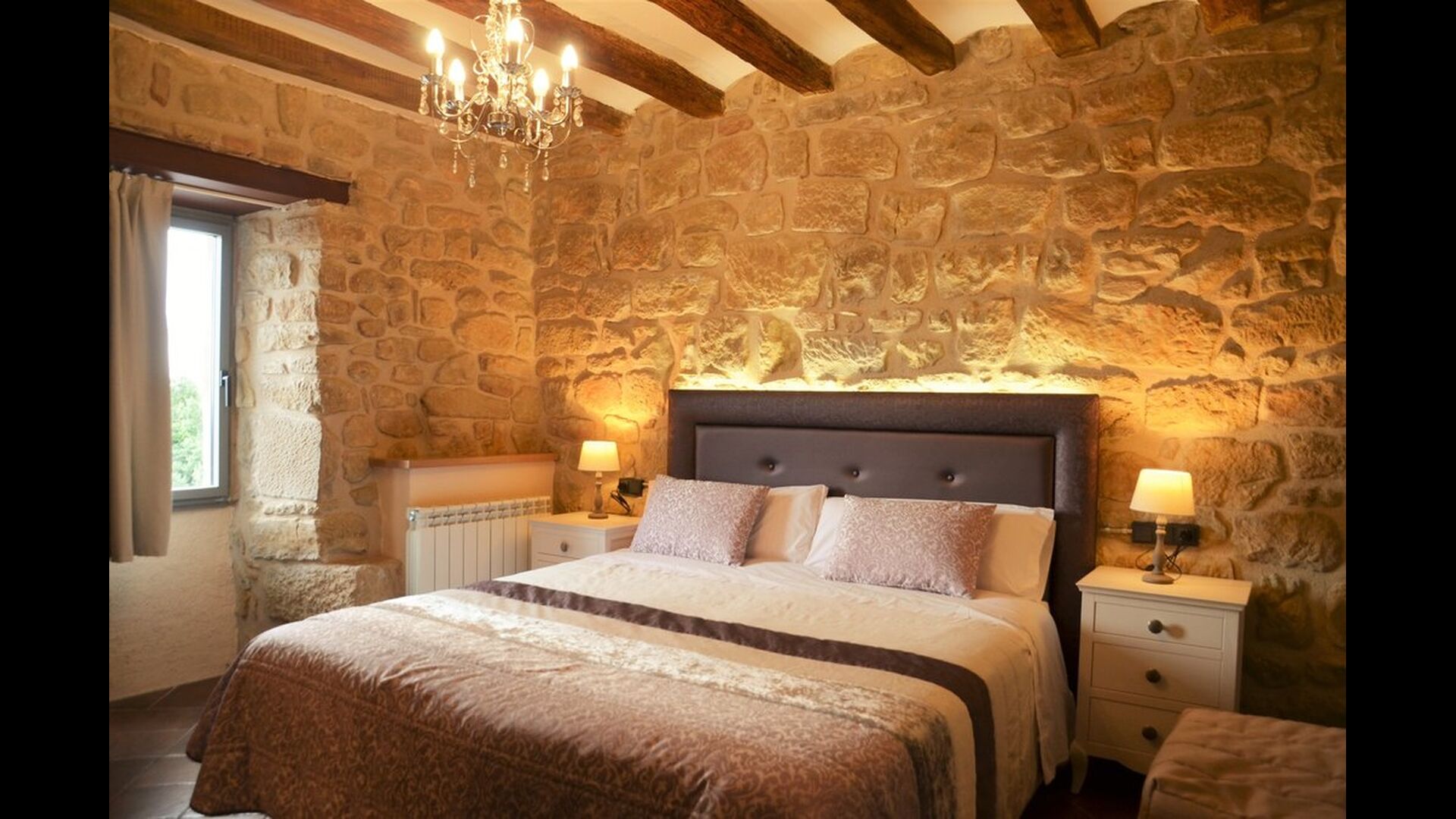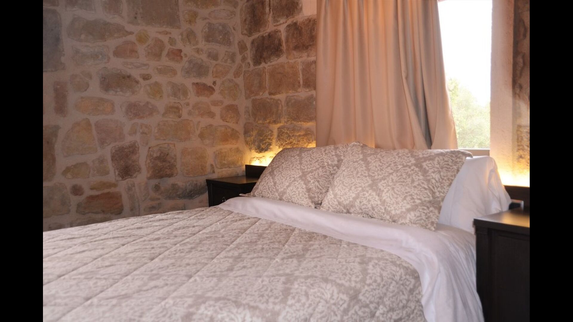 Der er tre soveværelser i stueetagen, hvoraf de alle tre er udstyret med dobbeltsenge og luksuriøse private badeværelser. For at nå næste etage kan man enten benytte sig af trapperne eller en elevator. Denne etage er udstyret med yderligere fire soveværelser – to dobbeltværelser og to tremandsværelser, som alle er flot dekorerede og har private badeværelser. På anden etage ligger de to sidste dobbelt værelser som også har private badevlærelser. Når man når op til fællesrummet på anden etage finder man endnu et moderne og veludstyret køkken, samt et stort loungeområde med dejlige sofaer, fladskærmsfjernsyn og en hyggelig pejs. Hele rummet har panorama vinduer samt en dejlig balkon, som giver fantastisk mulighed for at opleve den ekstraordinære grønne have og udsigt, som Mas Pui tilbyder.